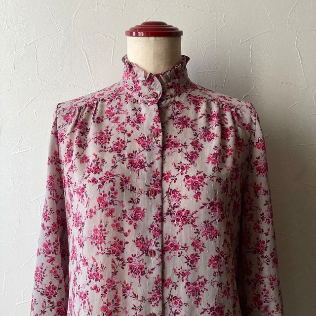 フリルスタンドカラー花柄ブラウス 古着 used vintage レトロ