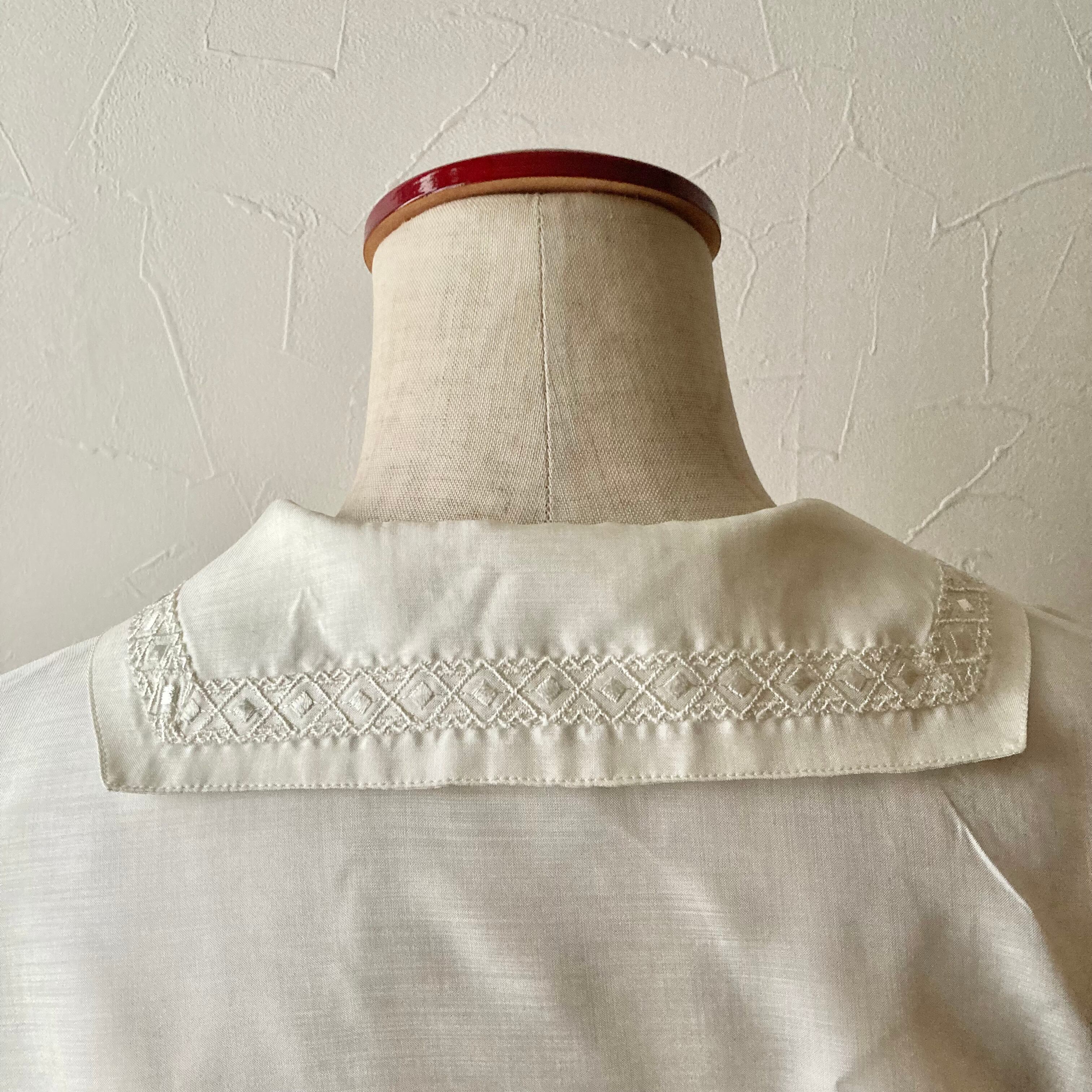 襟にも袖先にも刺繍が施された可愛らしいブラウス◯