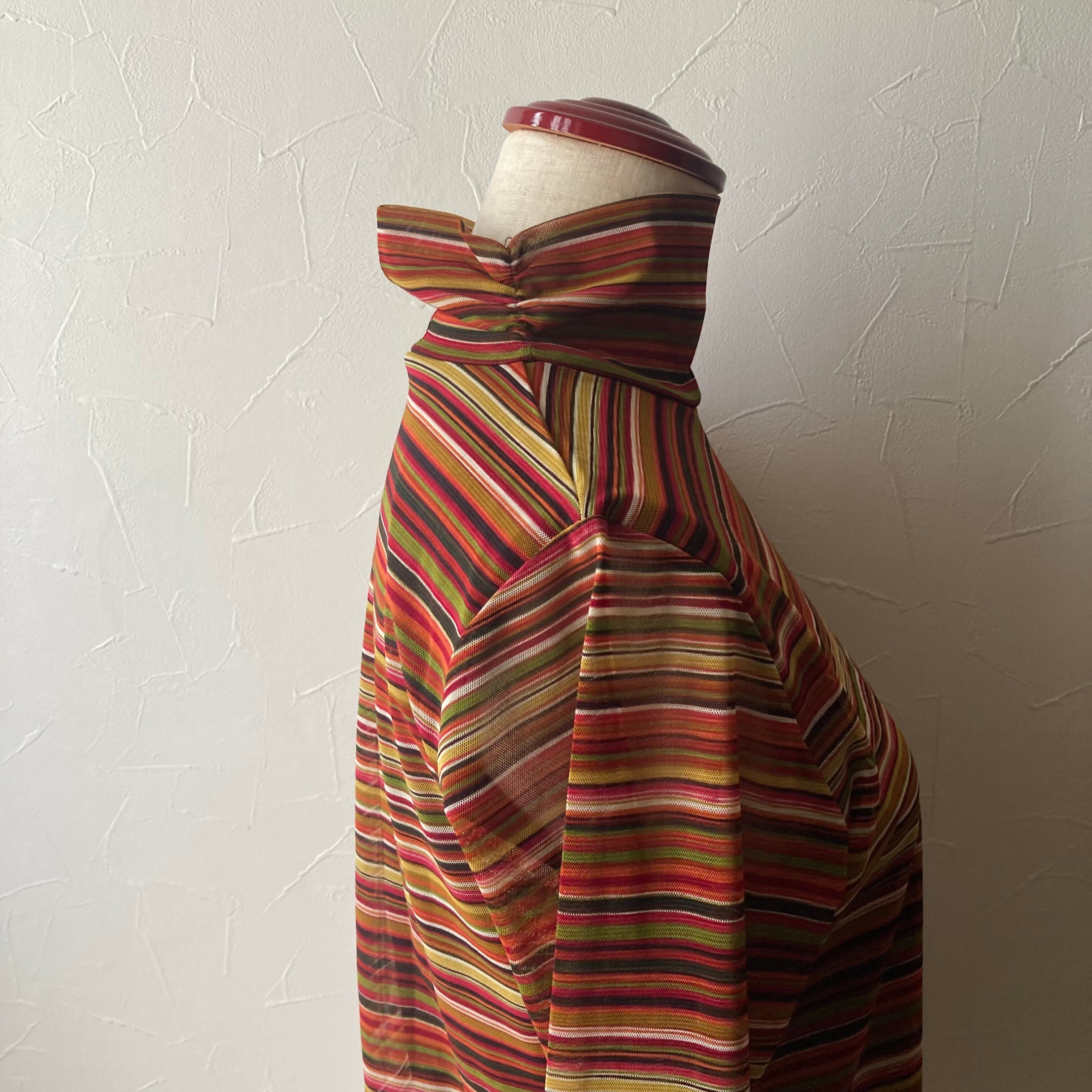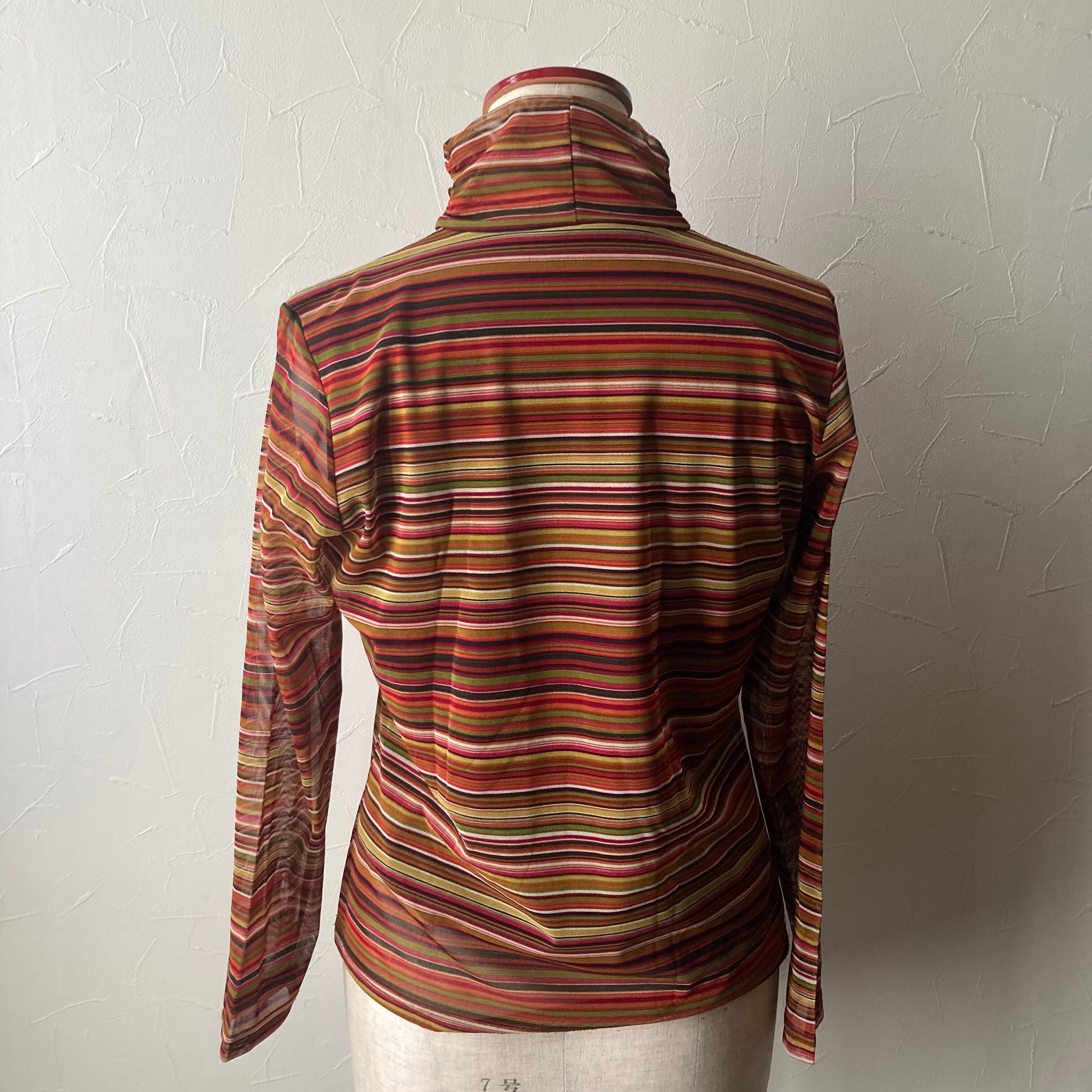 マルチカラーボーダーハイネックトップス 古着 used vintage レトロ
