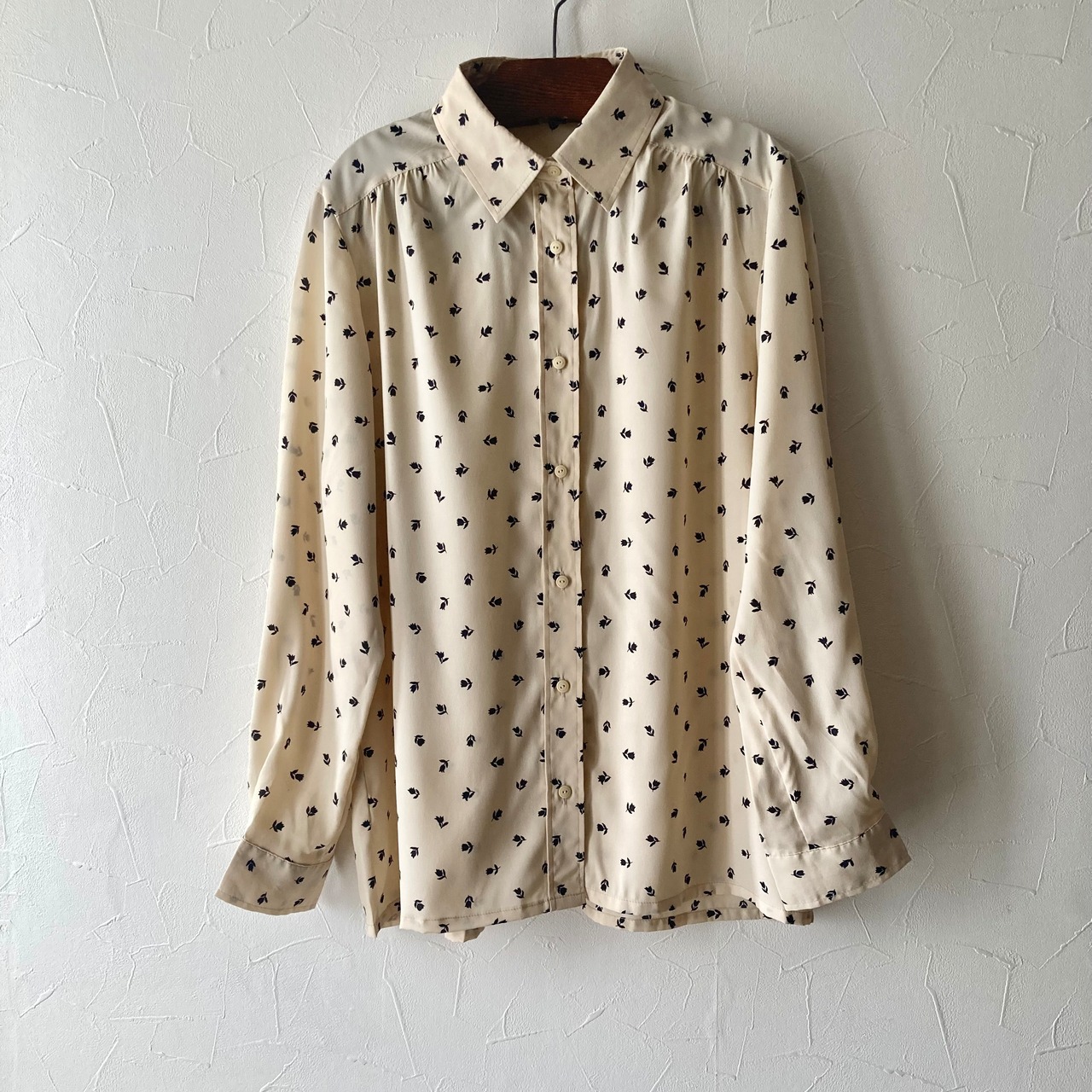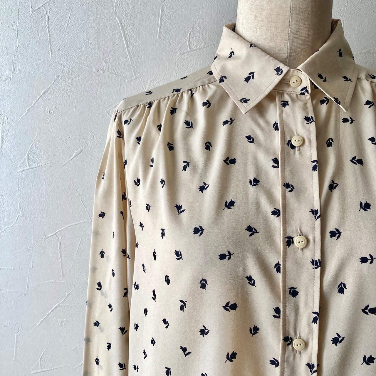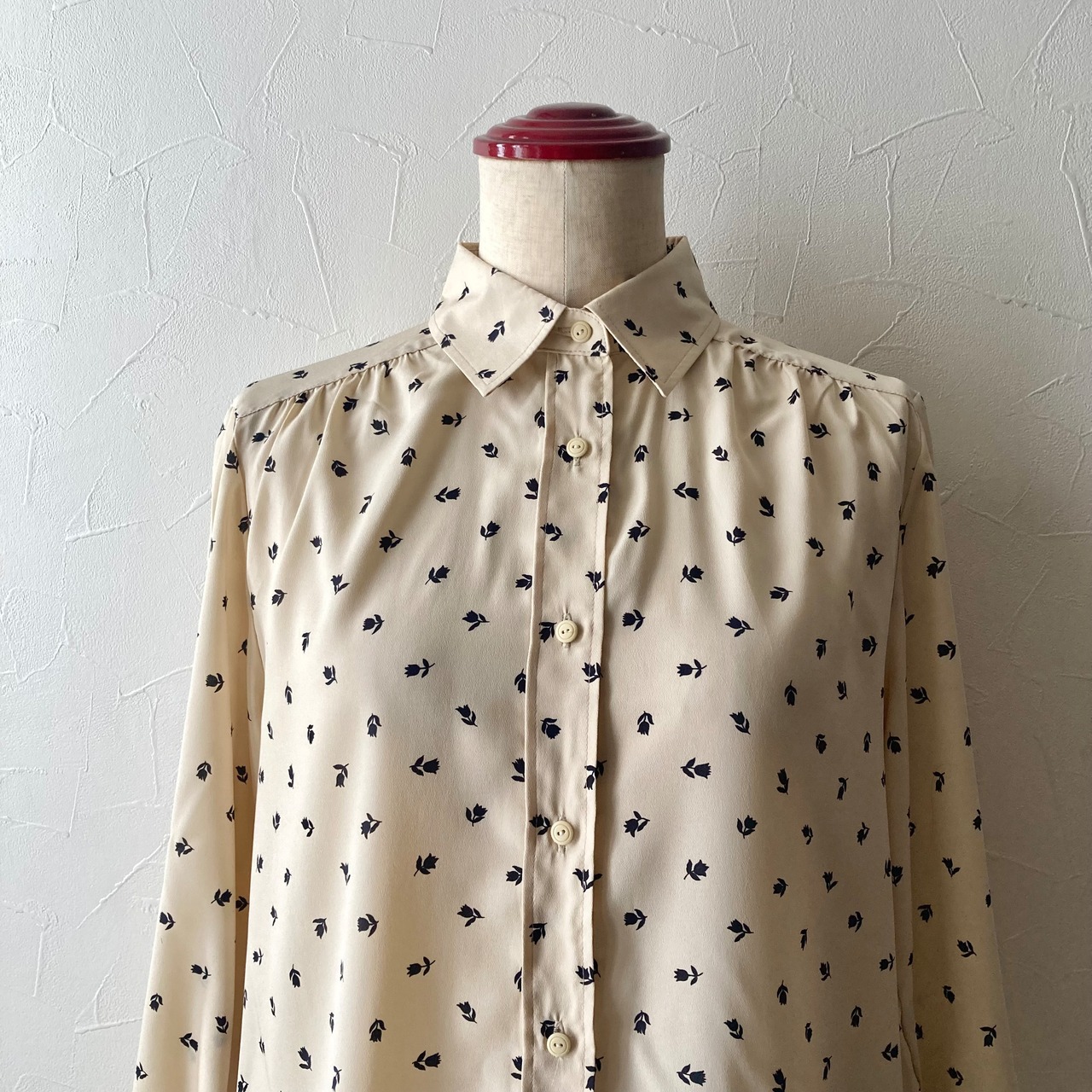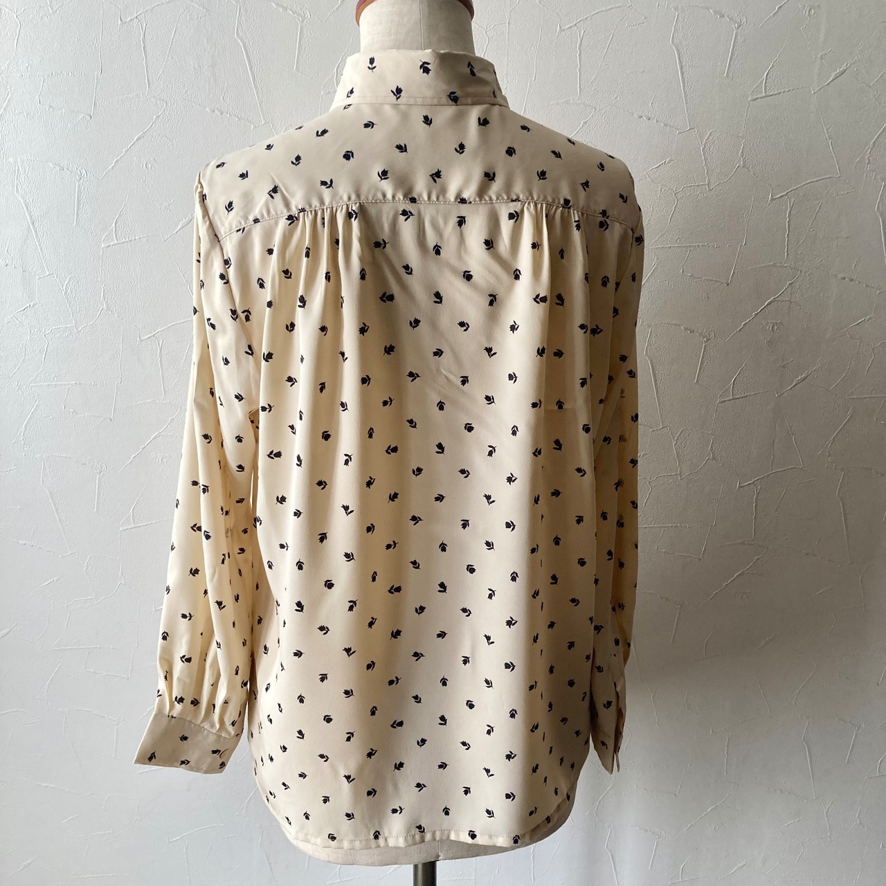 ベージュに黒の小さな花柄が可愛らしいレトロなブラウスです◯