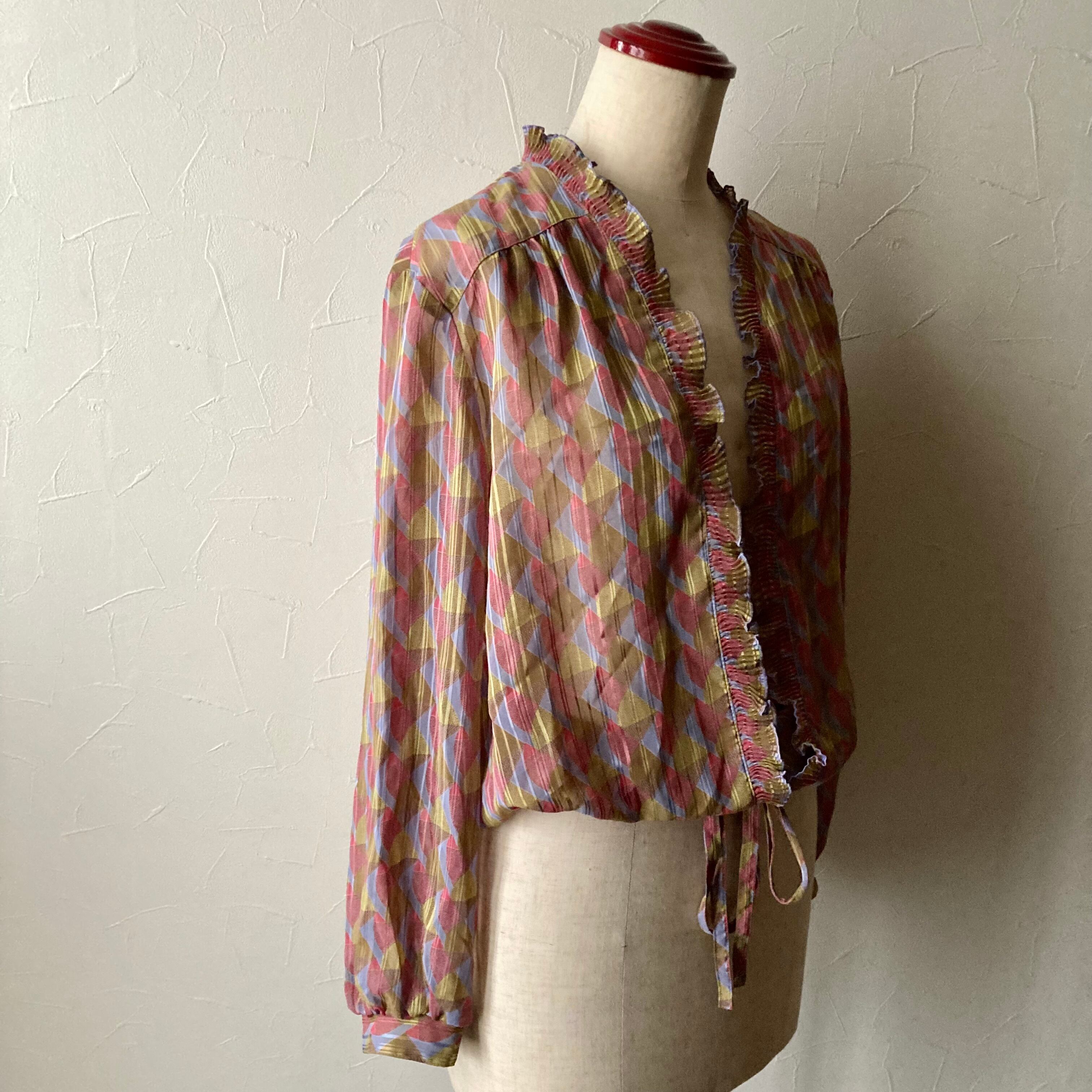 デザイン柄羽織りブラウス 古着 used vintage レトロ