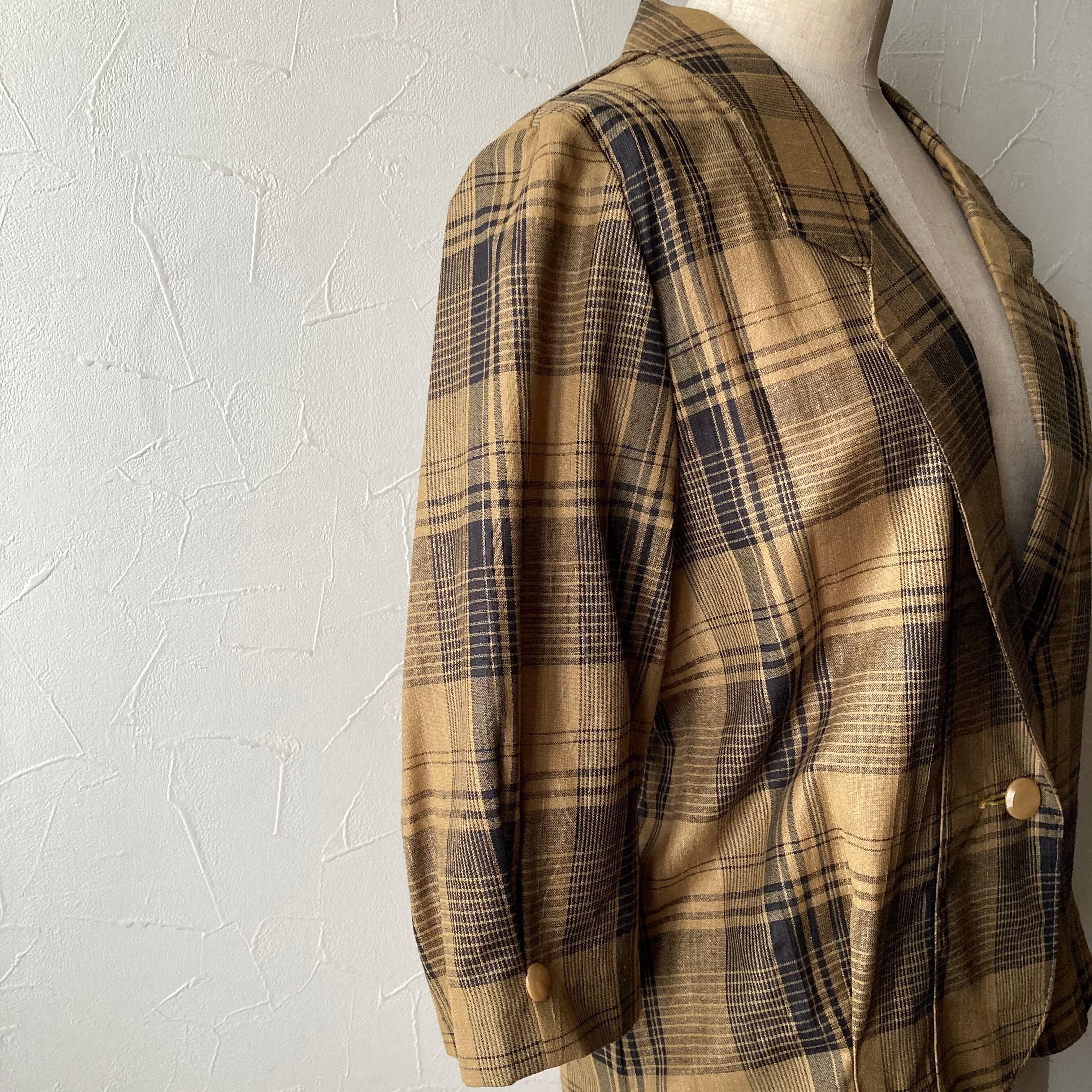 ◯未使用品◯麻混チェックサマージャケット レトロ