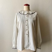 しっかりとしたハリのある素材も高級感があり、襟と袖裾の縁の細い光沢のあるテープも上品な印象です。春のお洒落なお出かけにぴったりな一枚です。