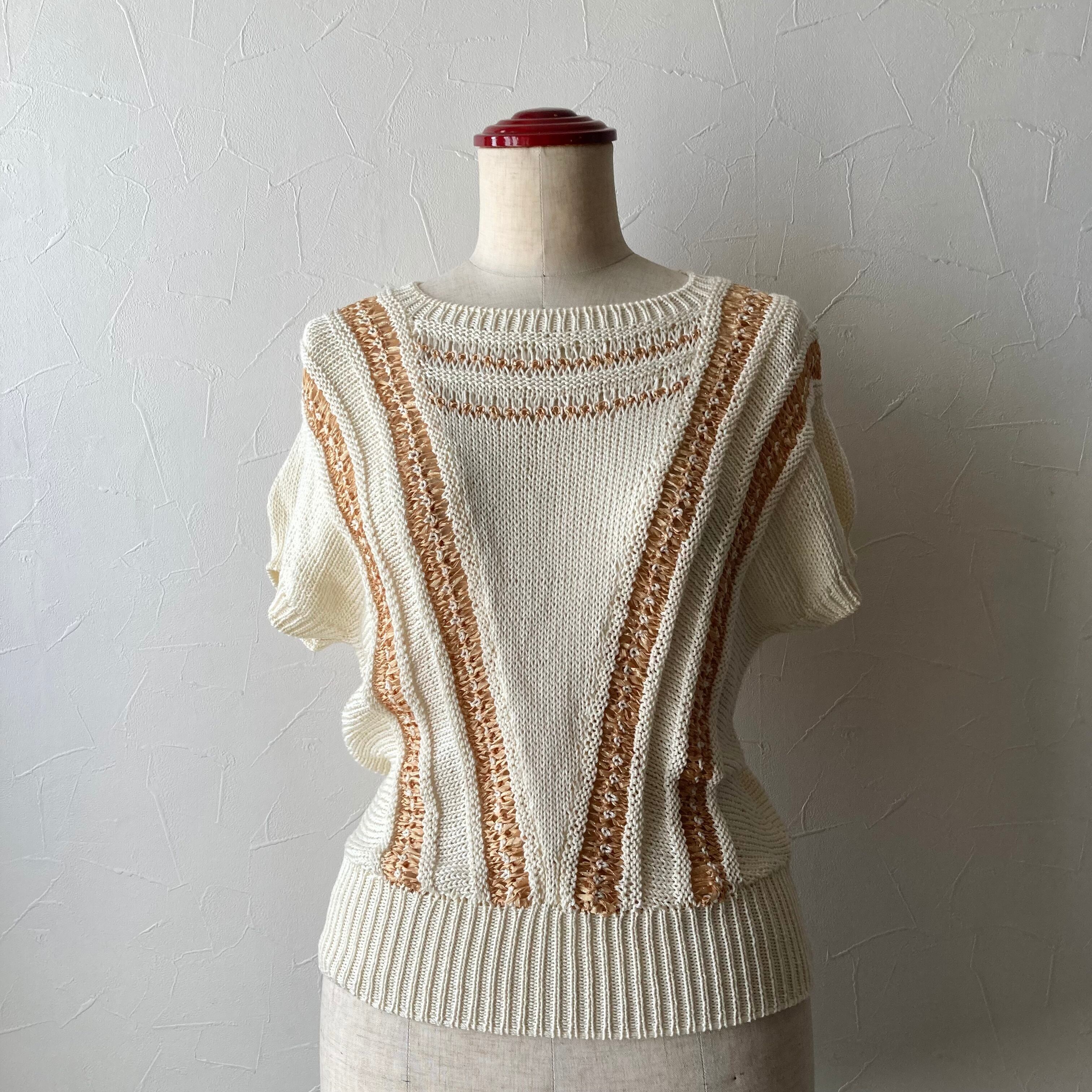 リボン編みデザインサマーニット 古着 used vintage レトロ