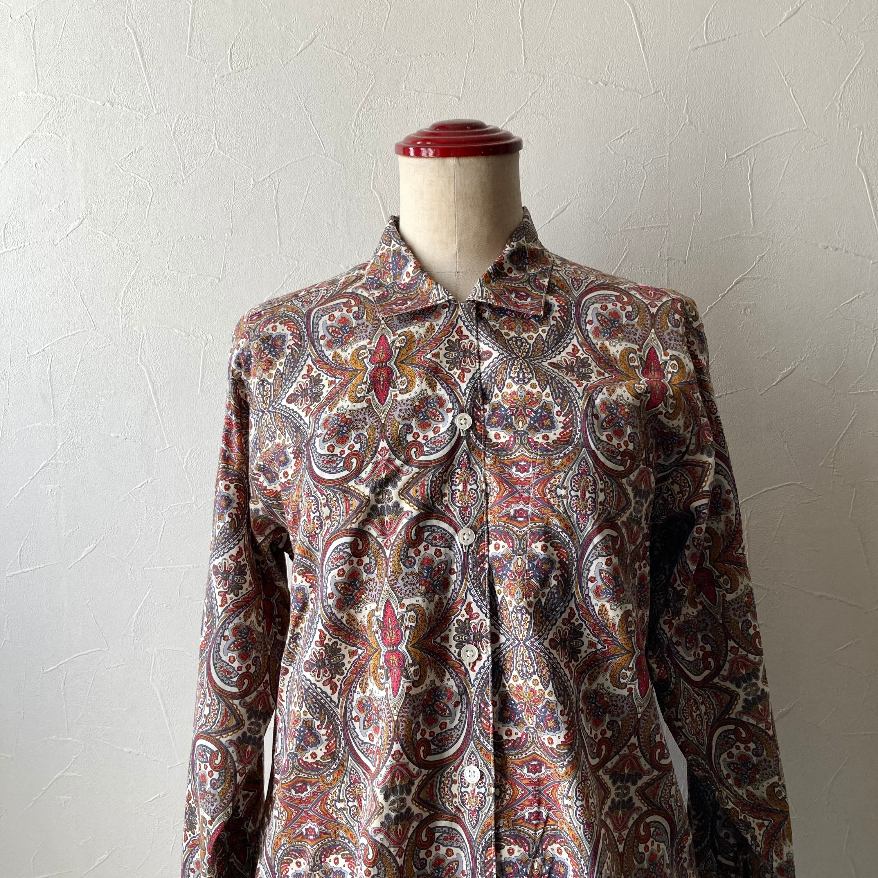 古着らしい柄が魅力的な東京ブラウス製コットンブラウス。女性に丁度良いサイズ感で羽織っても素敵に着ていただけます。