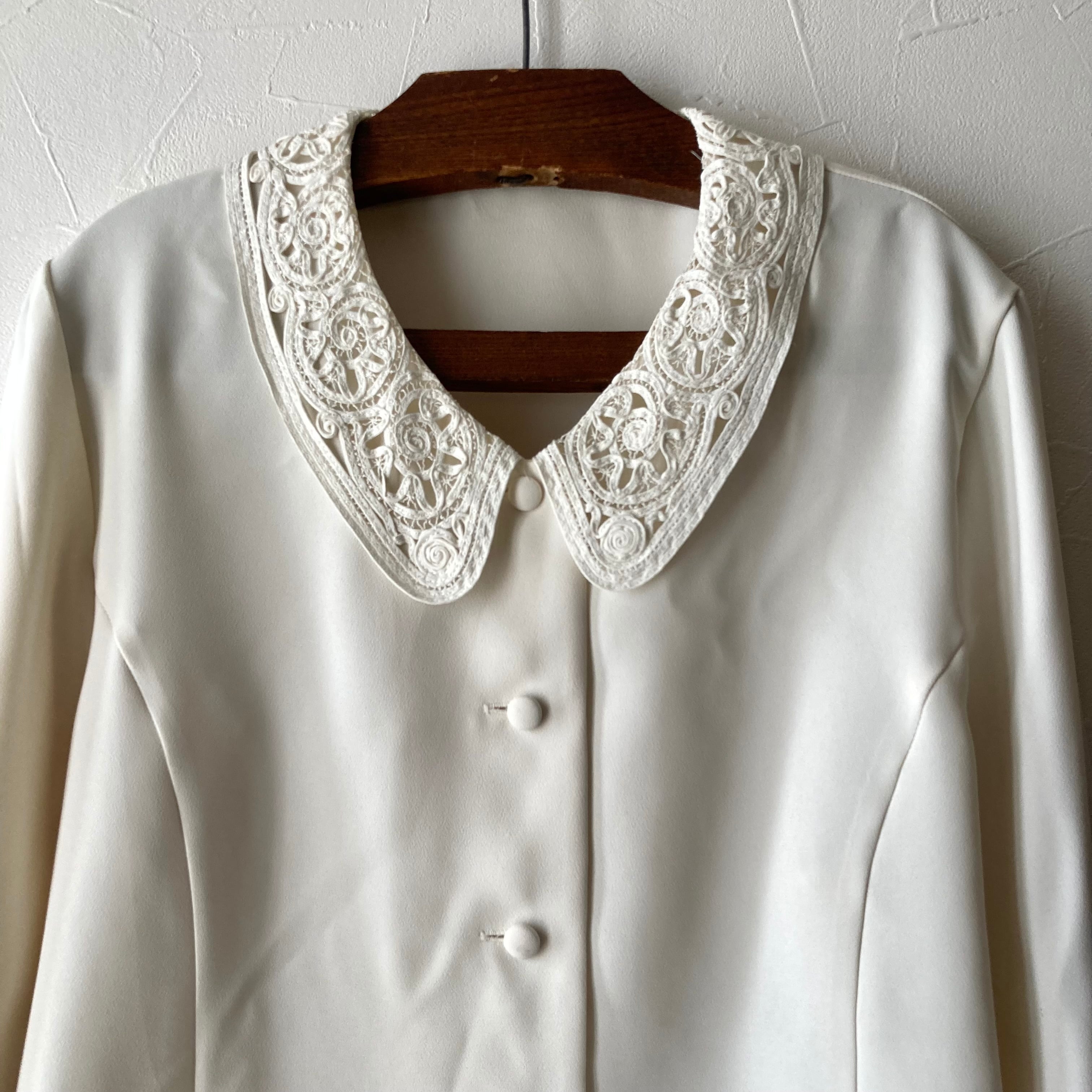 可愛いラウンドカラーの刺繍がポイントのレトロなブラウス。くるみボタンも上品です。