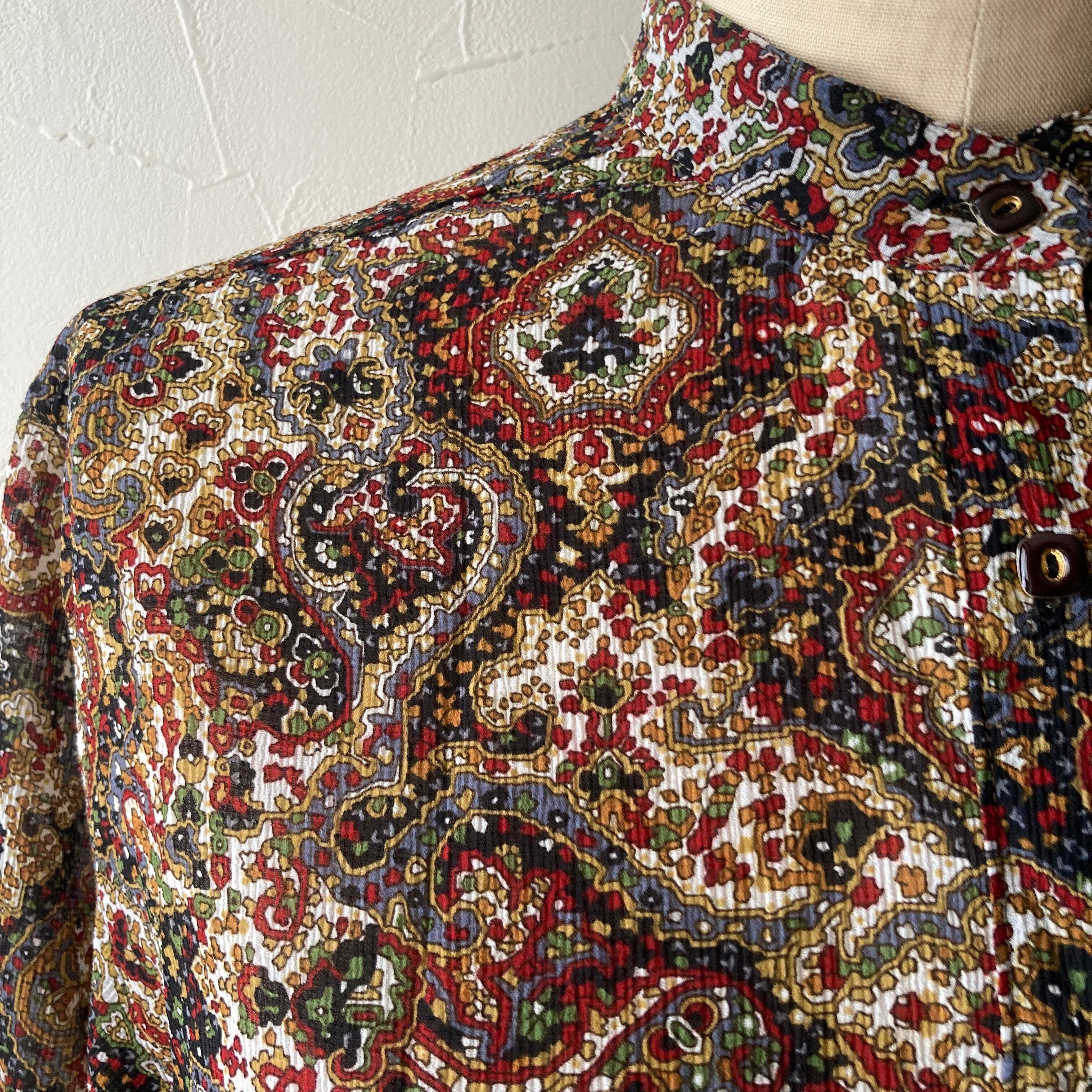 五分袖柄ブラウス 古着 used vintage レトロ
