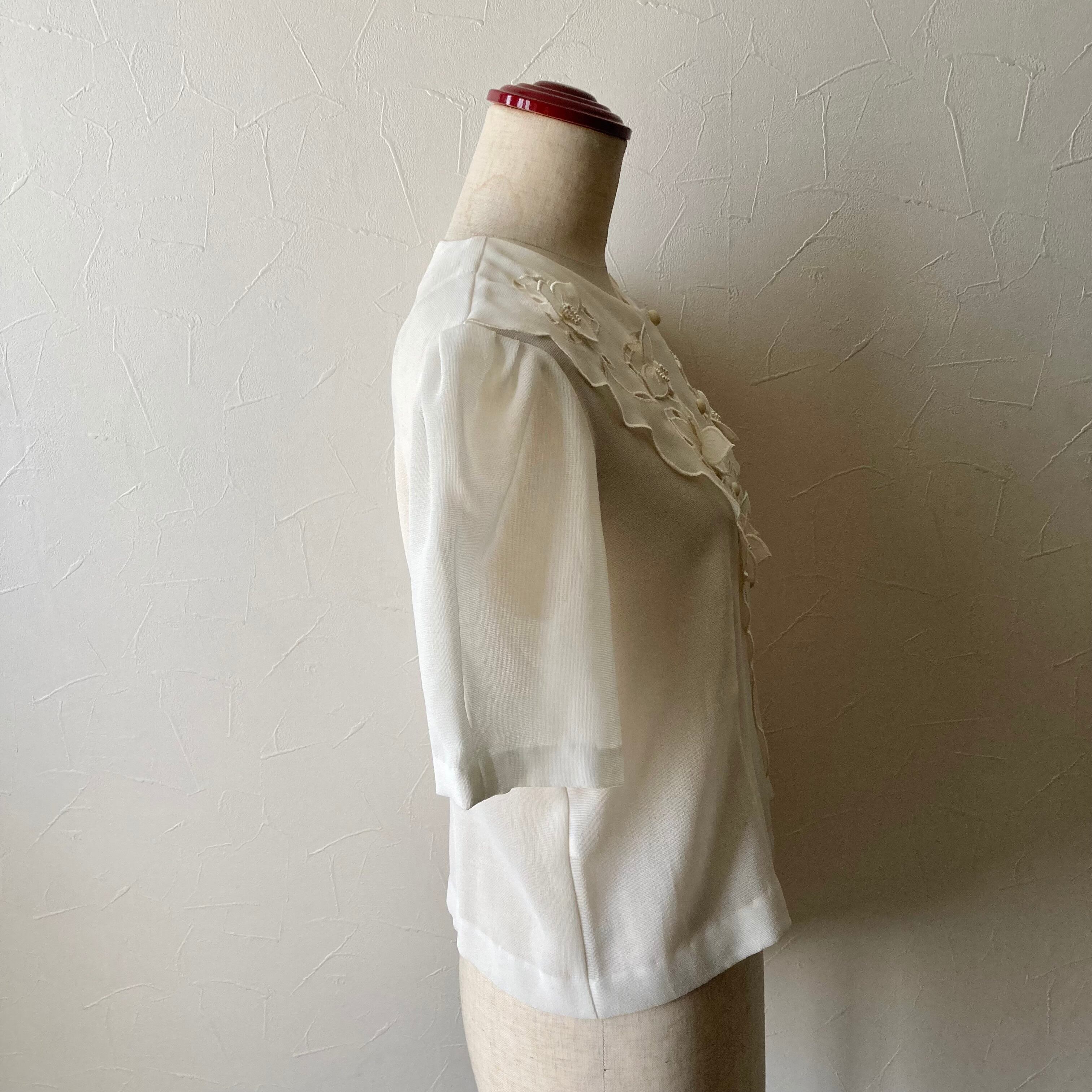 ビーズ花刺繍ブラウス 古着 used vintage レトロ