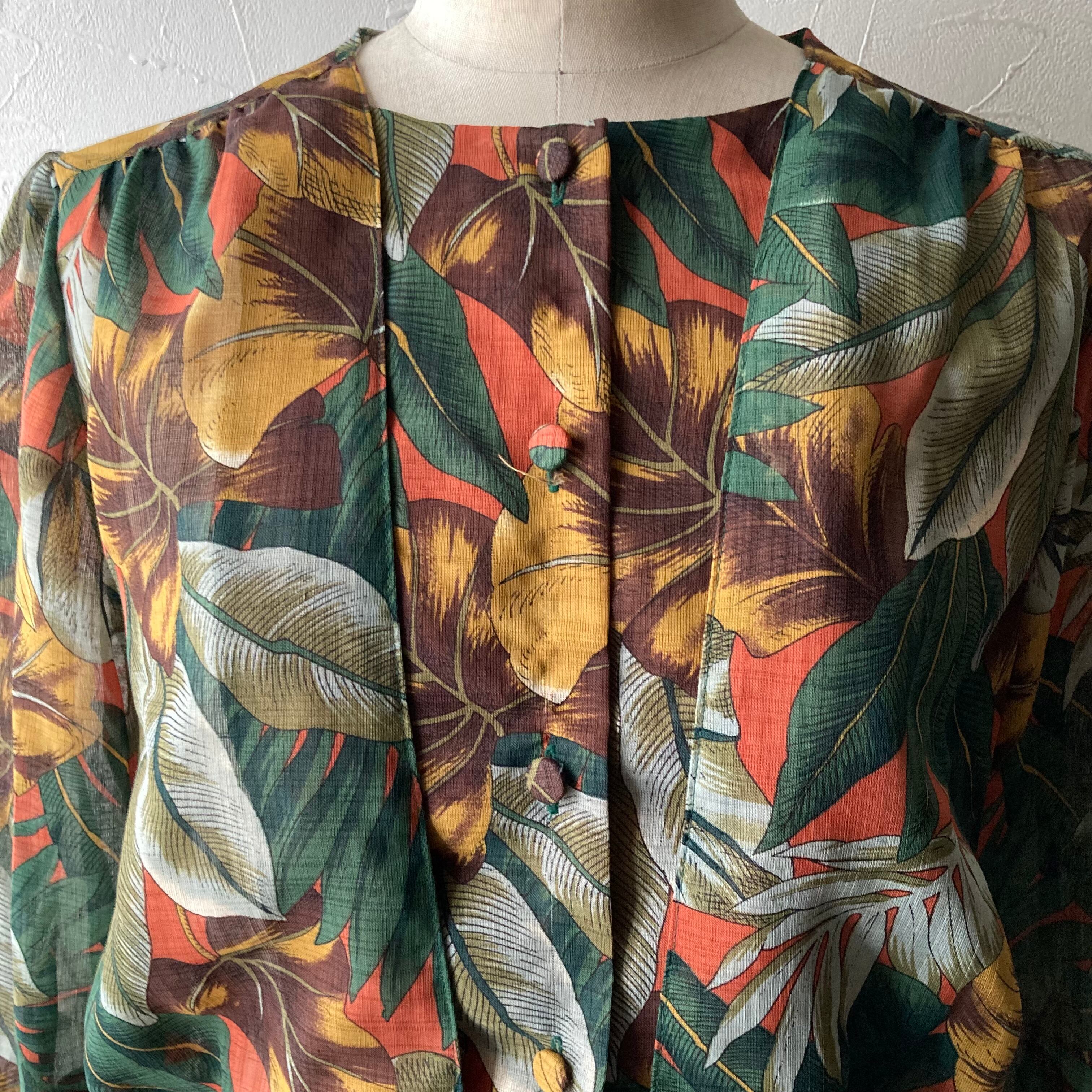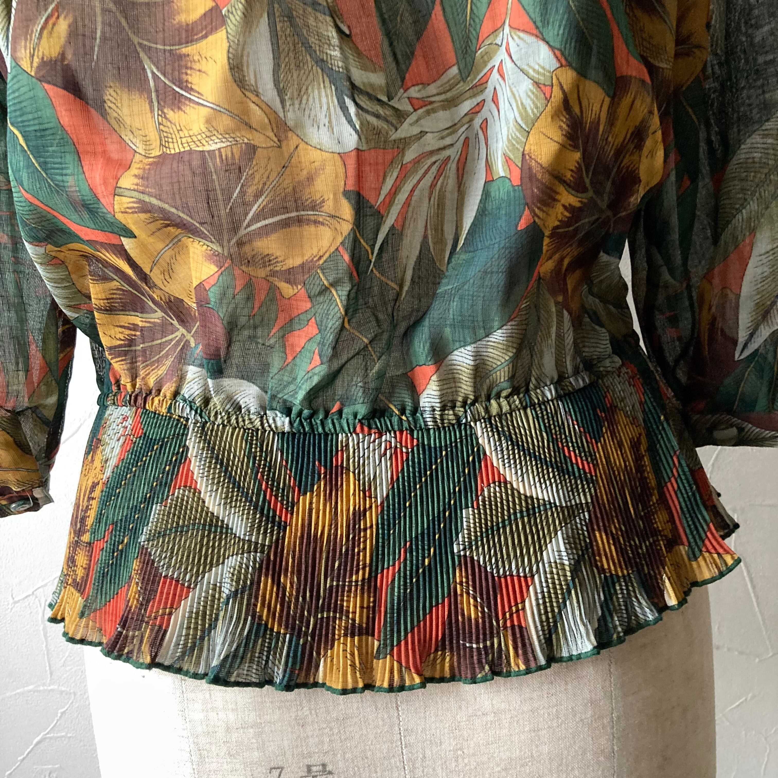 ボタニカル柄デザインブラウス 古着 used vintage レトロ