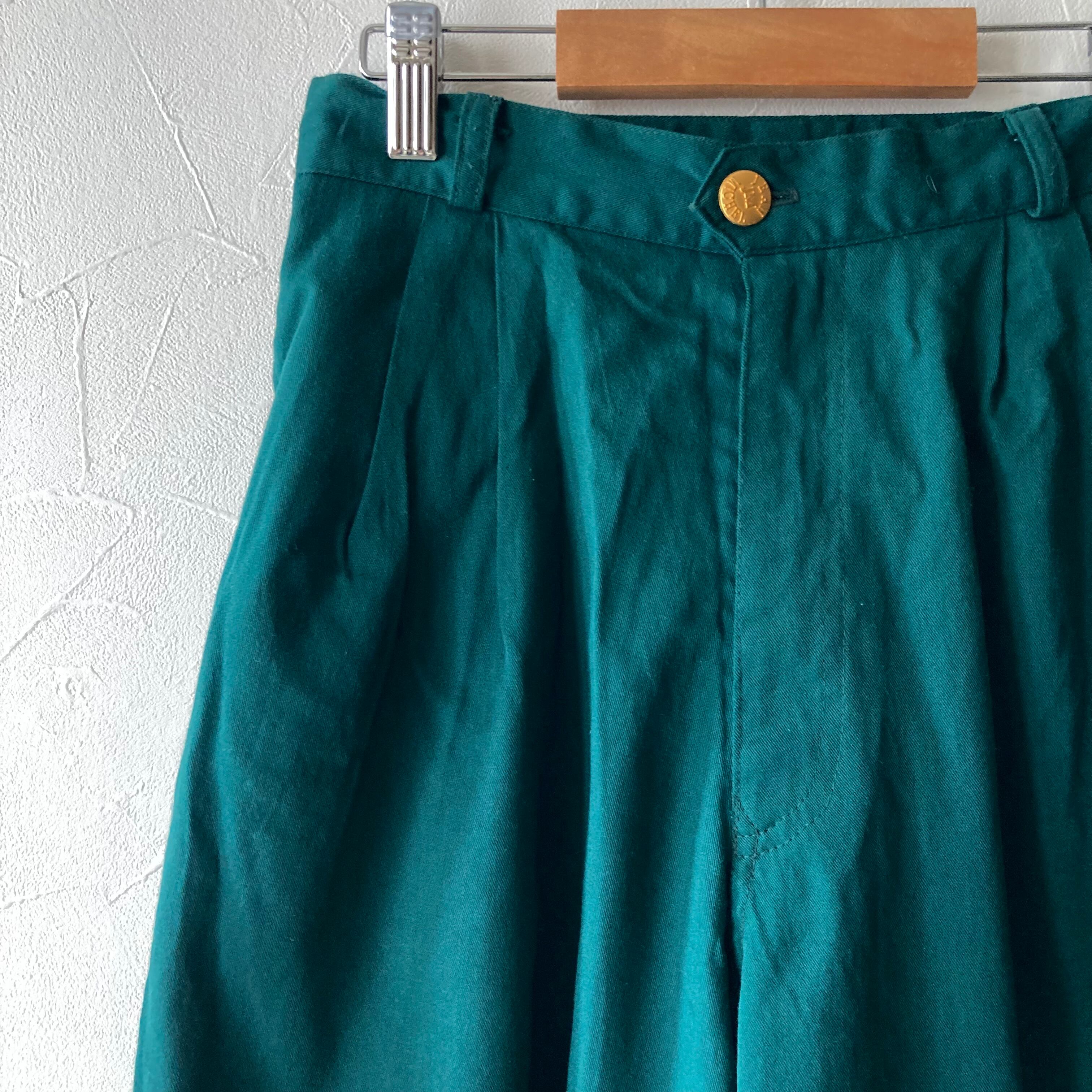 深緑ハイウエストタックパンツ 古着 used vintage レトロ