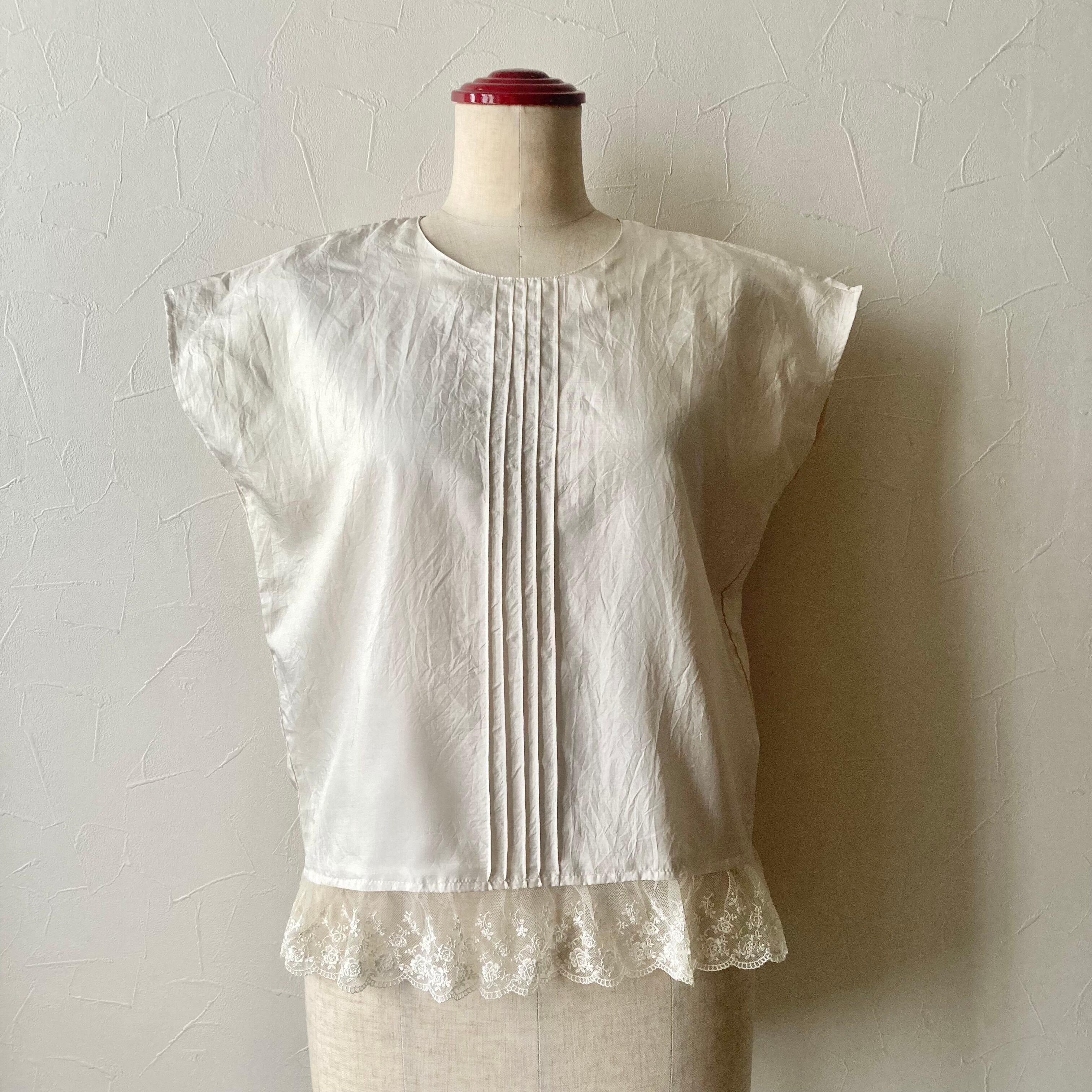 フレンチスリーブレース装飾トップス 古着 used vintage レトロ