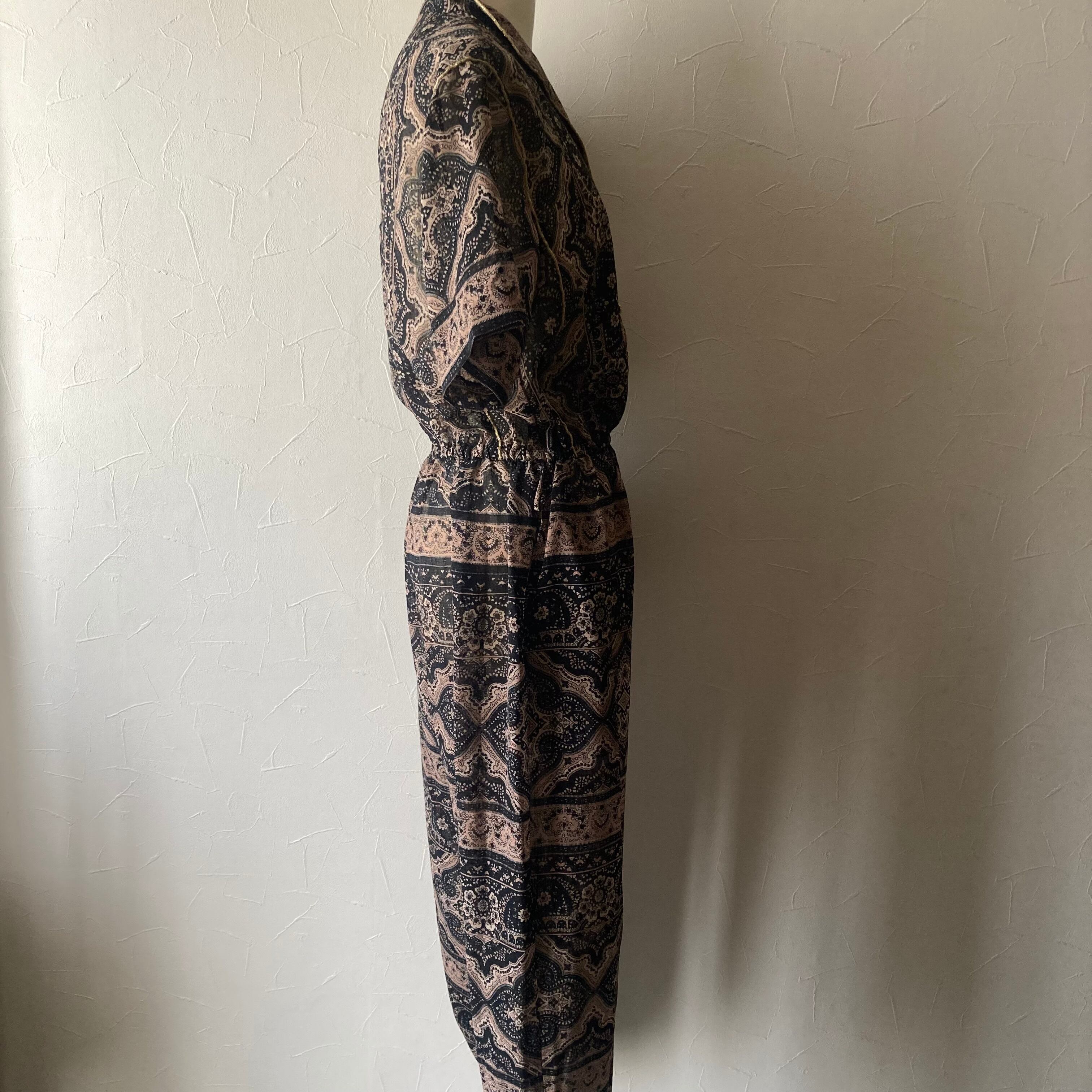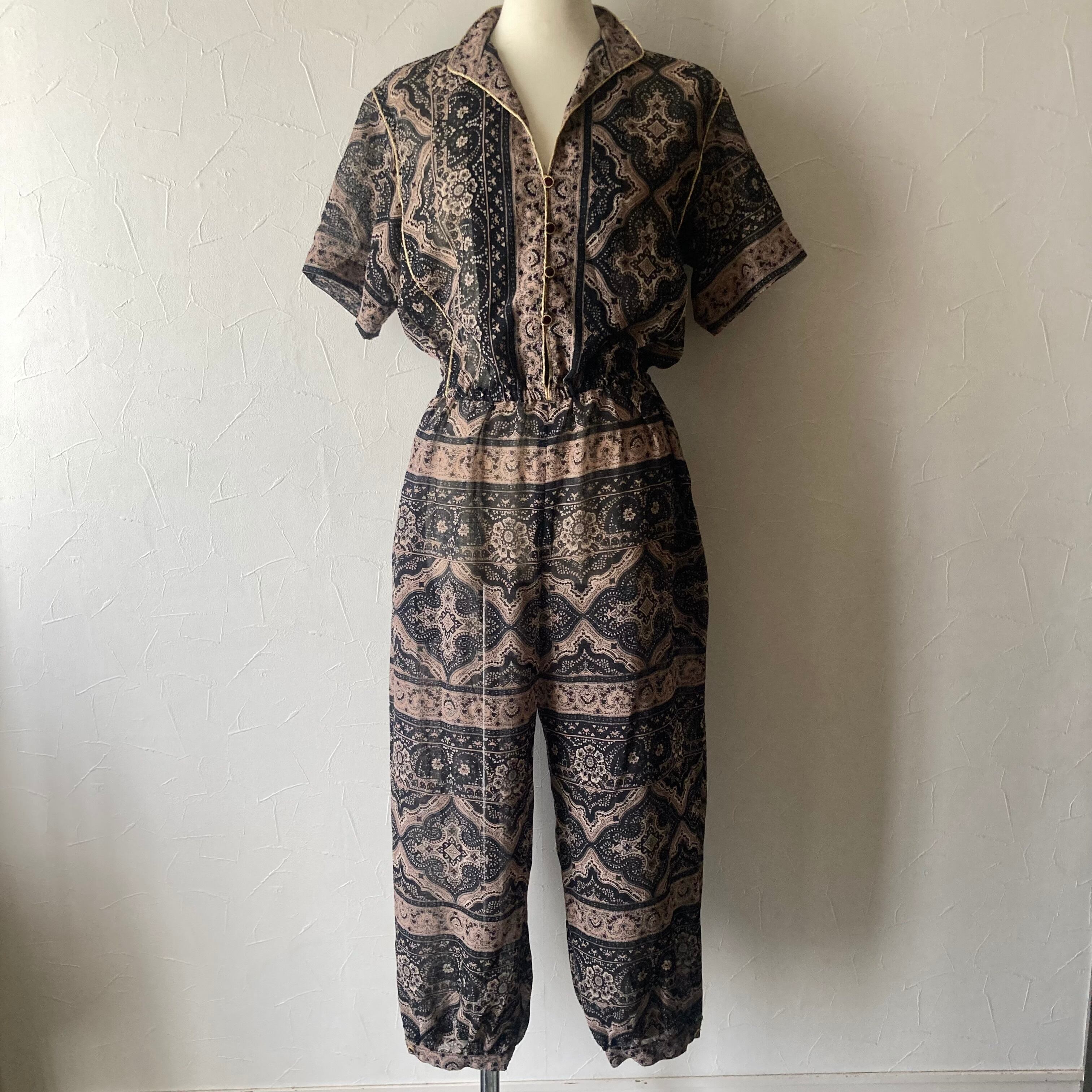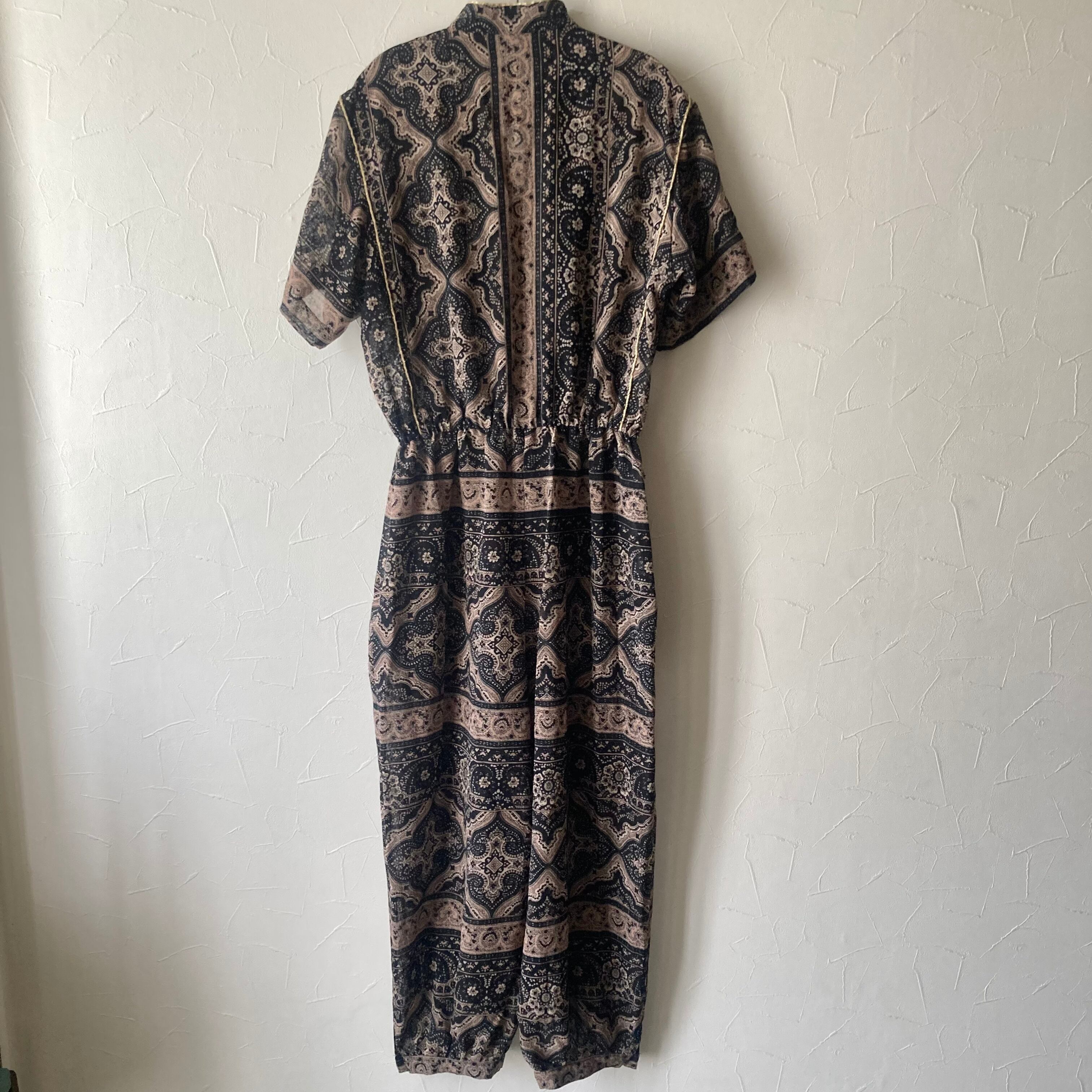 モノトーンな色合いに古着らしい素敵な柄が印象的なとってもお洒落なオールインワン。
