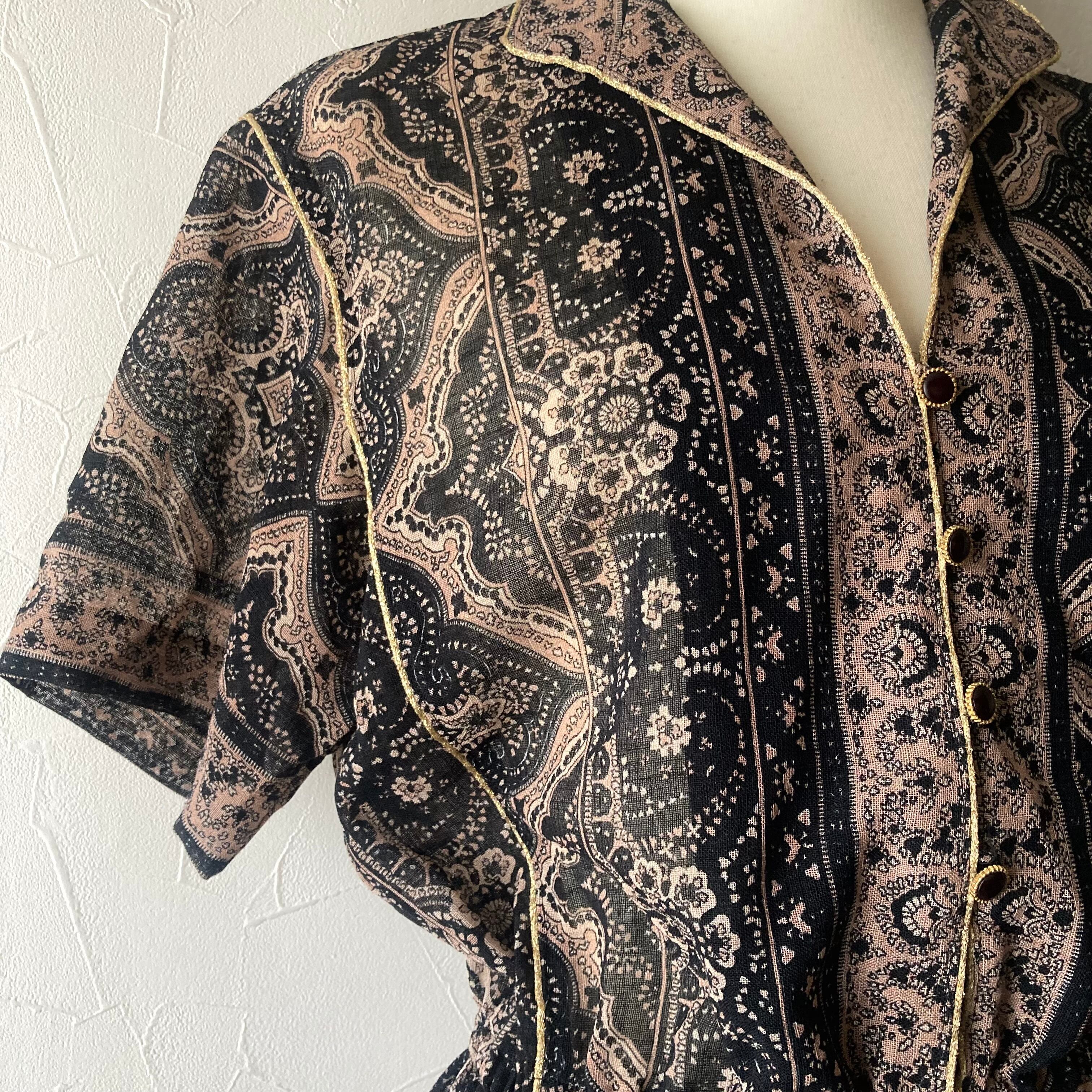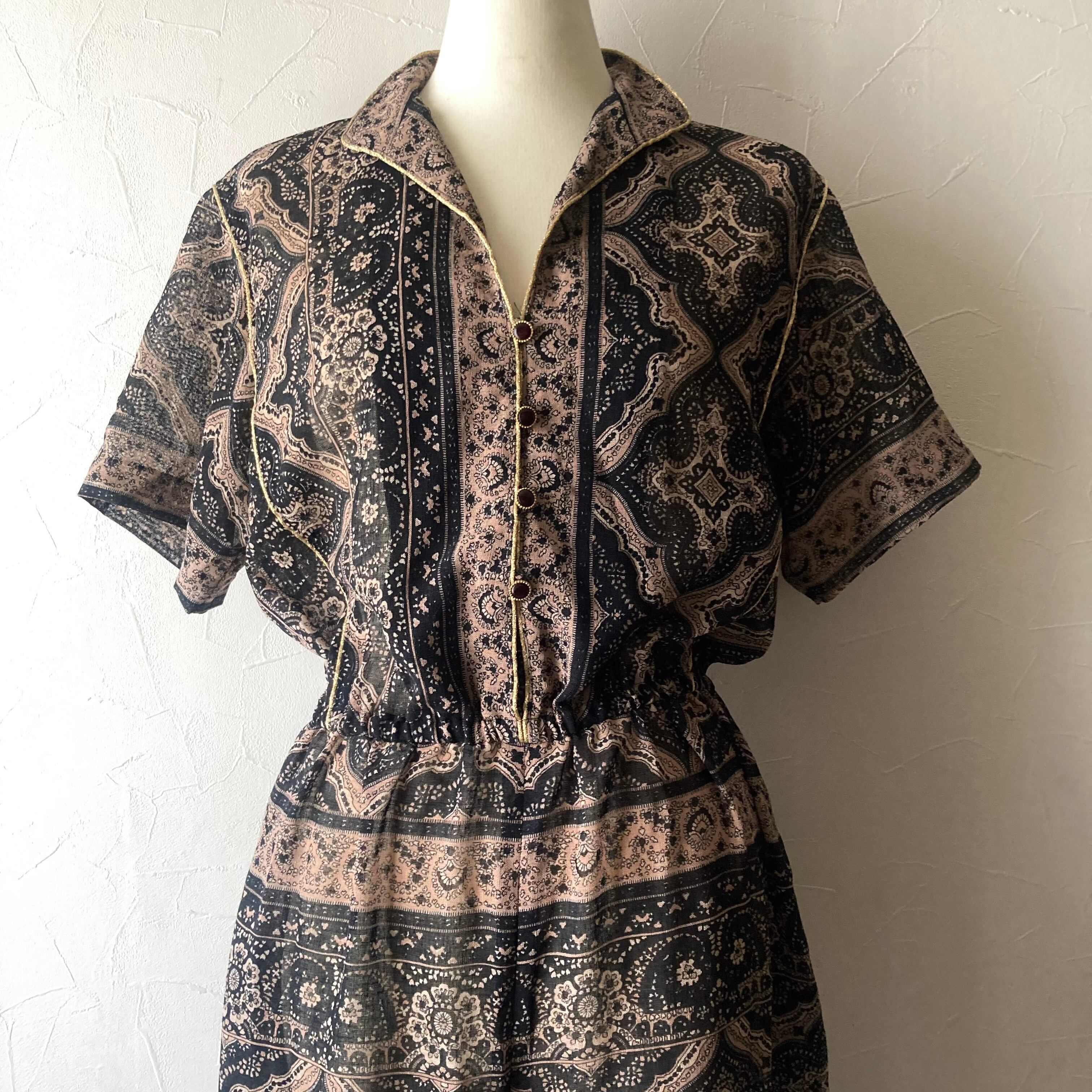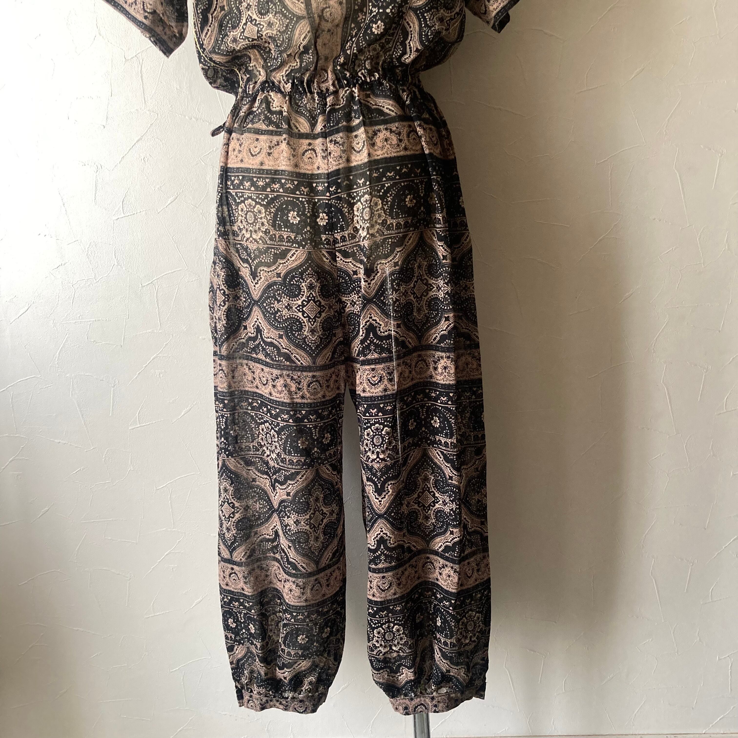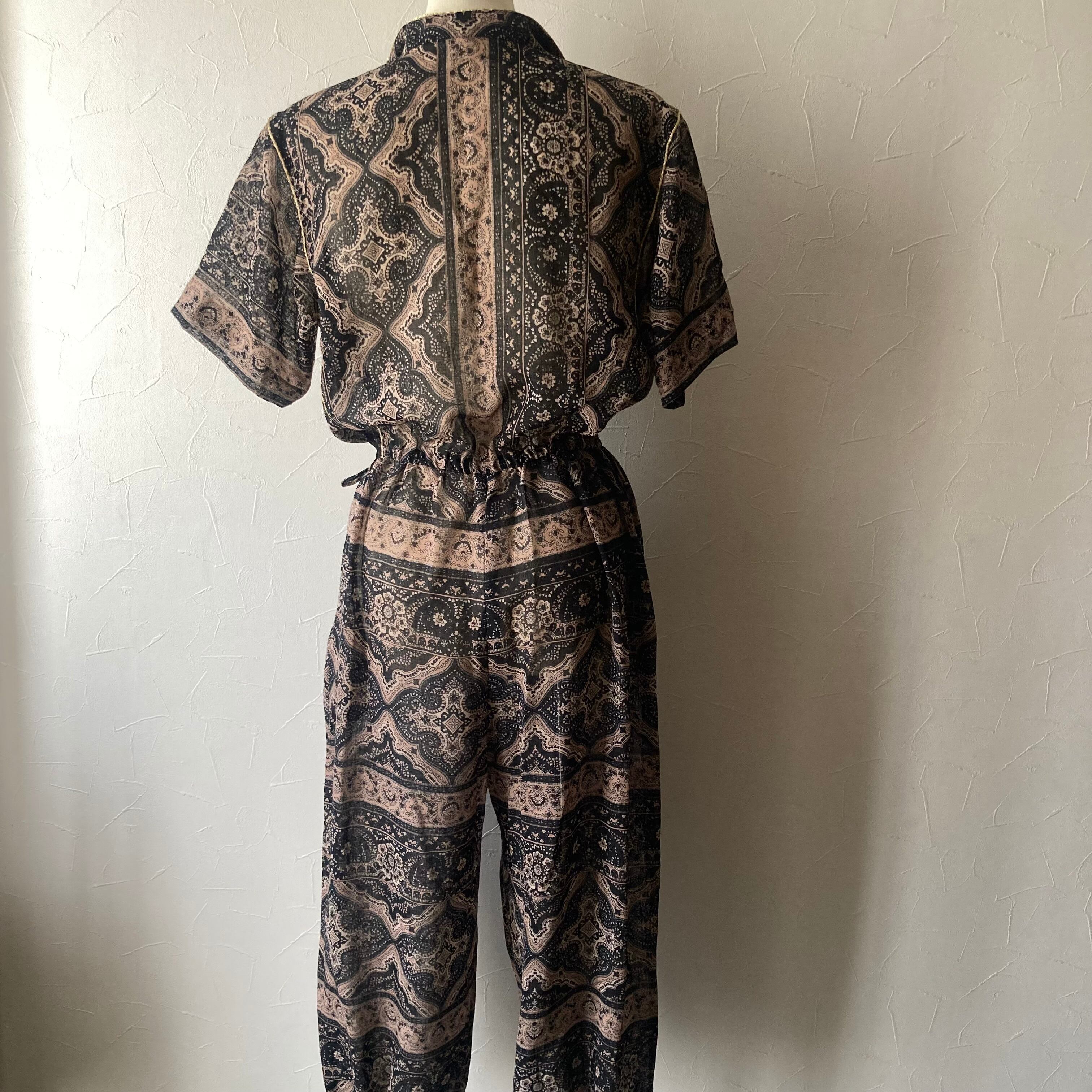 モノトーンな色合いに古着らしい素敵な柄が印象的なとってもお洒落なオールインワン。