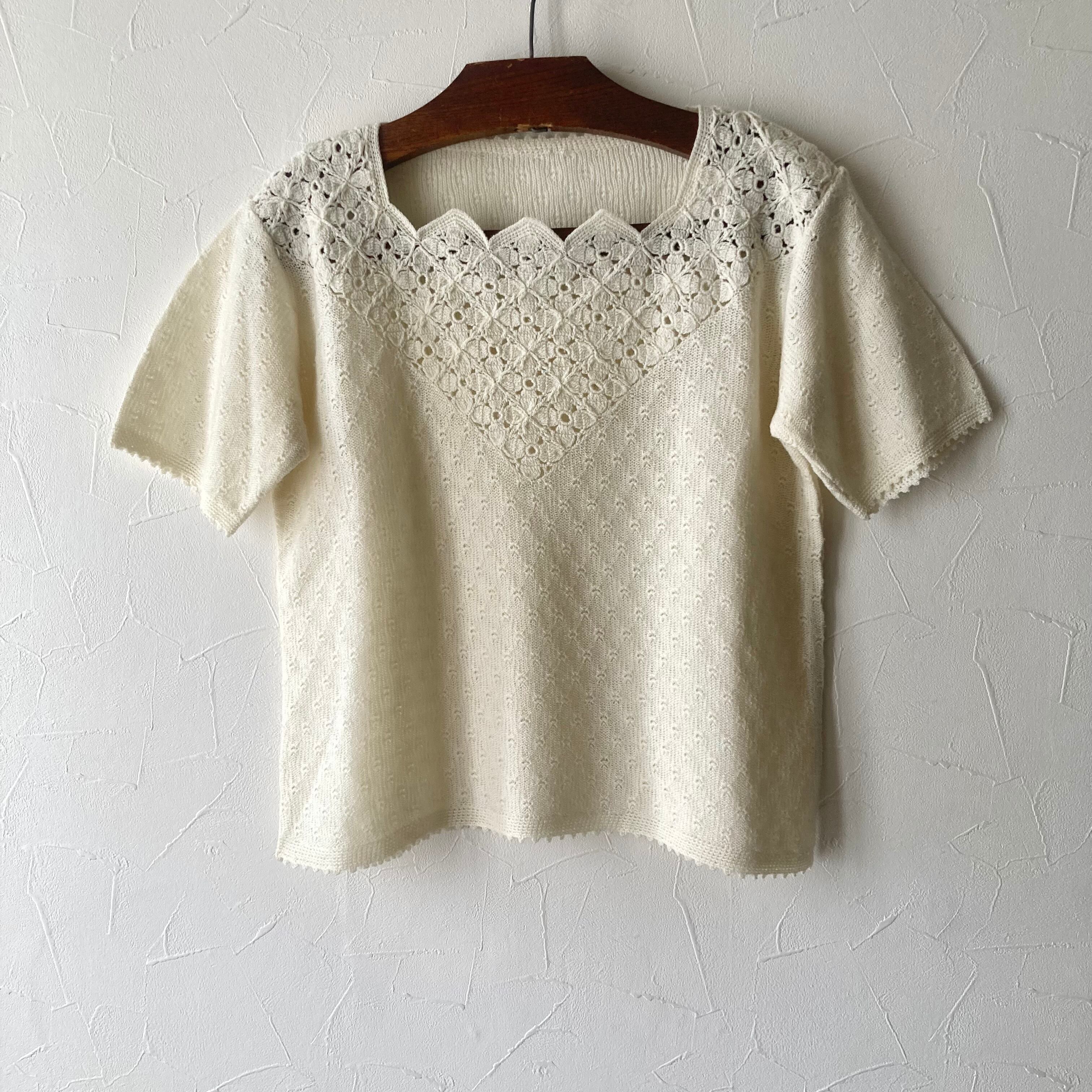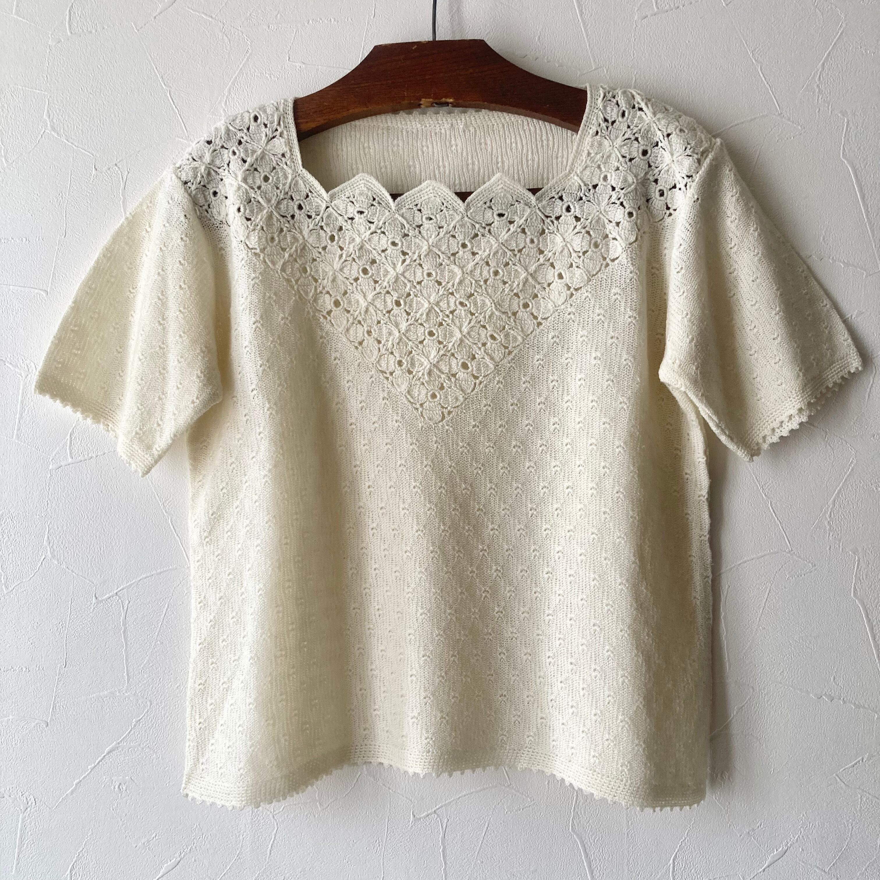 ホワイトサマーニット 古着 used vintage レトロ