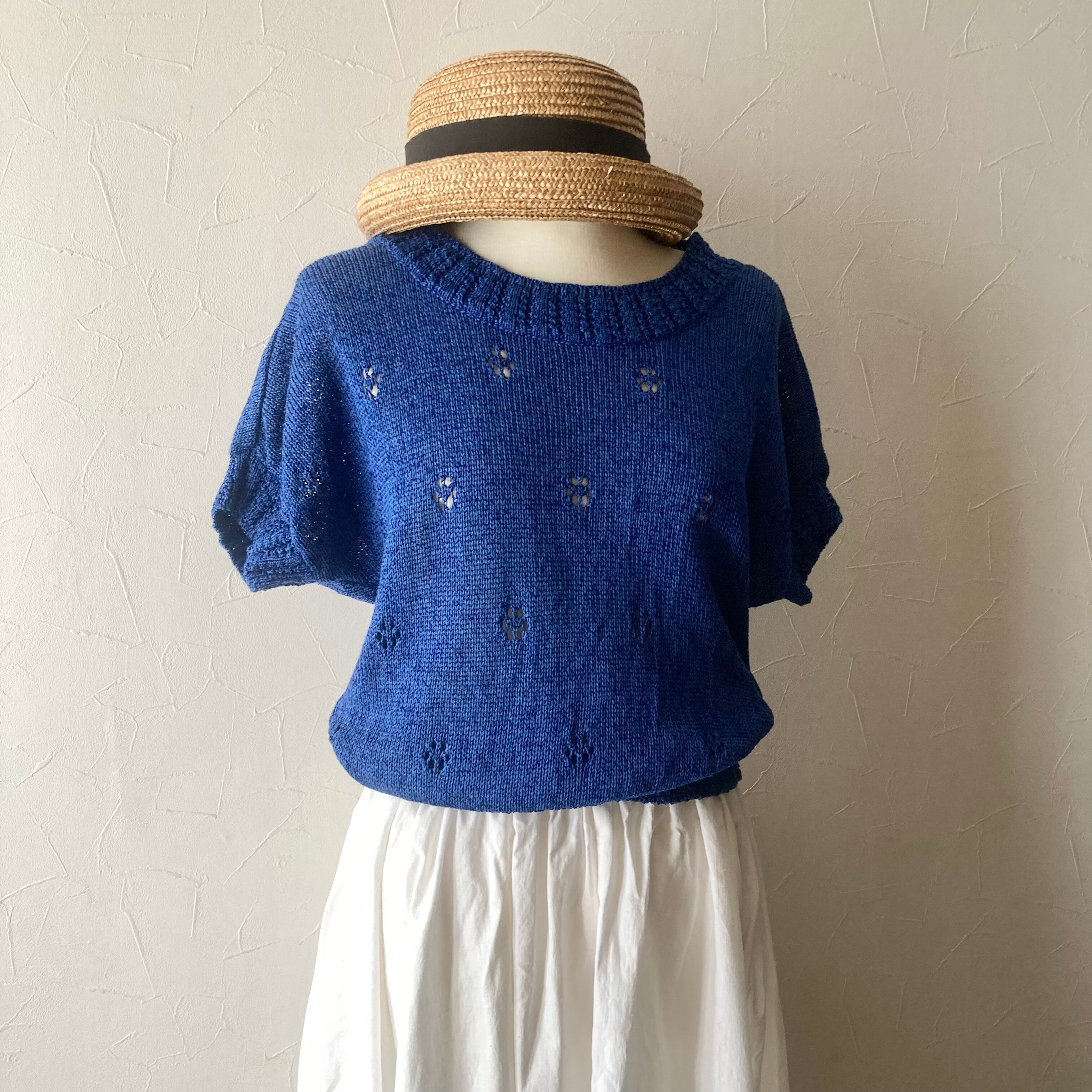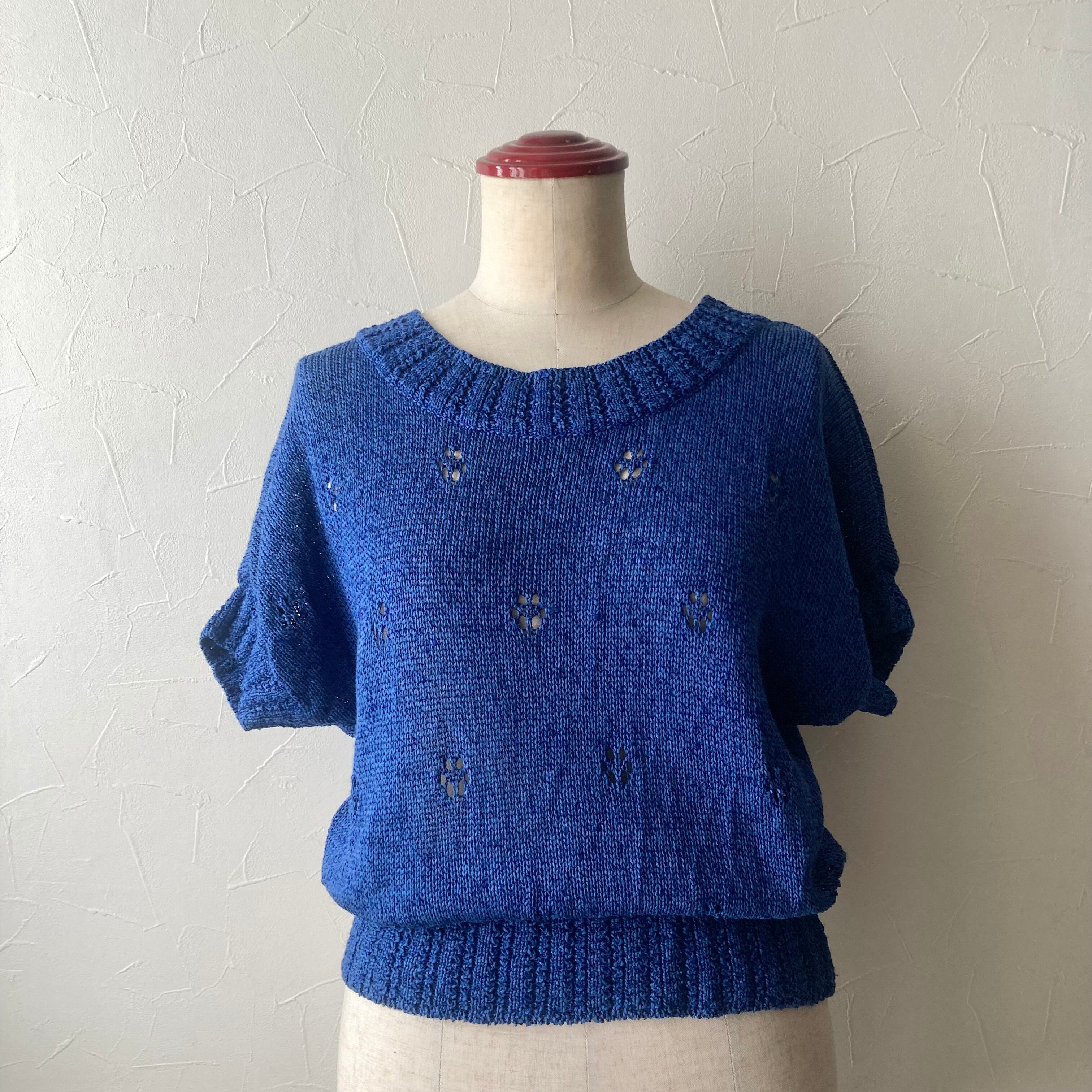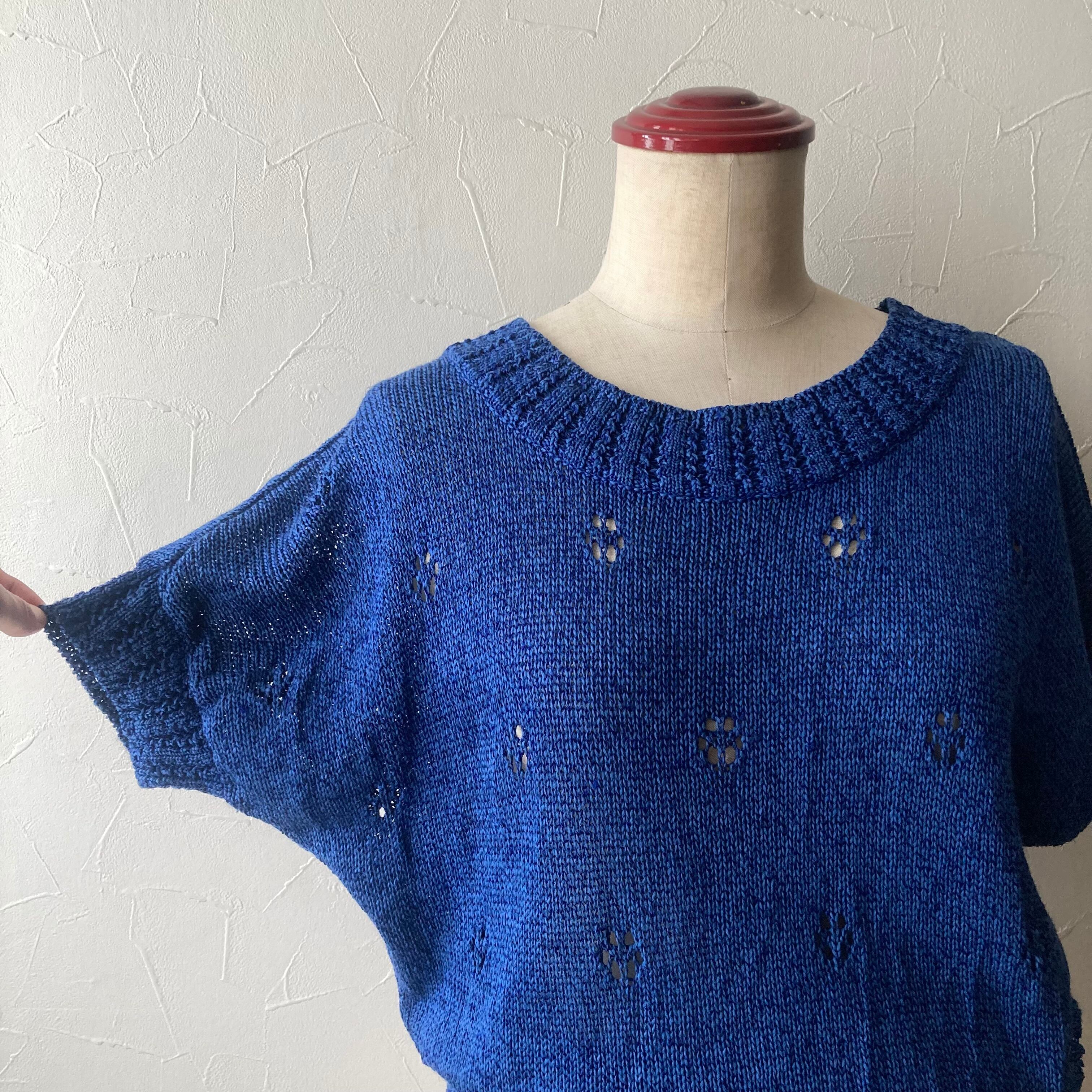 ブルー麻混サマーニット 古着 used vintage レトロ