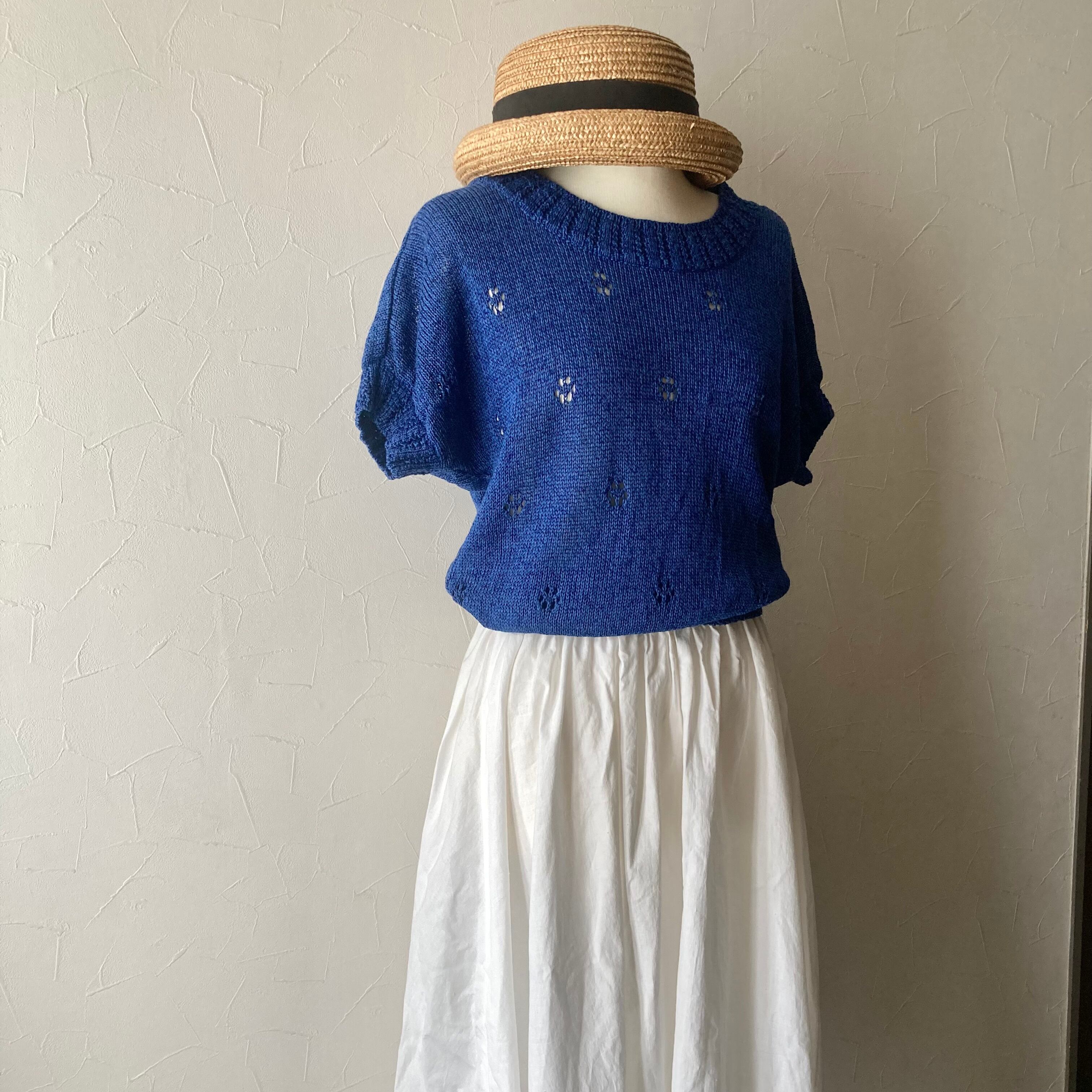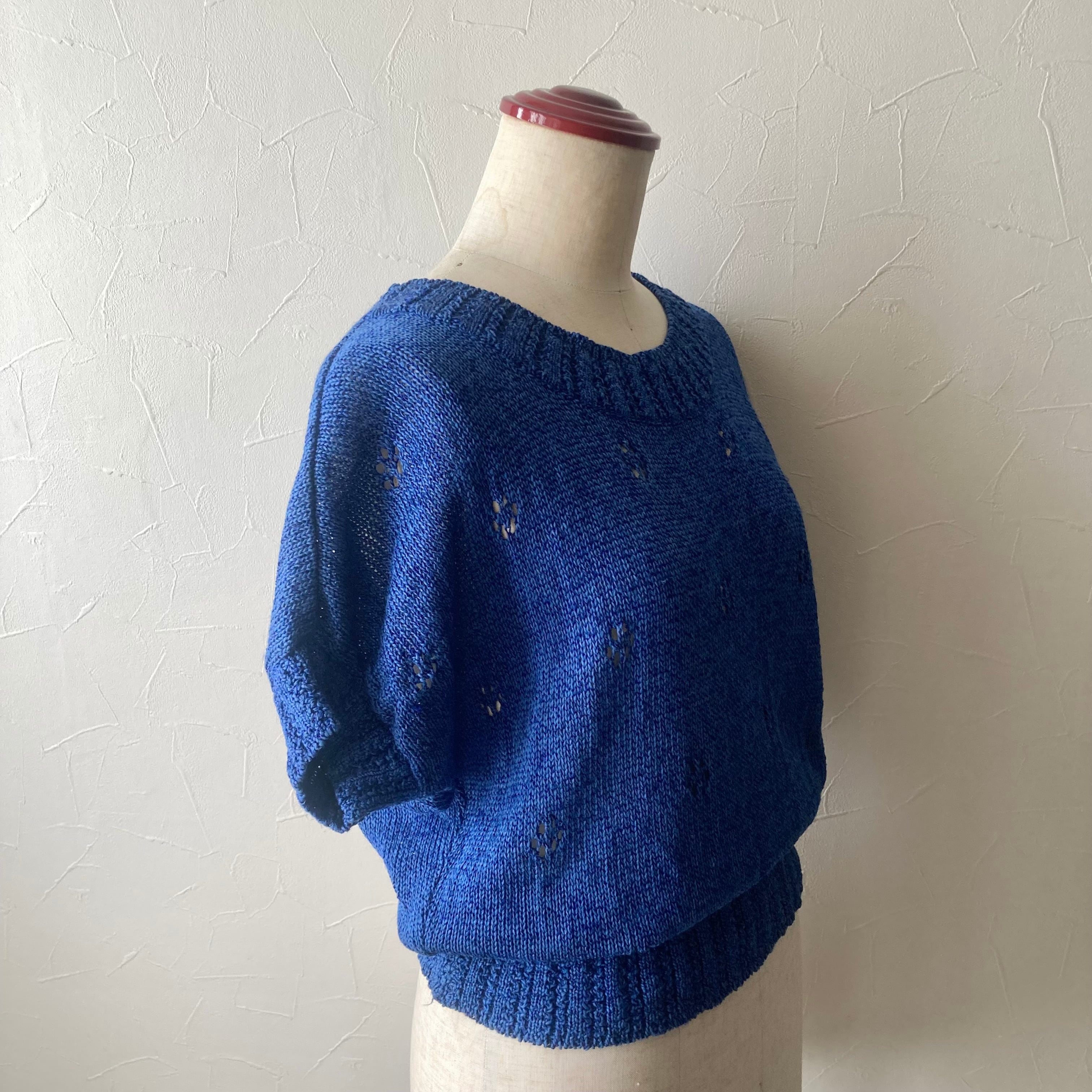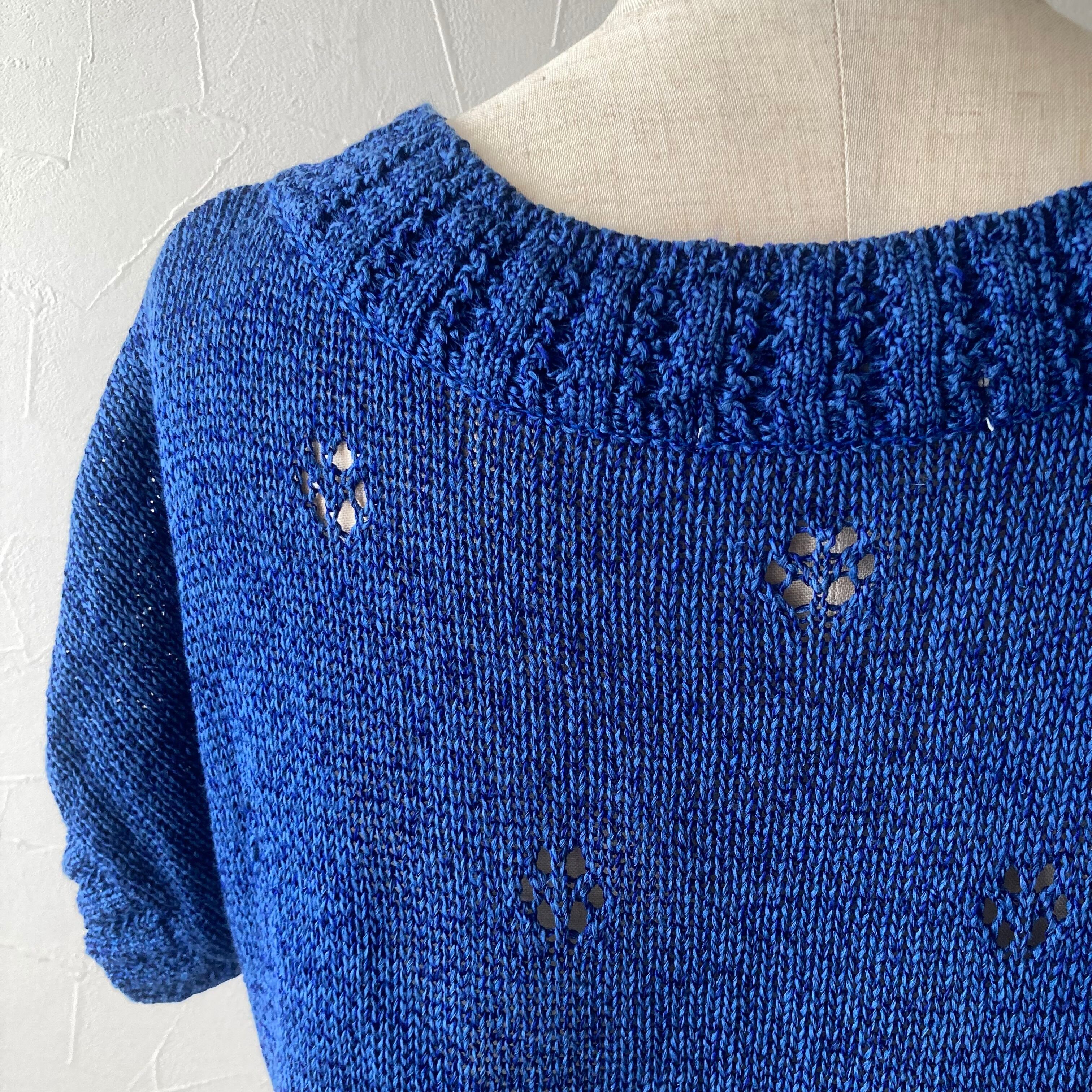 ブルー麻混サマーニット 古着 used vintage レトロ