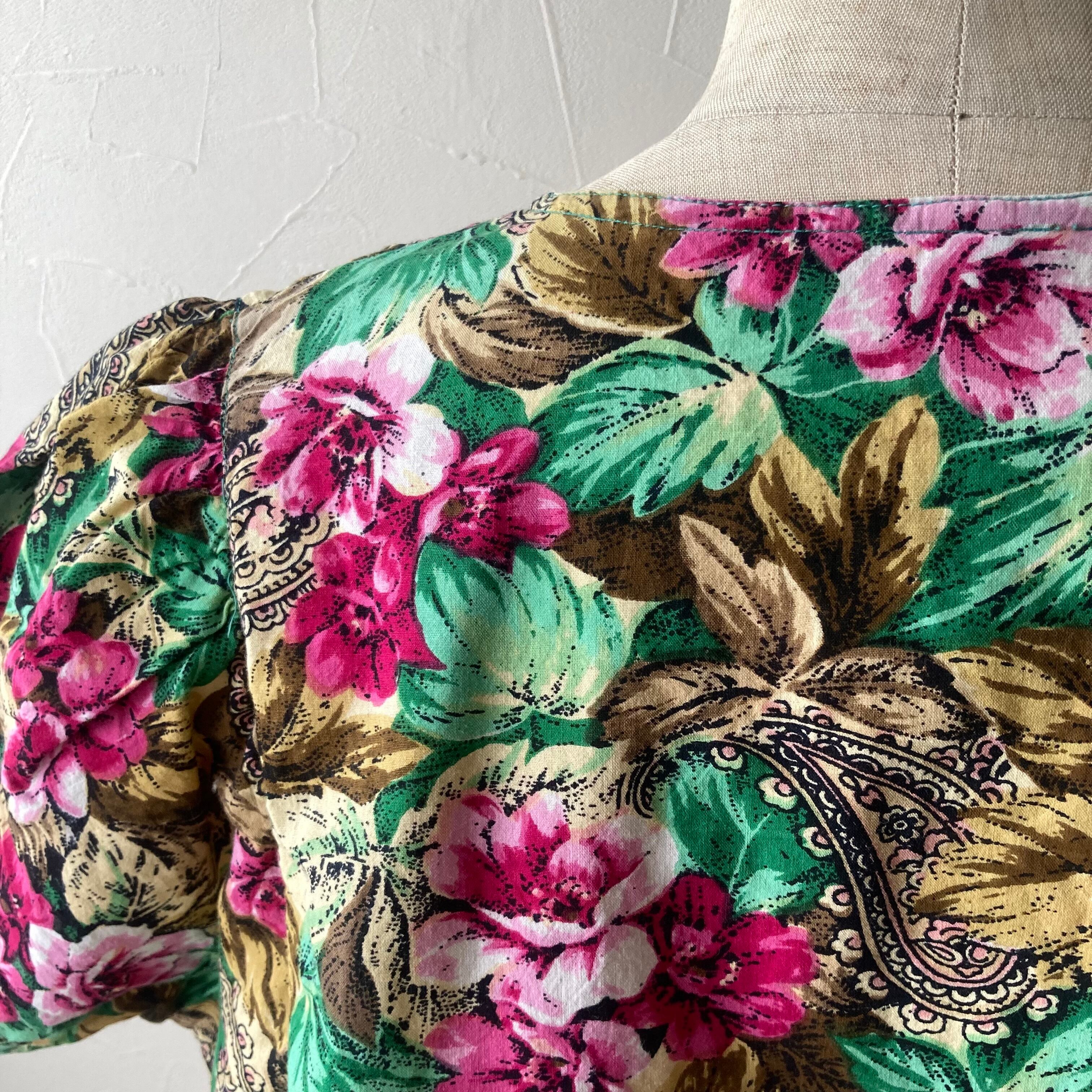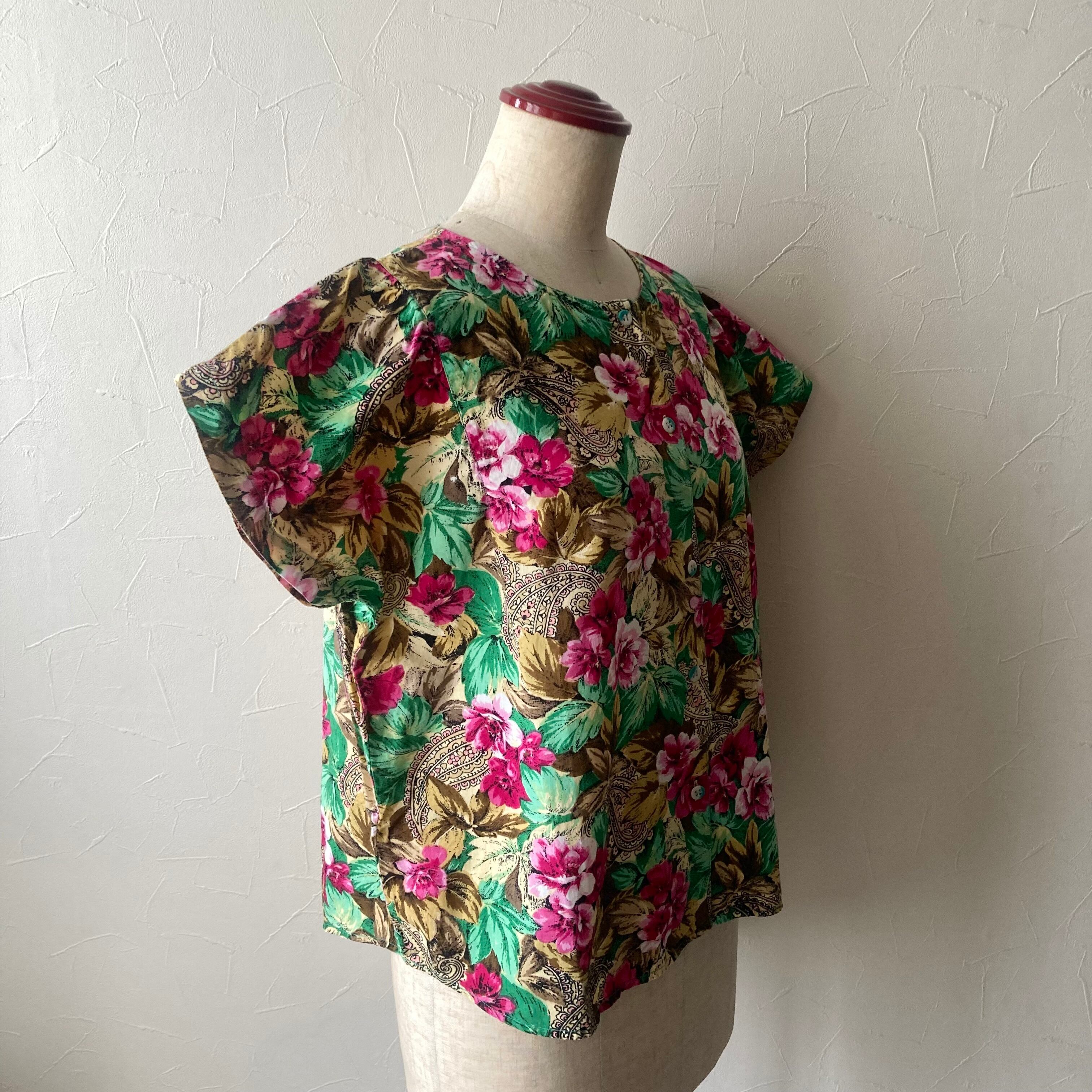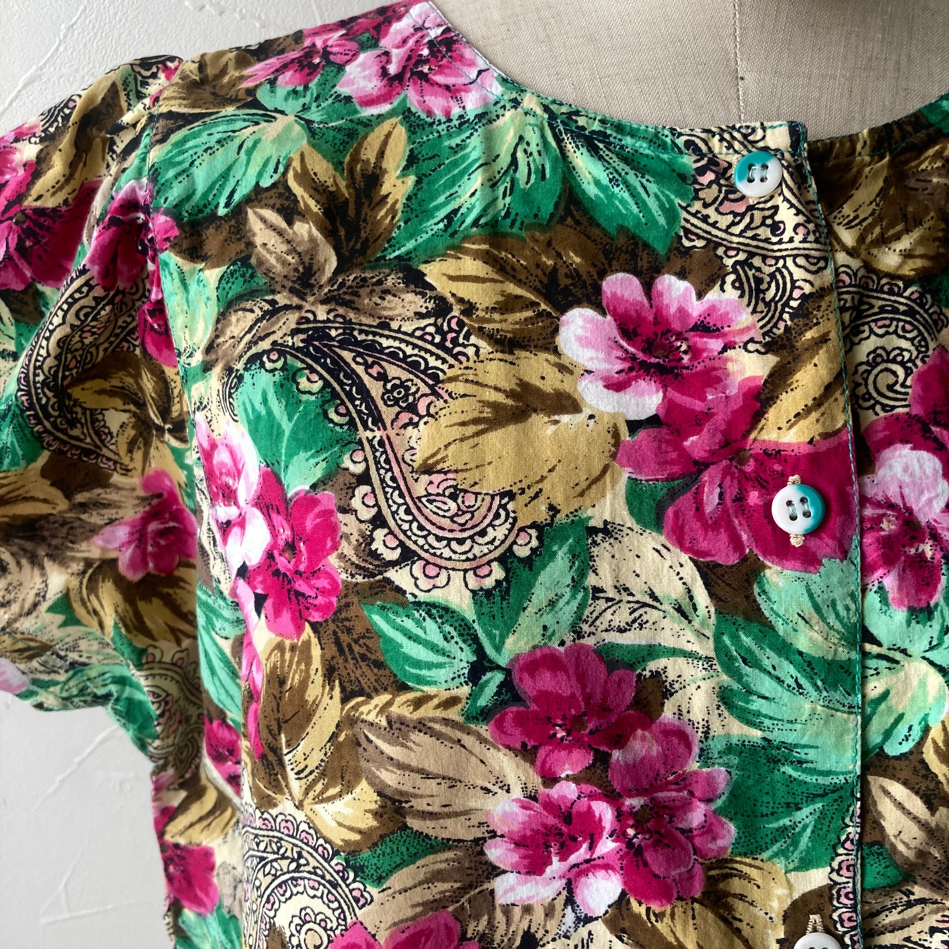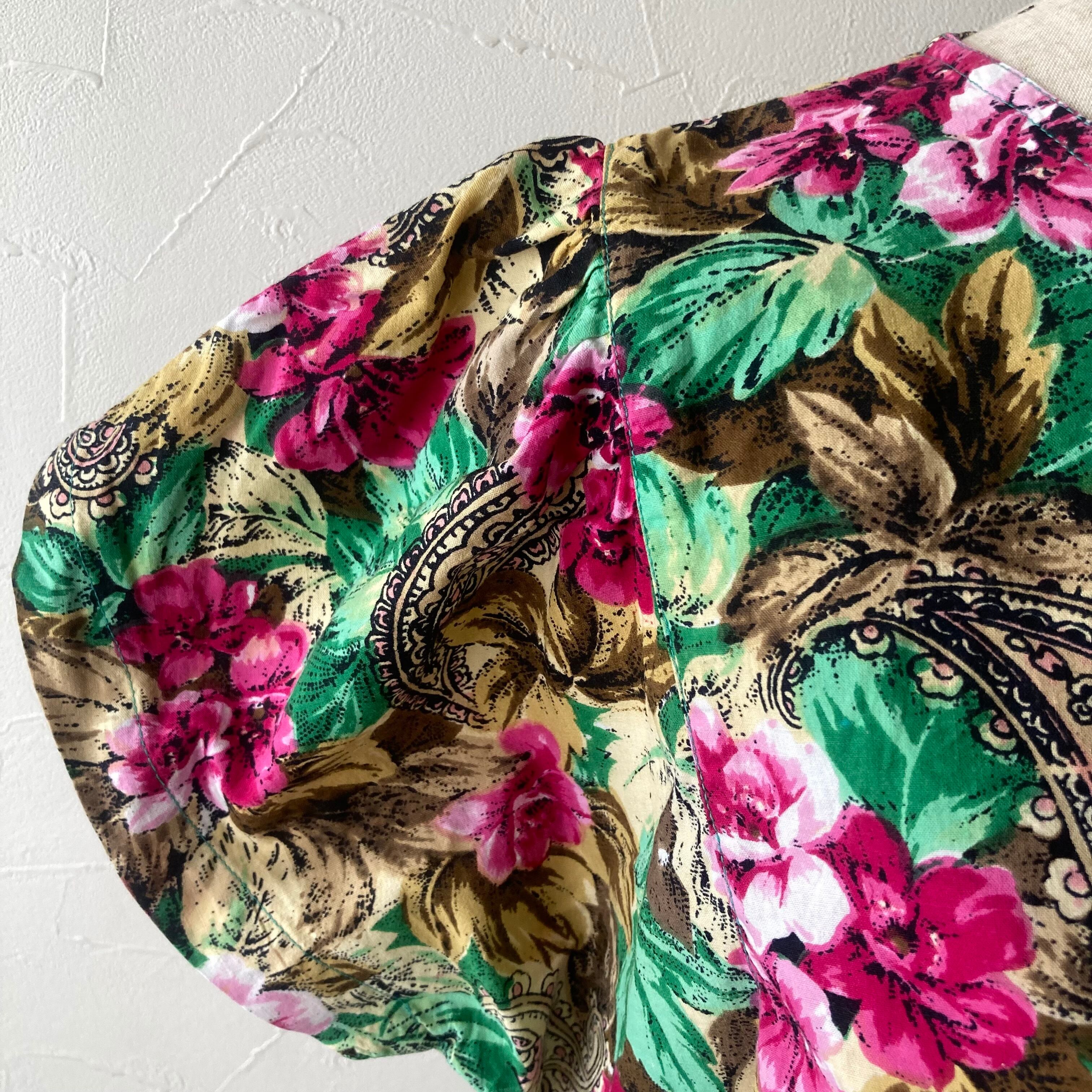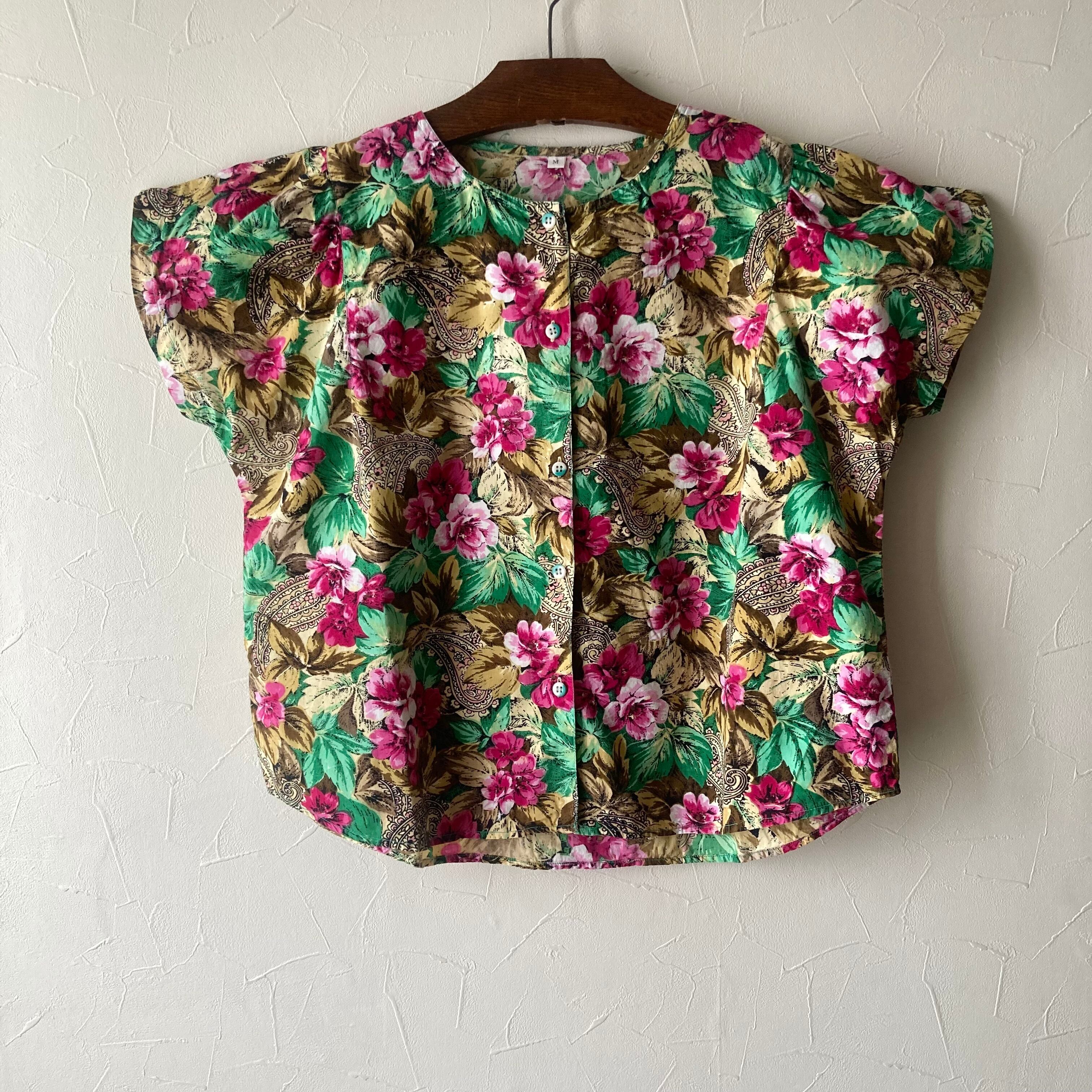エキゾチックな花柄とペイズリーのコットンブラウス◯