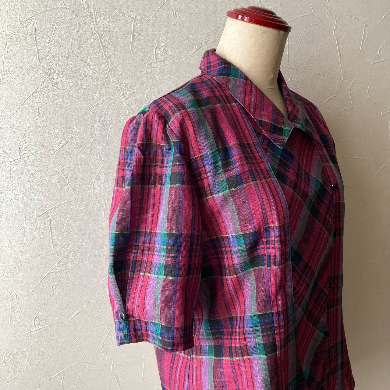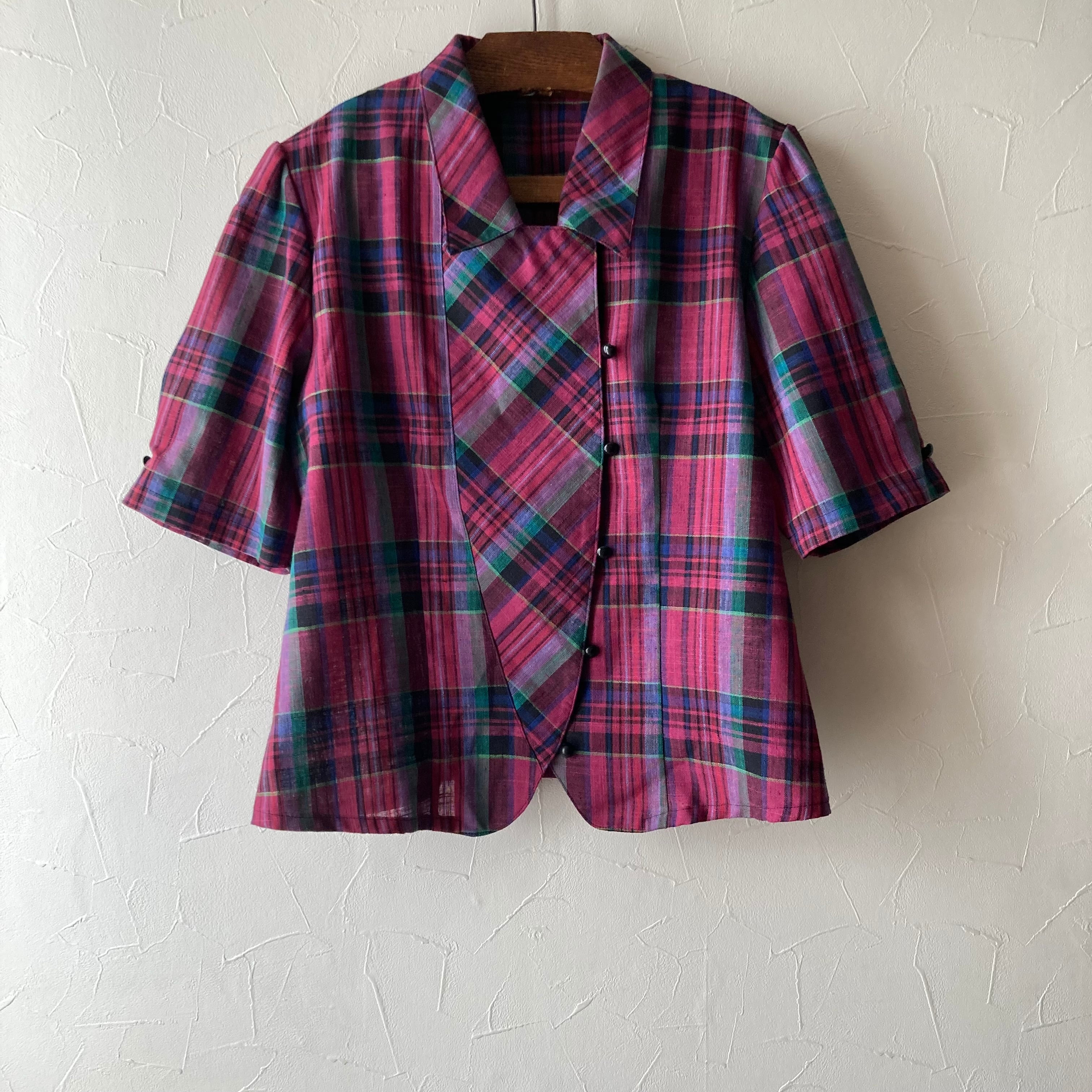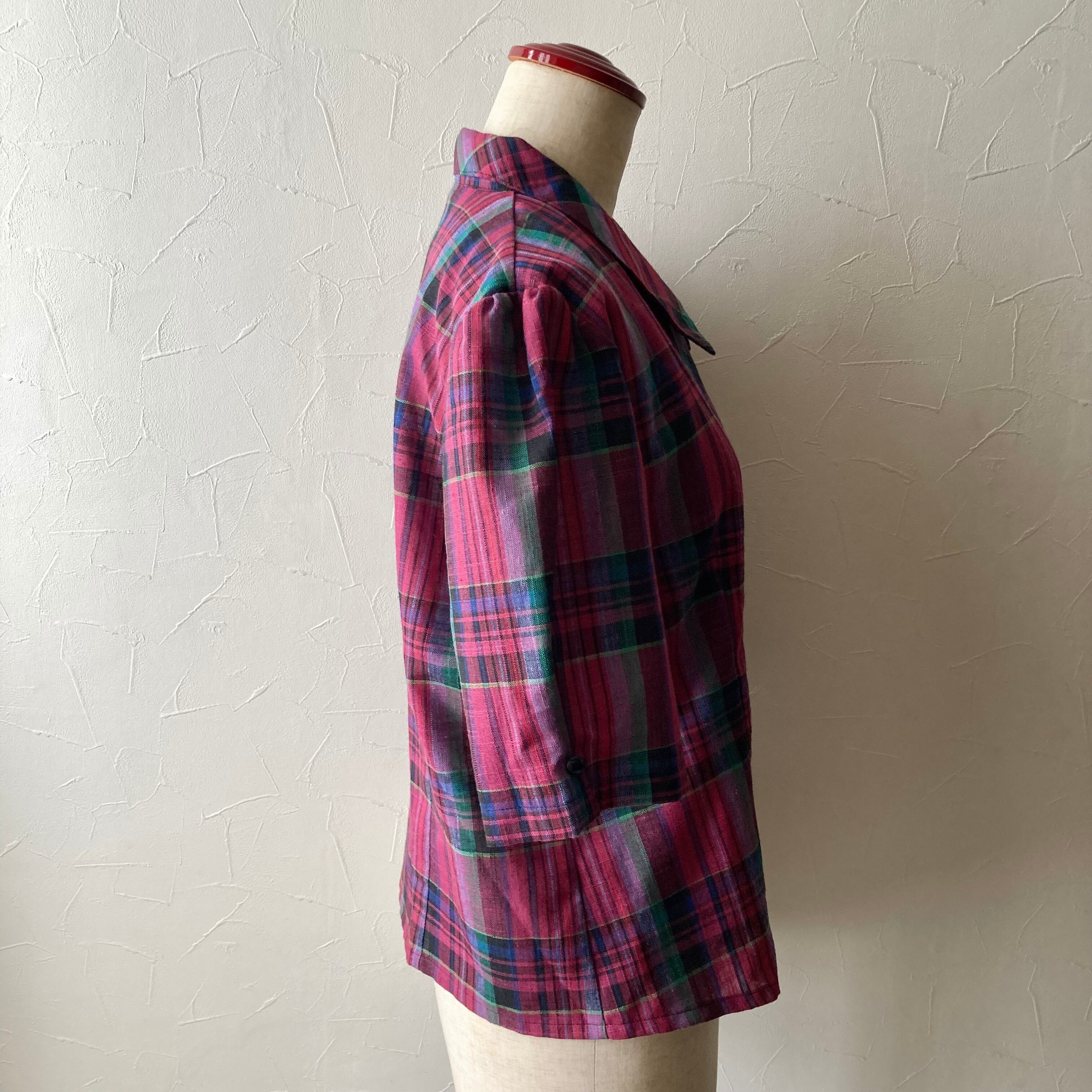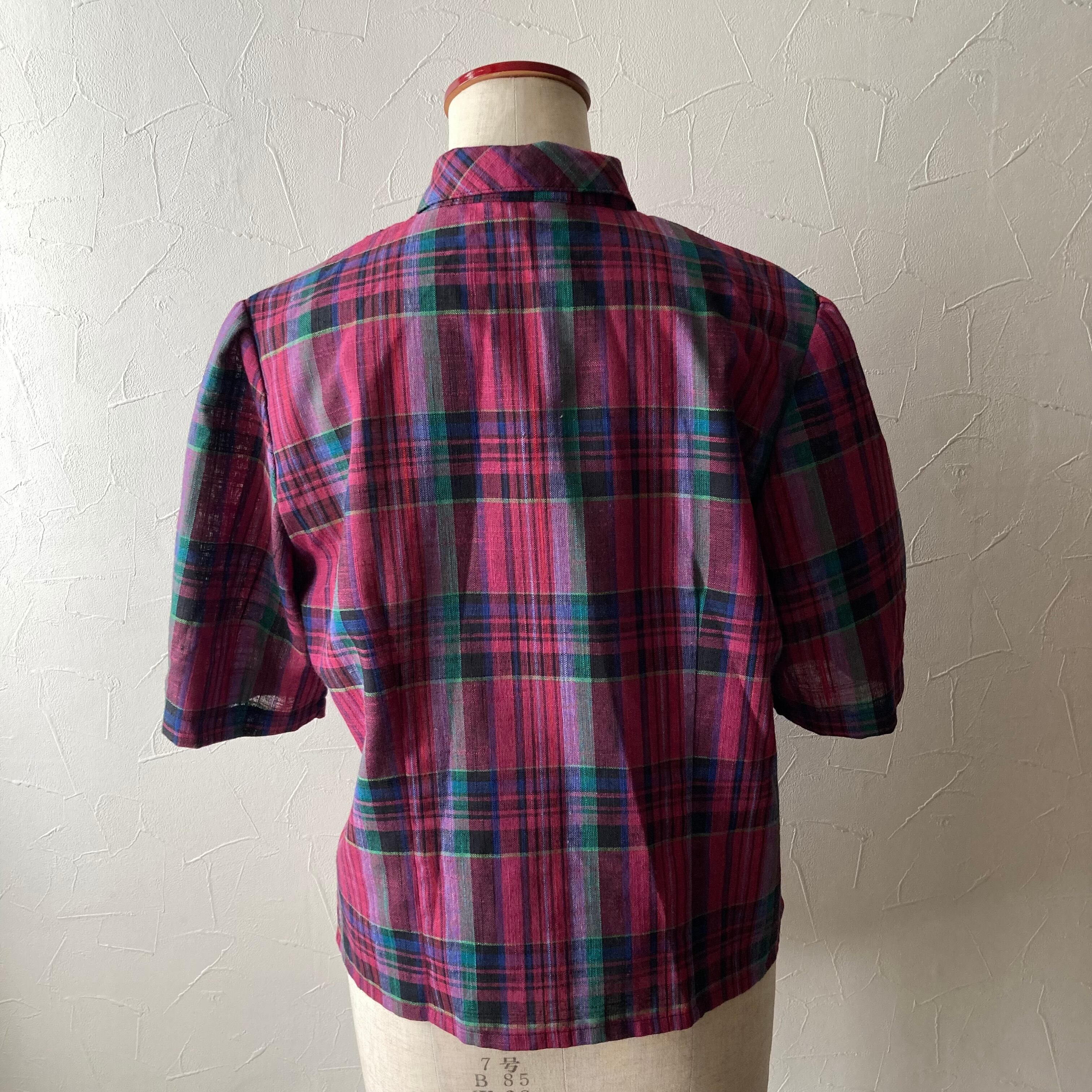 デザインが可愛らしいチェックのパフスリーブトップス◯
