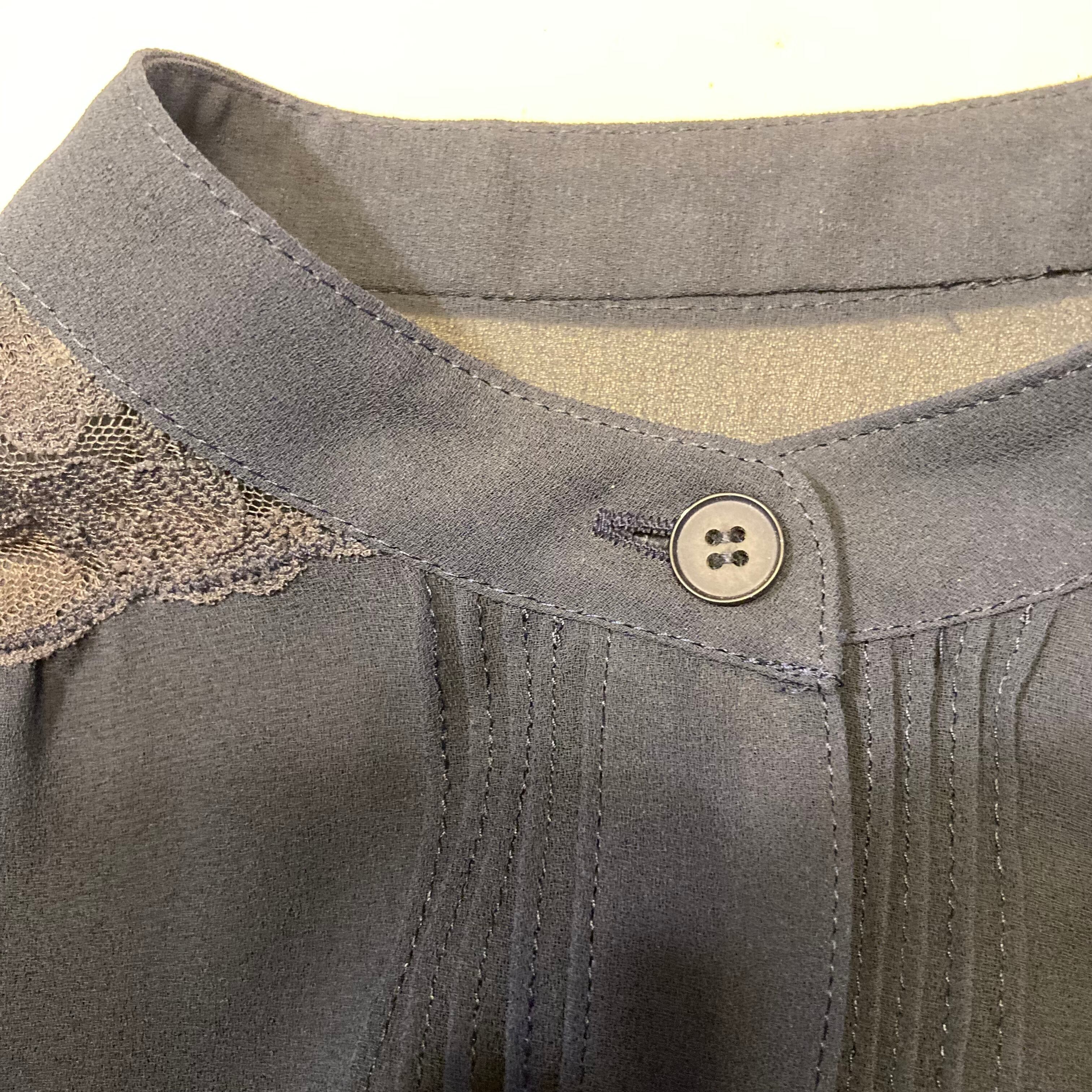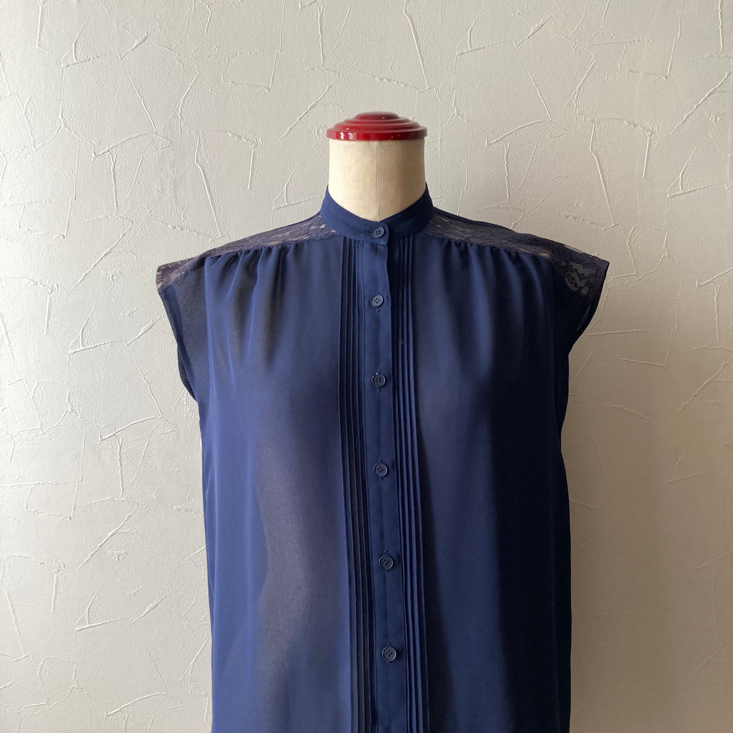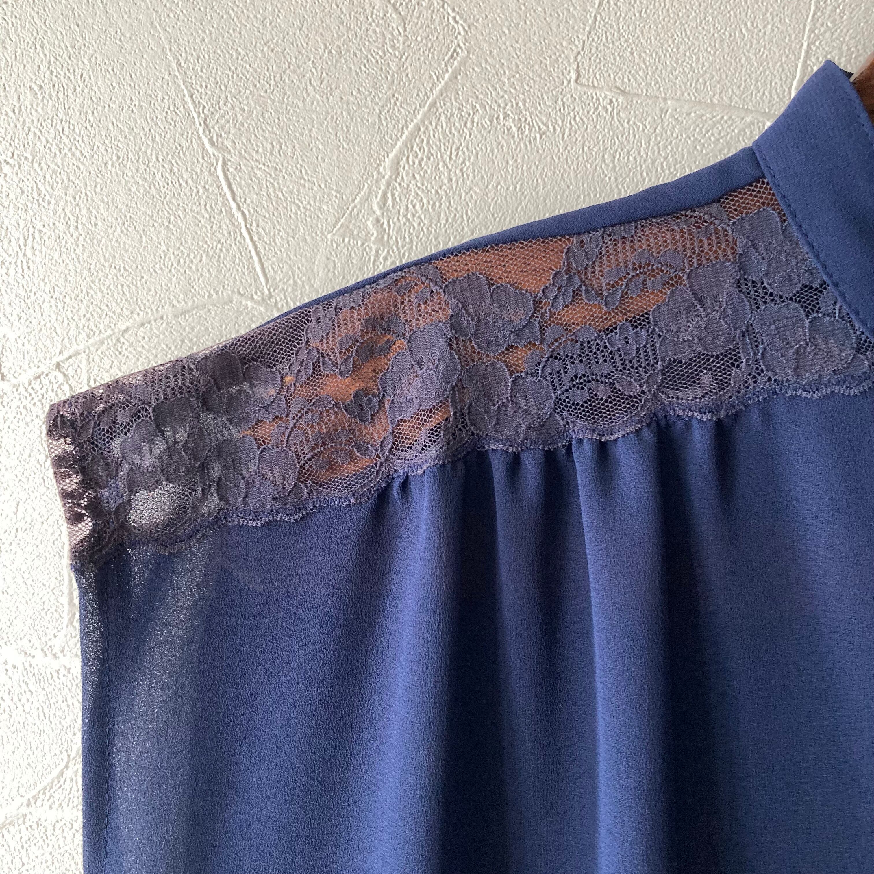 肩の透けレースが可愛らしいネイビーの東京ブラウス製ブラウス◯ フレンチスリーブですっきりとしたシルエット。コーデは甘くも甘辛くも似合いそう♡
