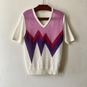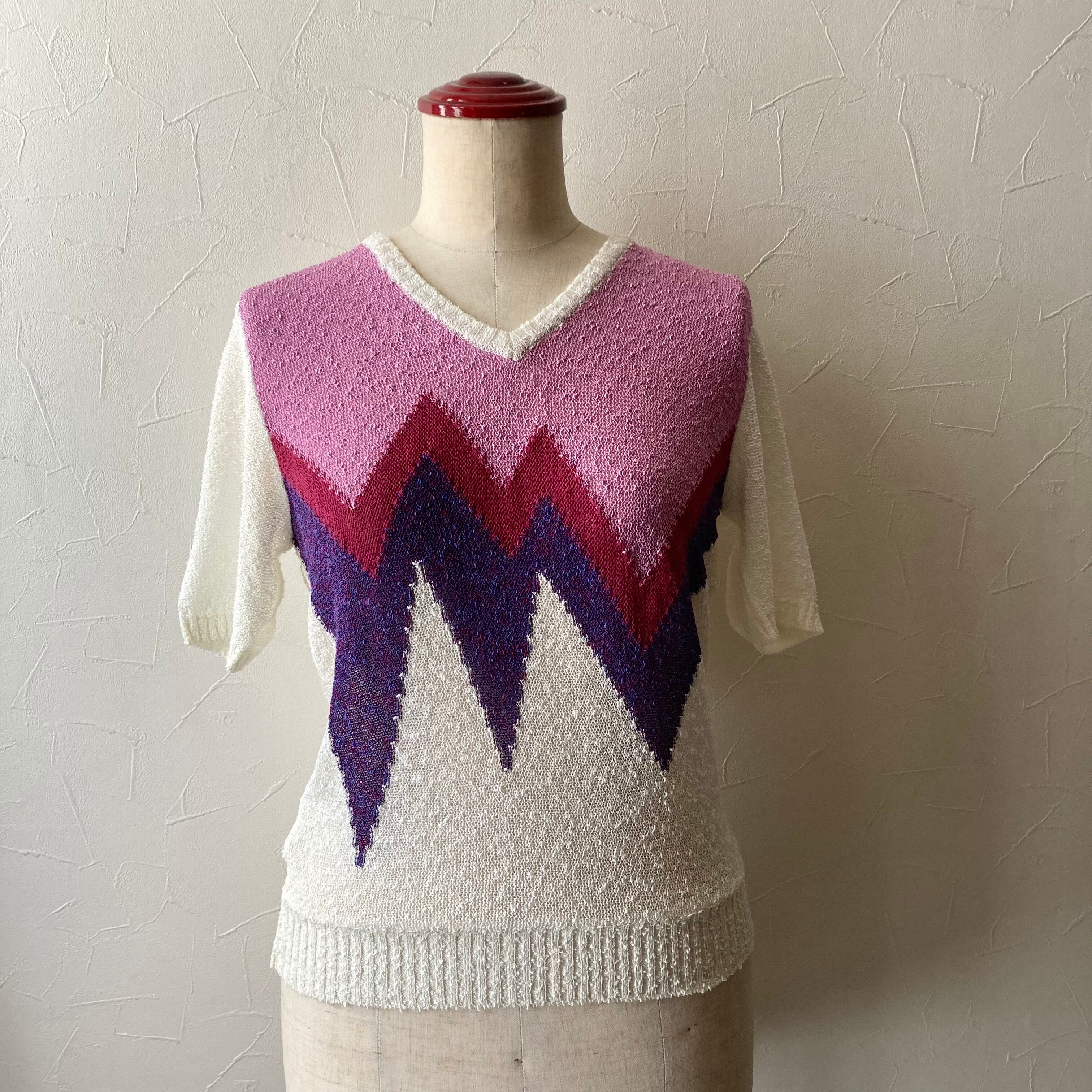 色合いが可愛いギザギザ柄のクールなサマーニット◯ 70s80sな古着らしいデザインがステキです。ベルボトムでかっこよく着たいところです♡