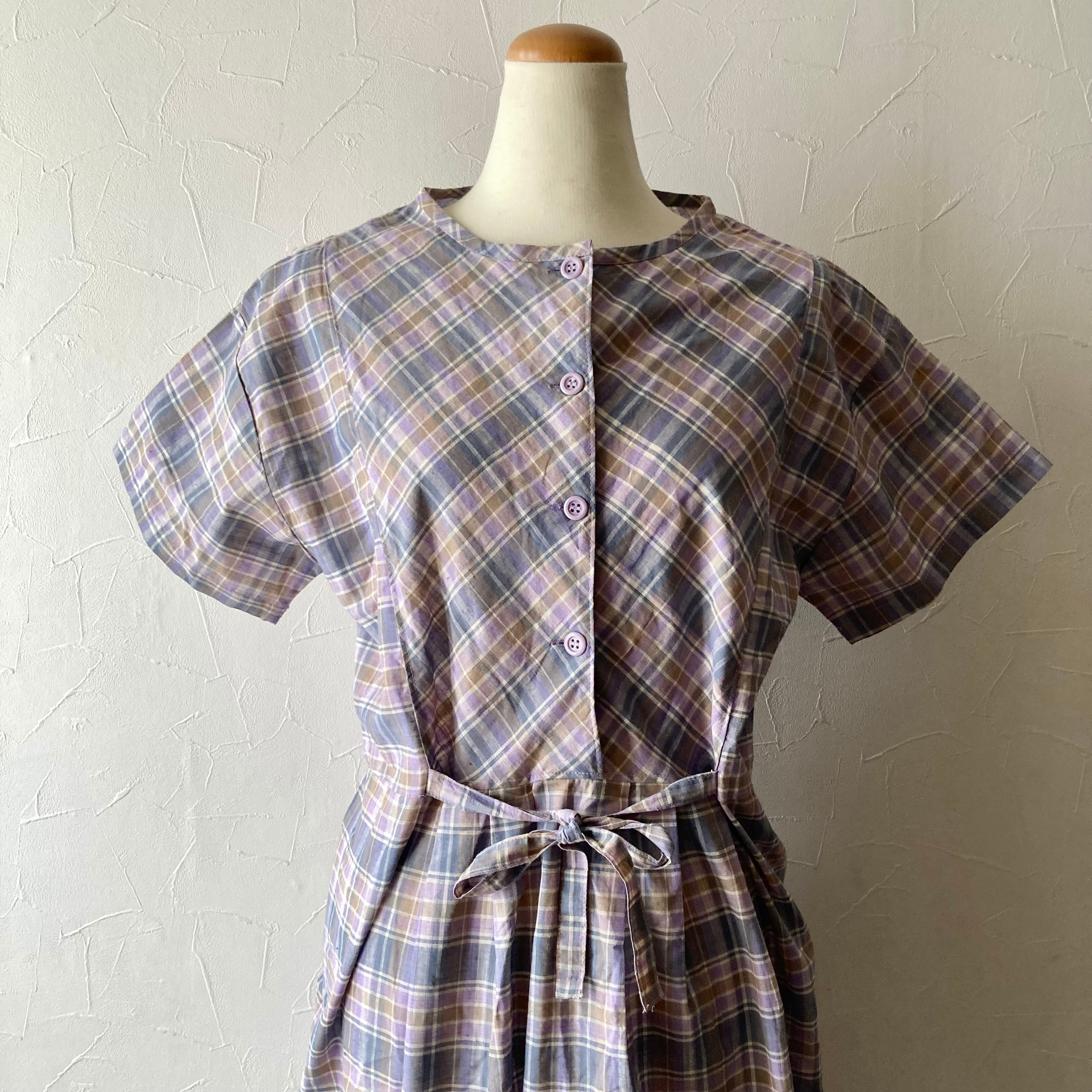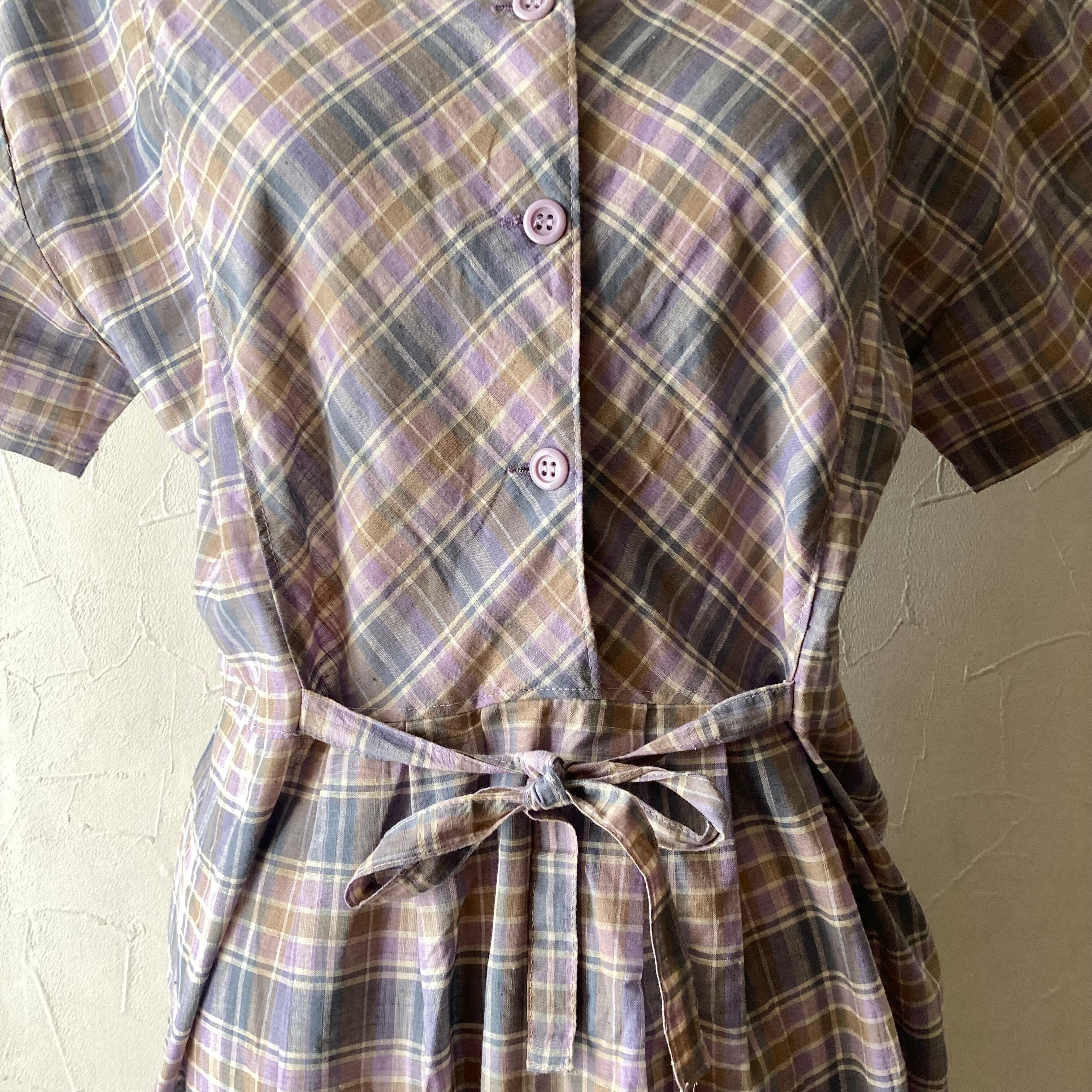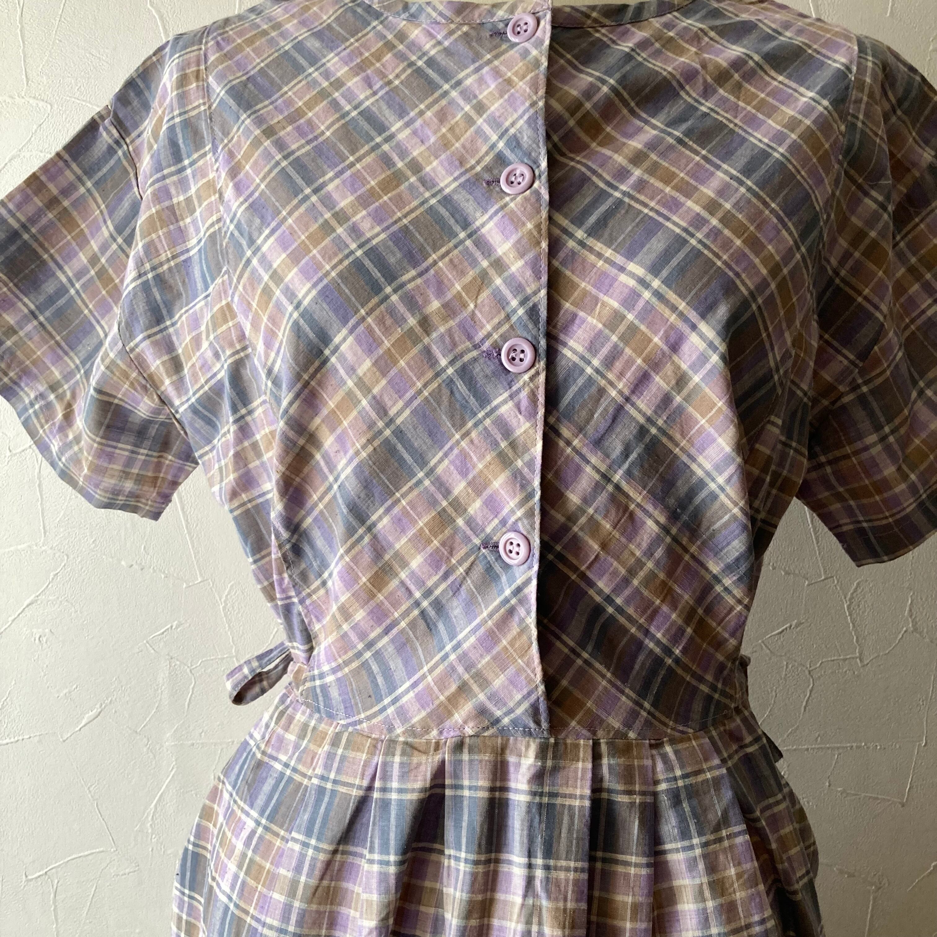 パープルチェックコットンワンピース 古着 used vintage レトロ
