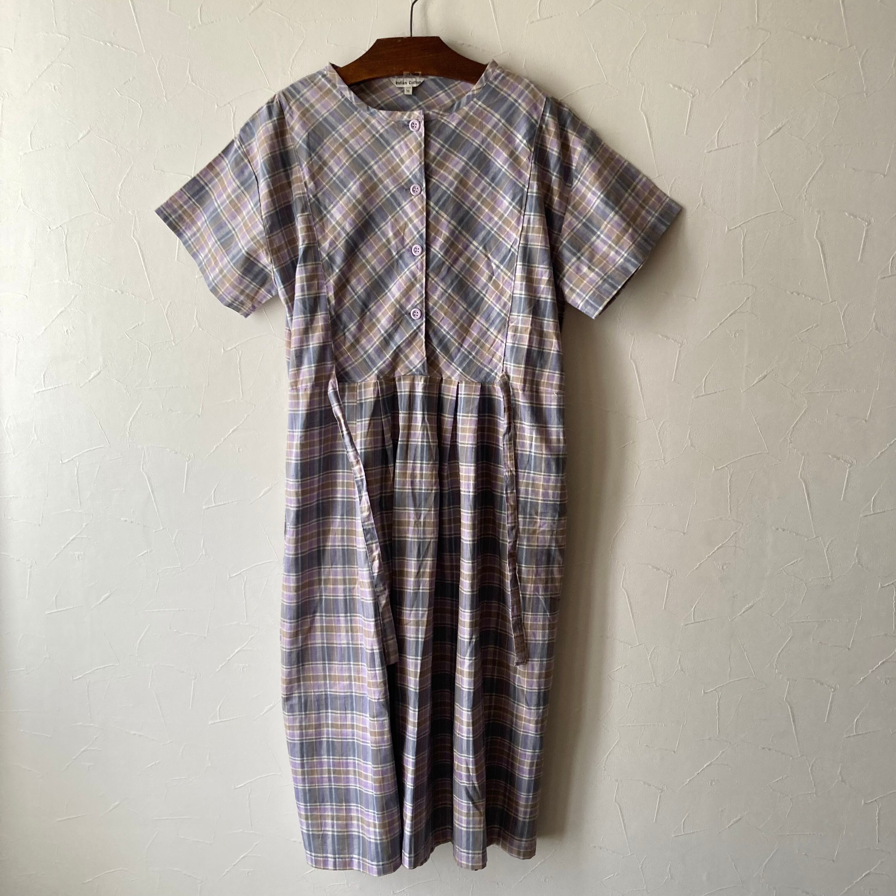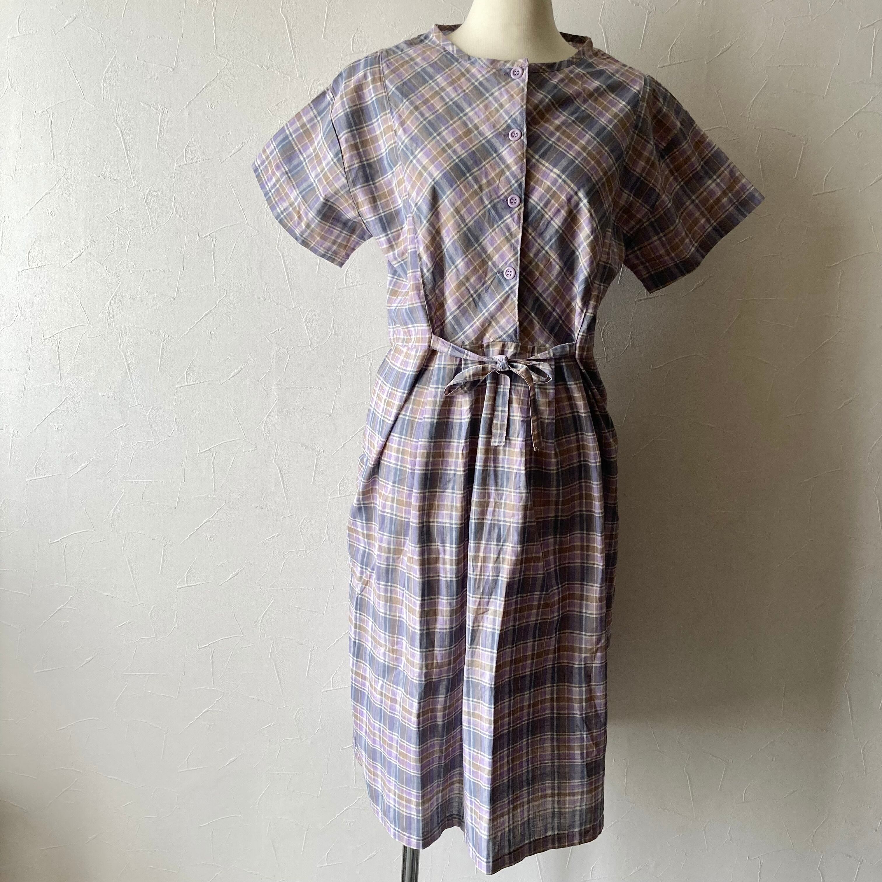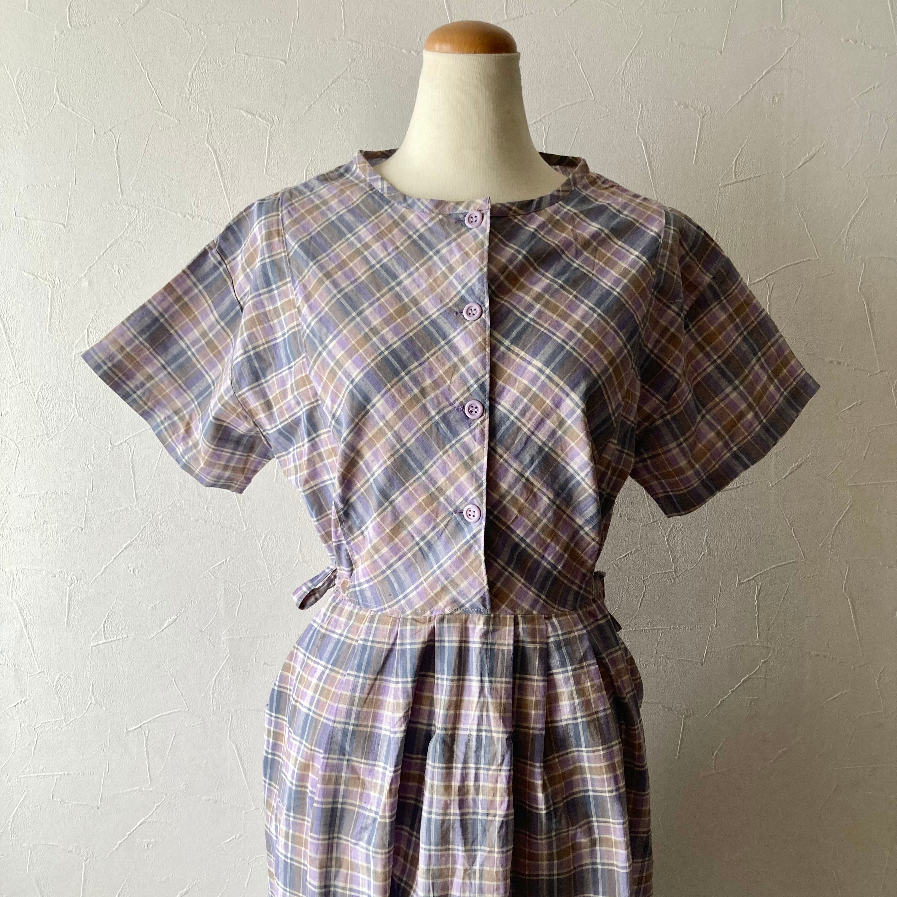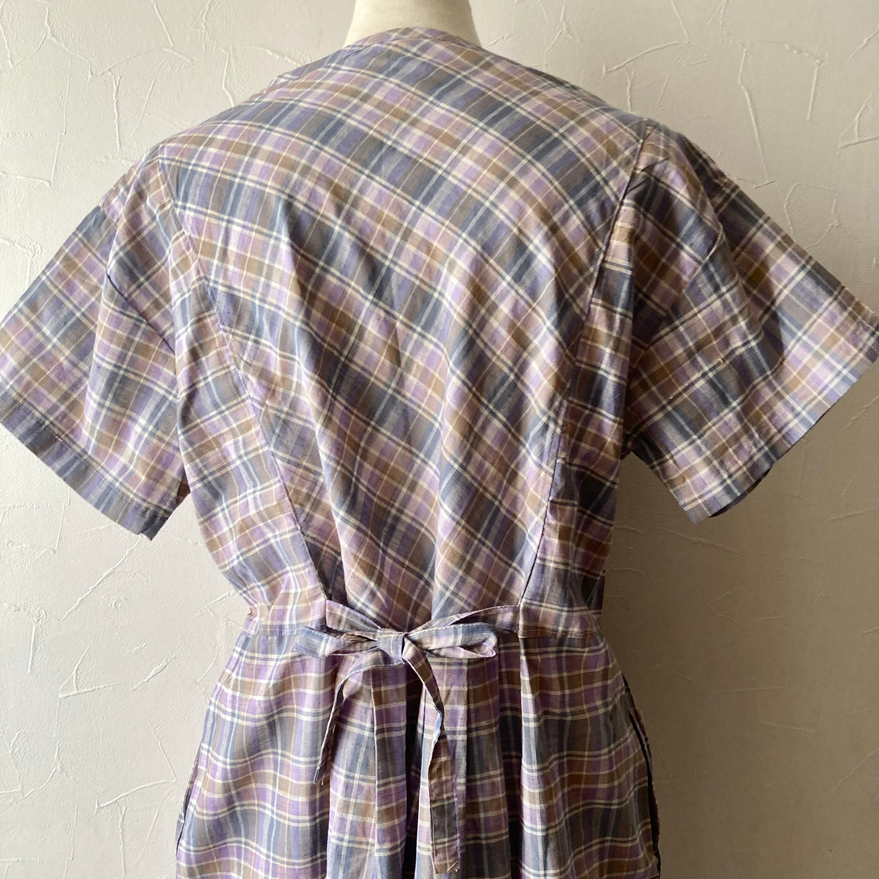 パープルチェックコットンワンピース 古着 used vintage レトロ