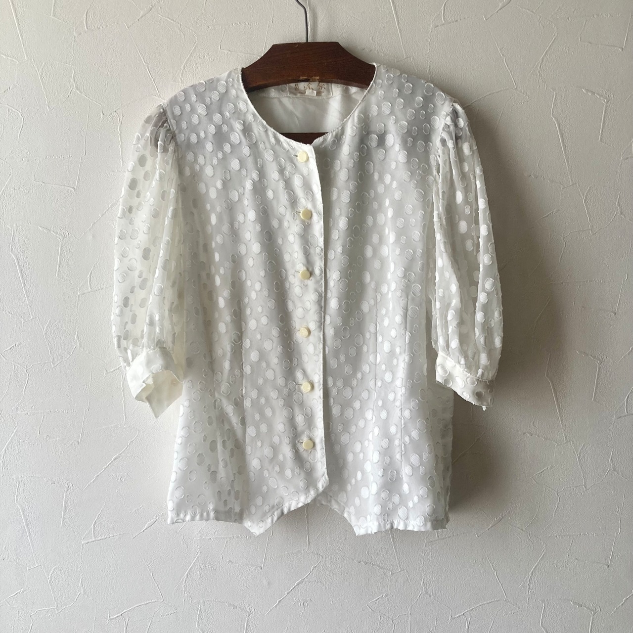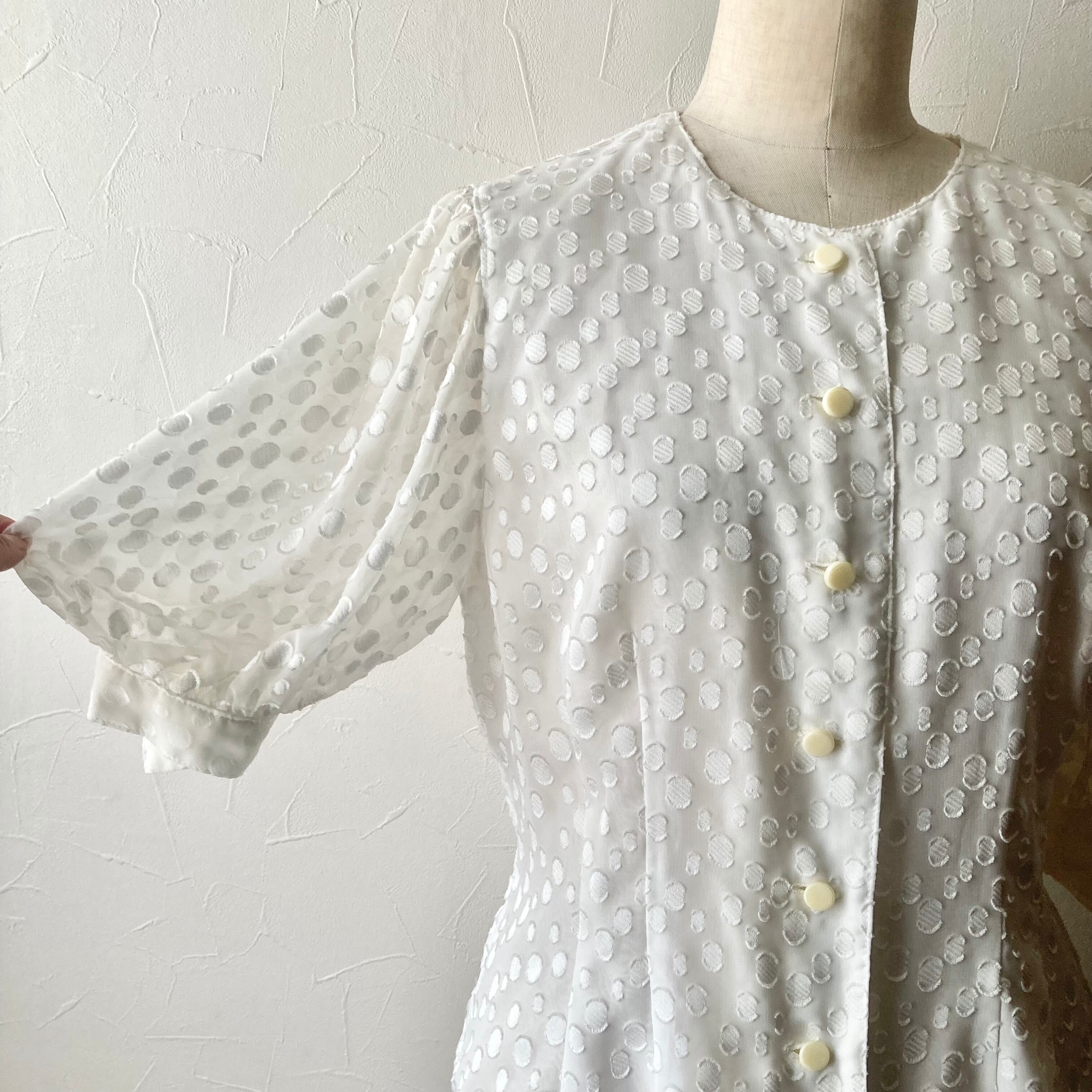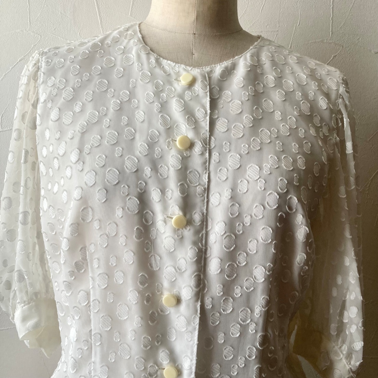 ドット刺繍ホワイトブラウス 古着 used vintage レトロ