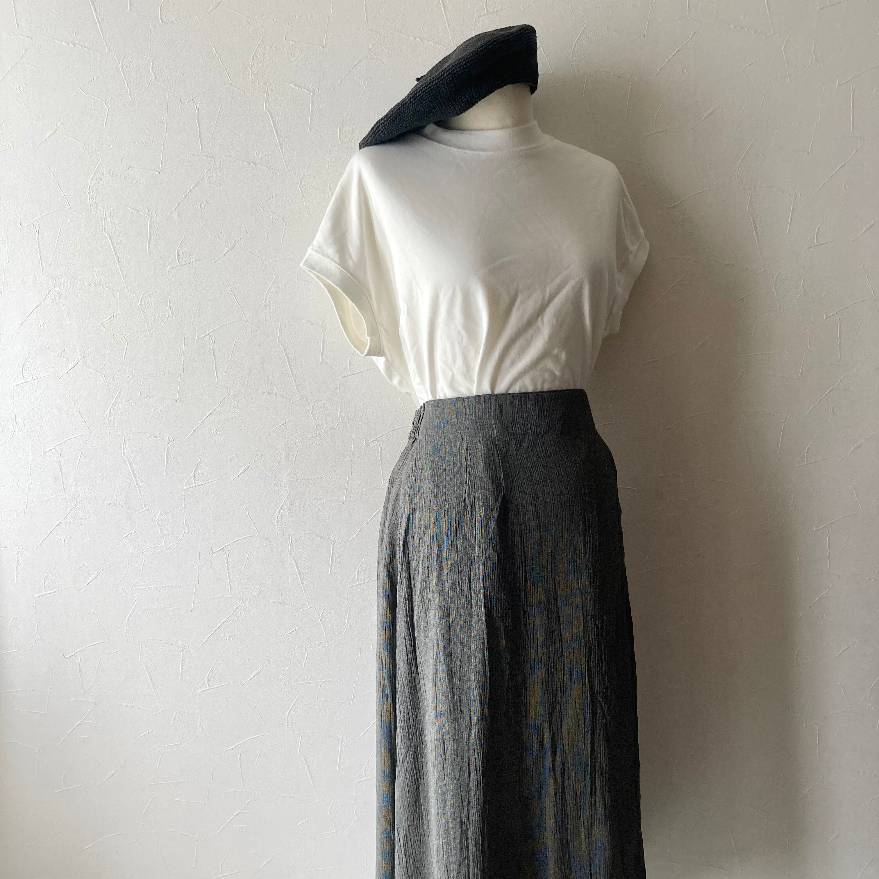 さらっとしたした涼しげな素材のラップロングスカート◯シンプルかつお洒落なデザインと落ち着いた色味で合わせやすい一着だと思います。