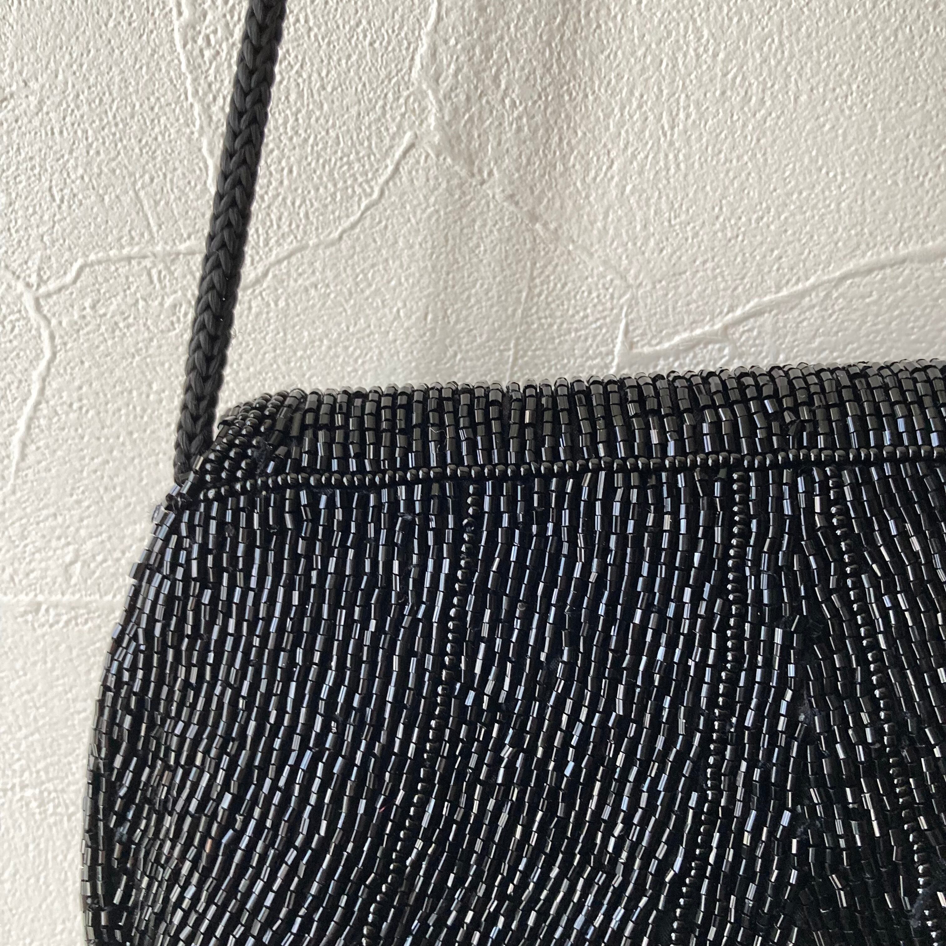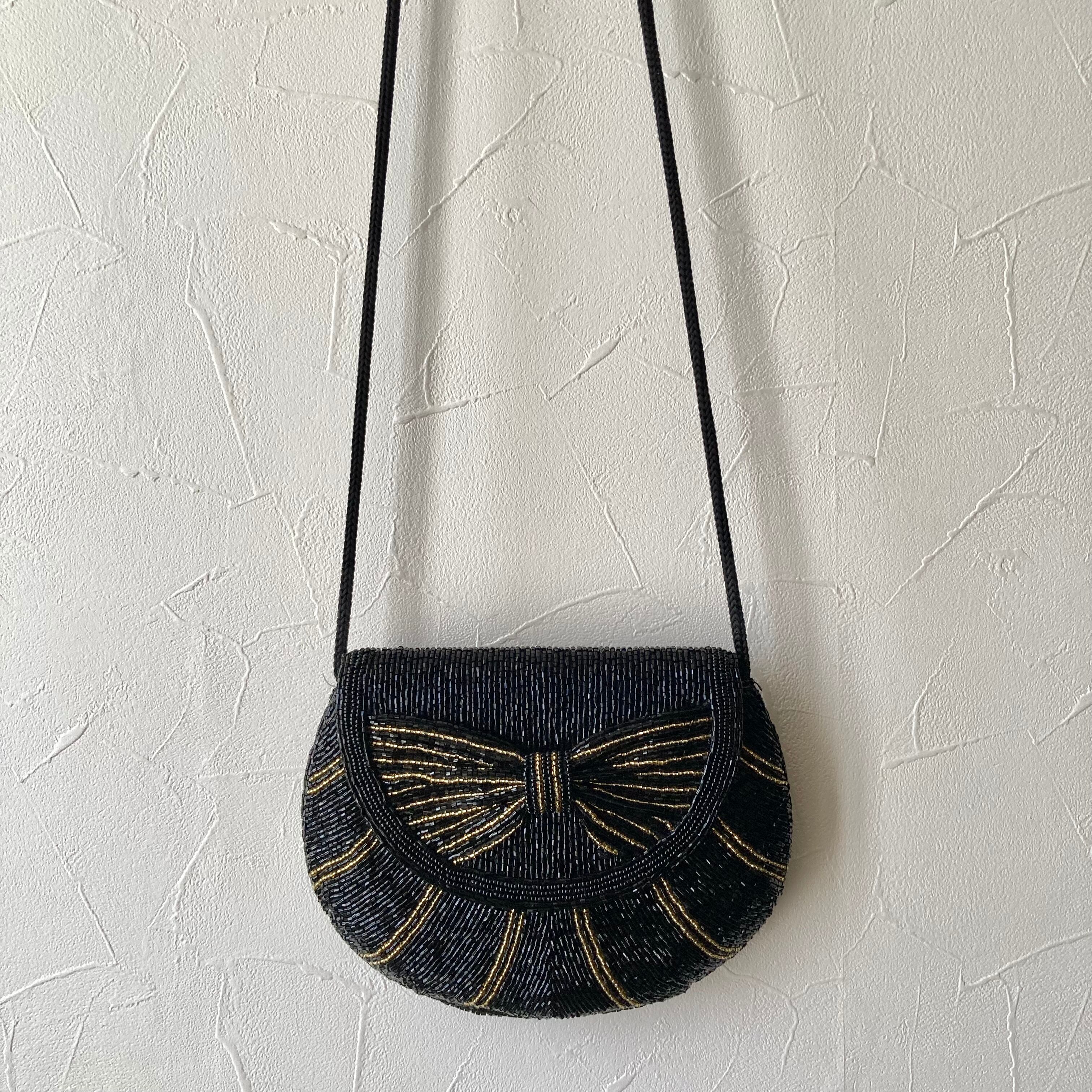 大人っぽい黒×ゴールドのビーズですがリボンの装飾によって可愛さもプラスされた華やかなレトロなバッグです。