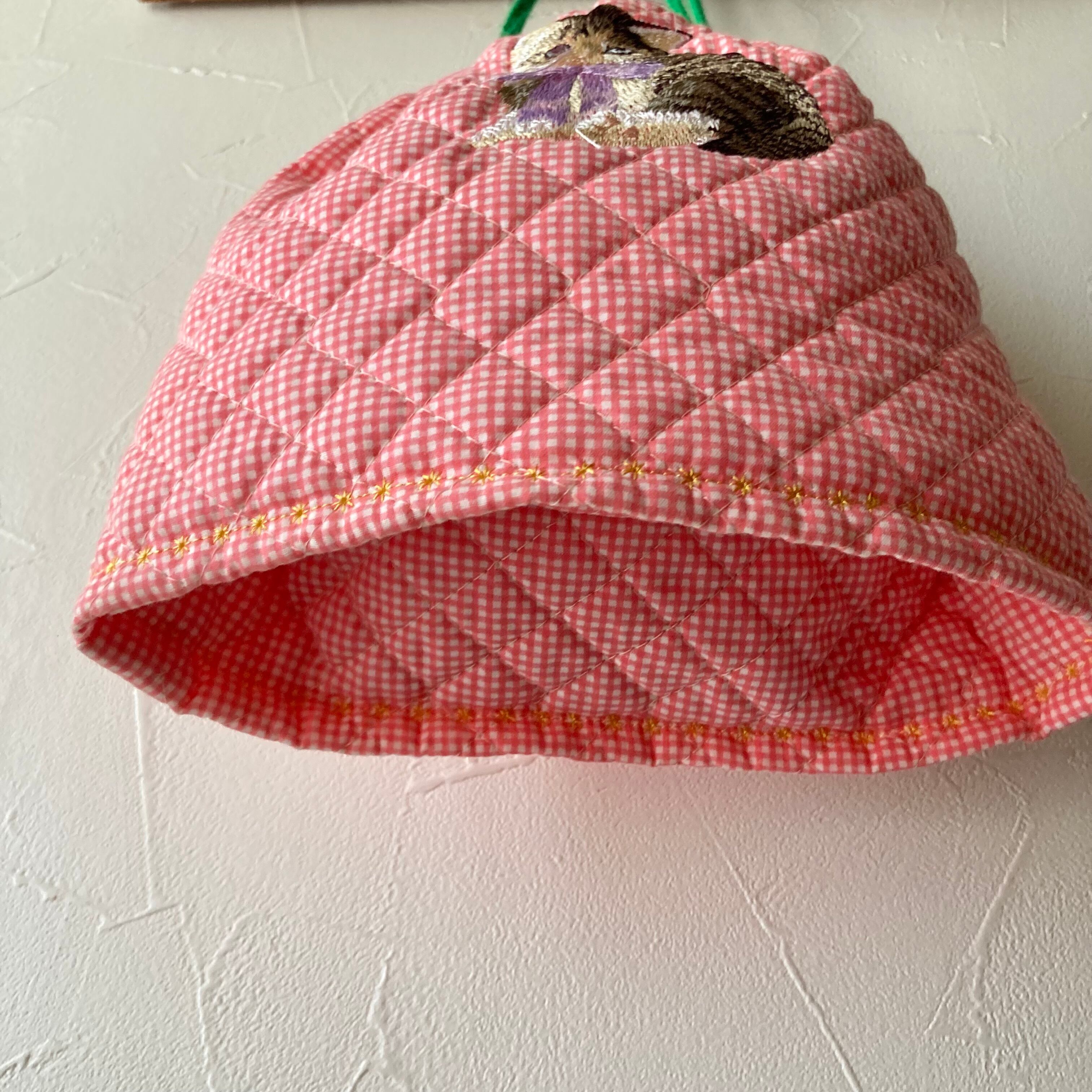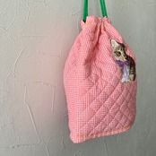 アンニュイな猫ちゃん刺繍が可愛いハンドメイドの巾着バッグ。