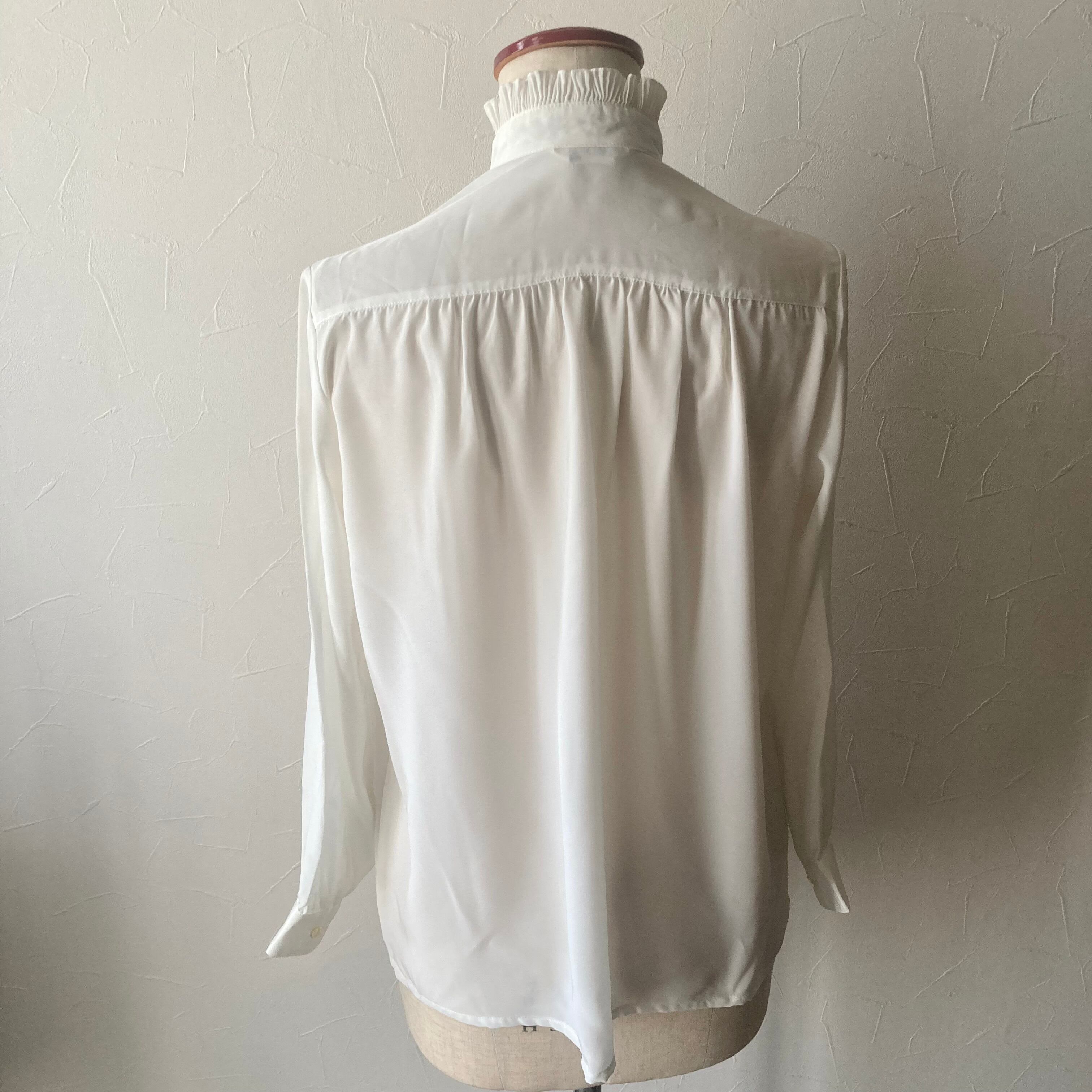 プリーツ装飾ホワイトブラウス 古着 used vintage レトロ