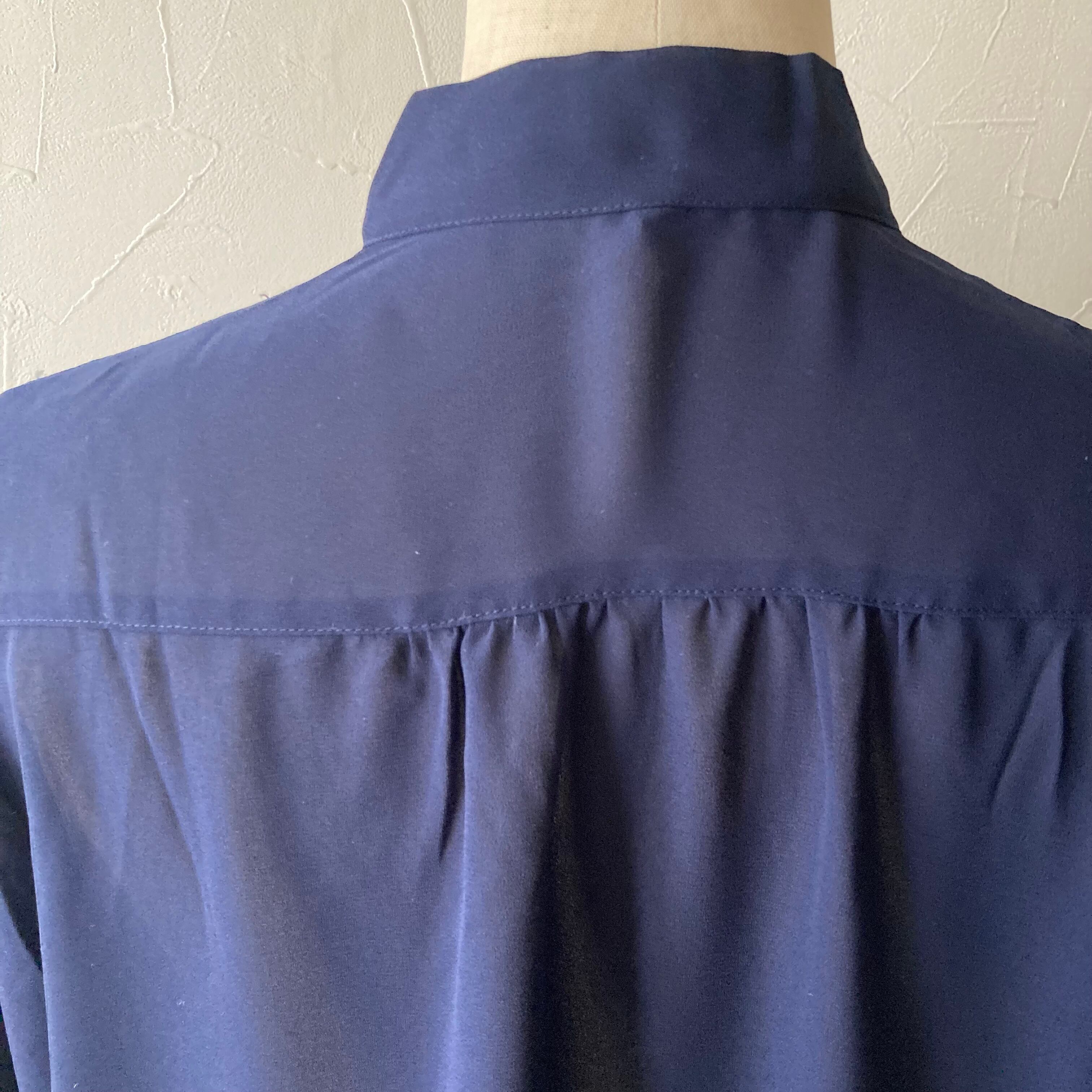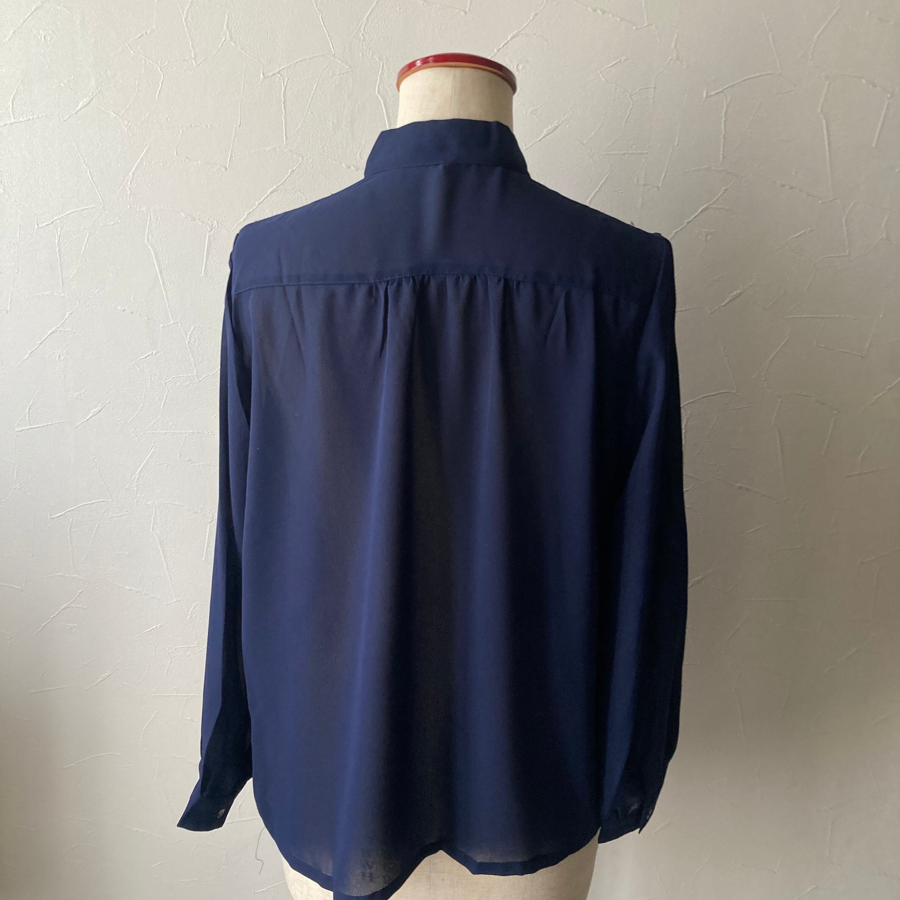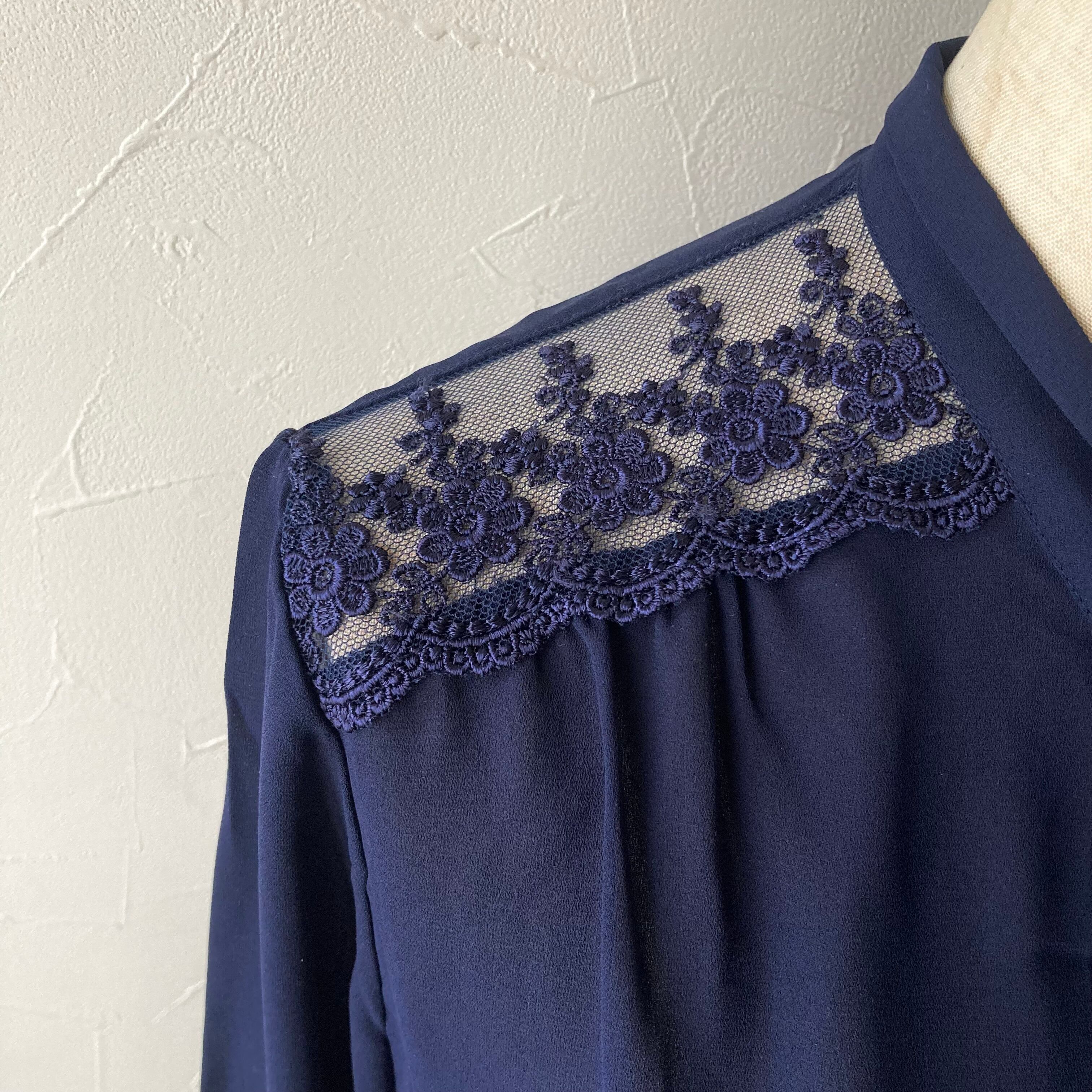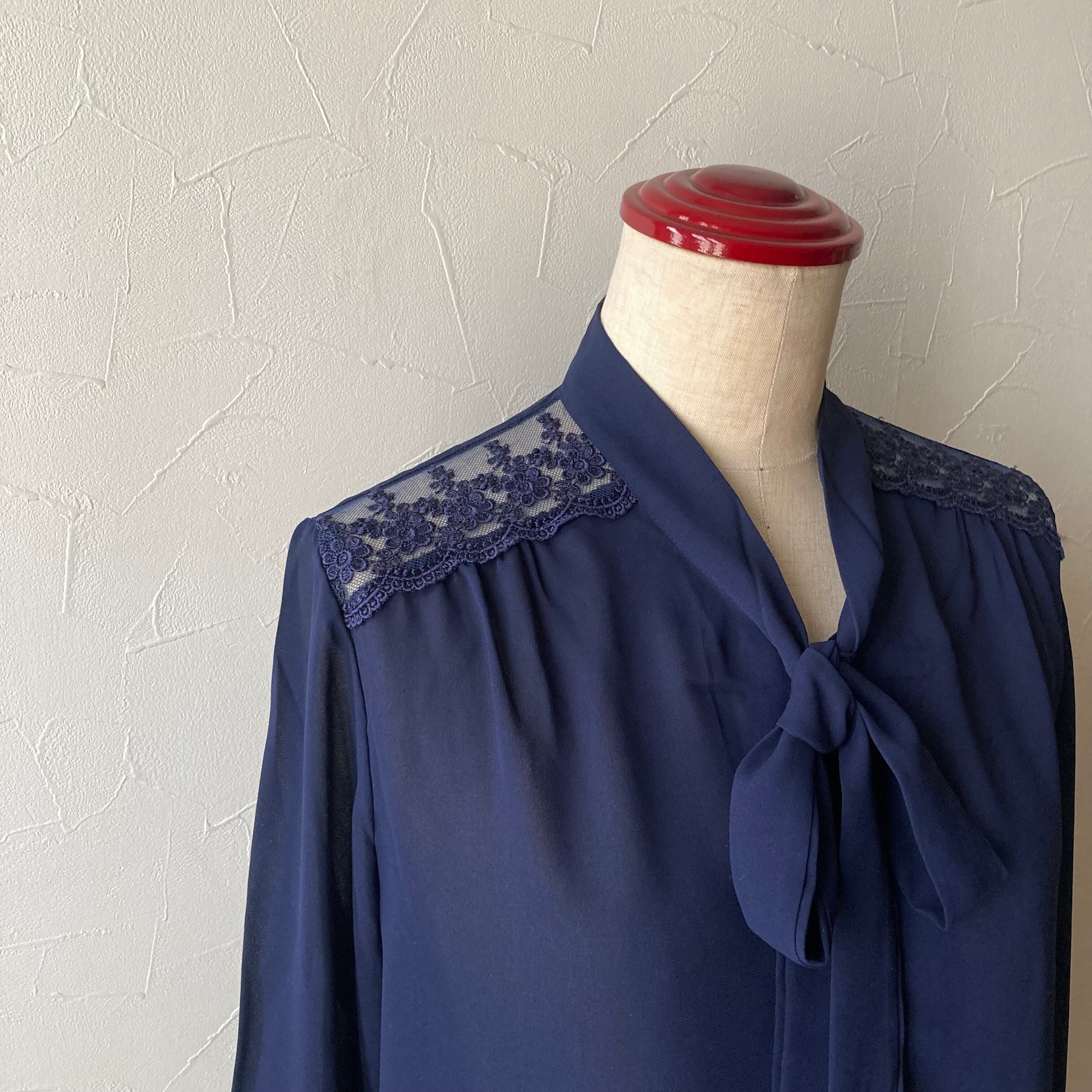 ネイビー肩レースリボンブラウス 古着 used vintage レトロ