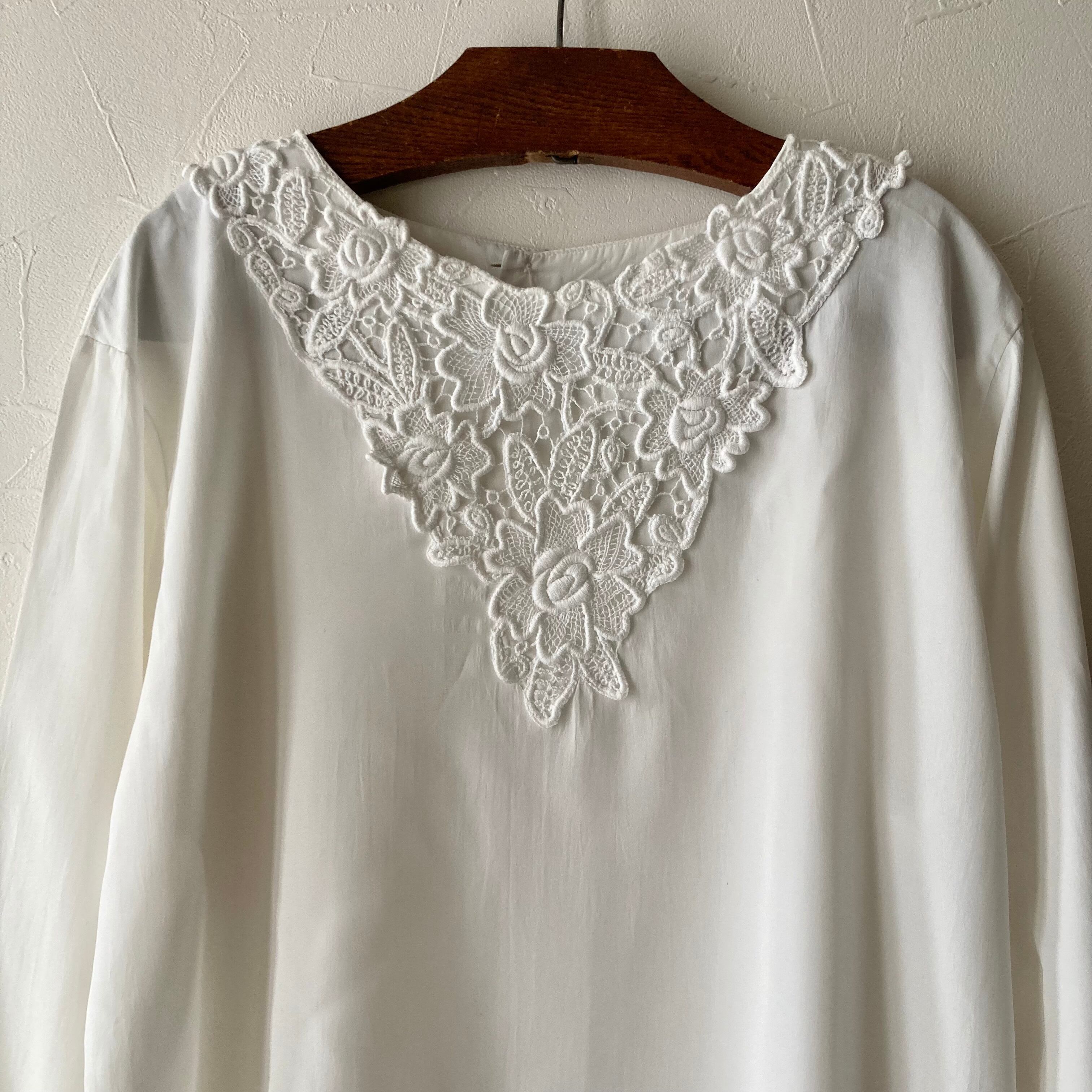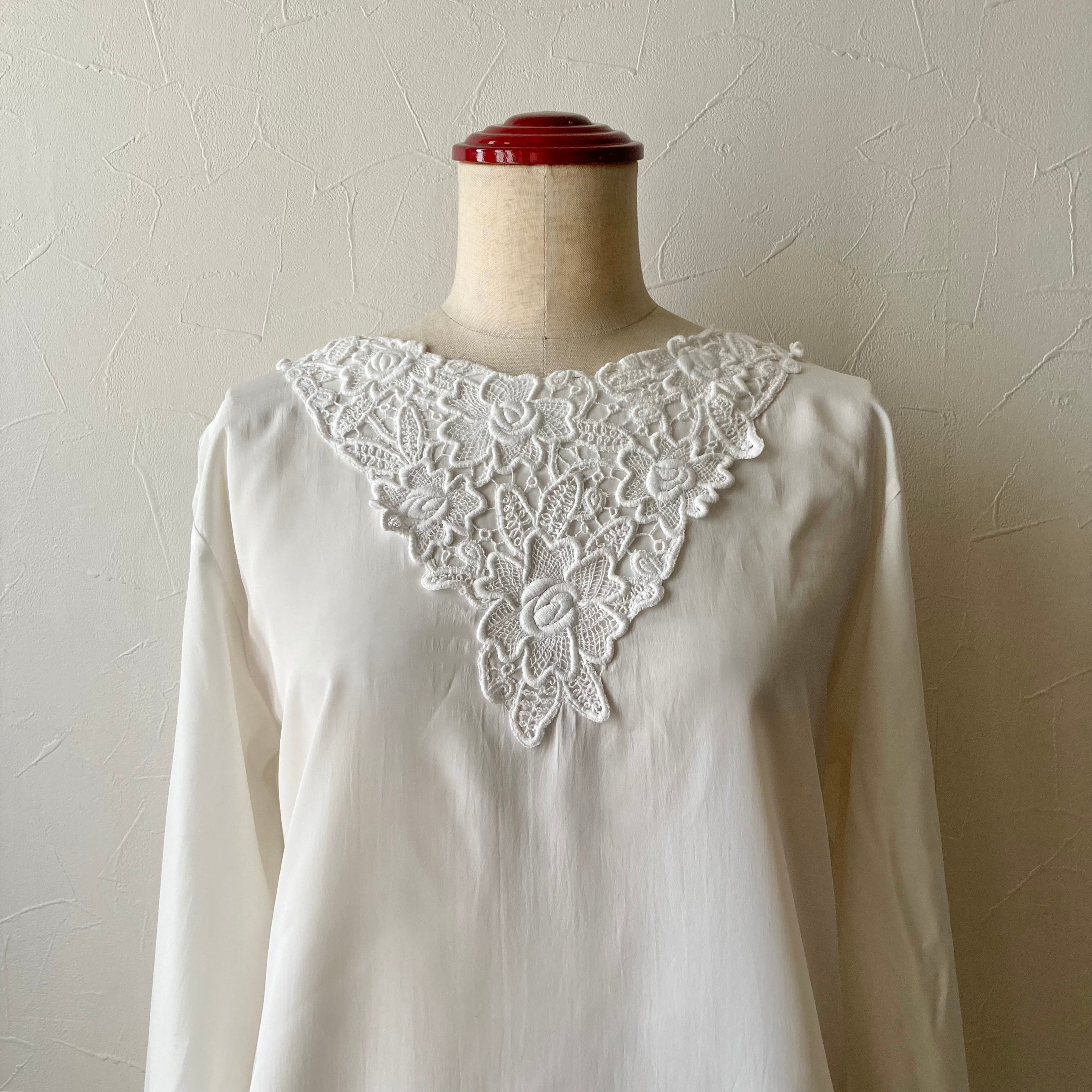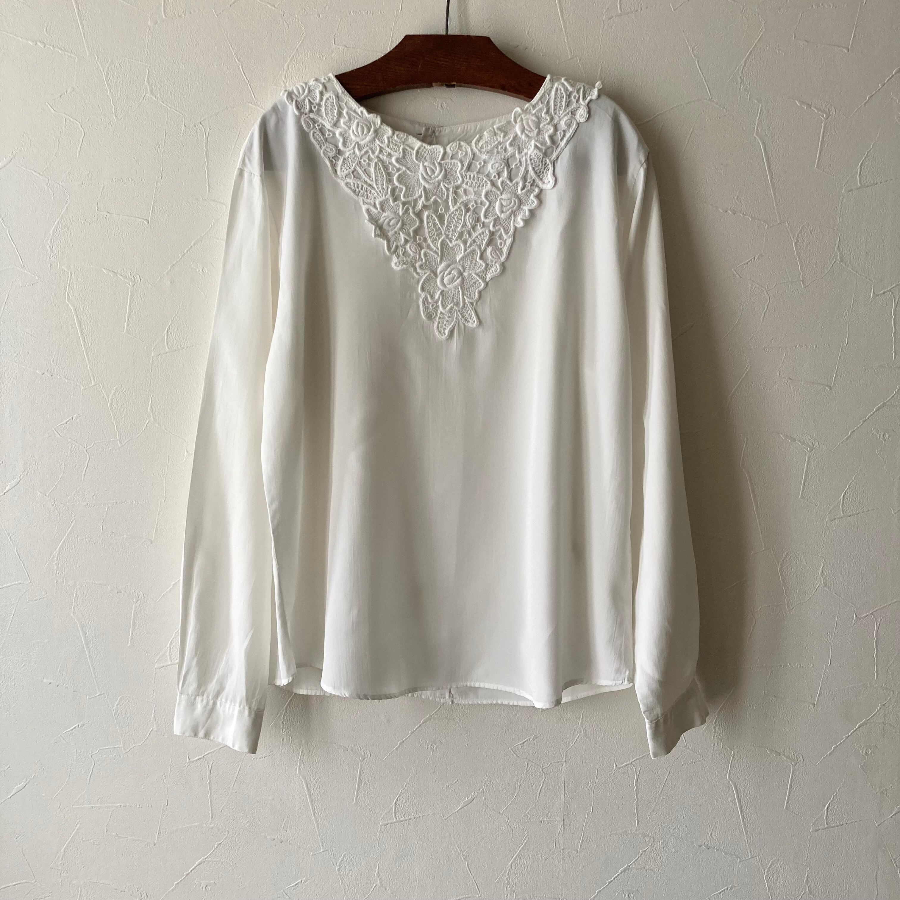 花刺繍レース装飾ブラウス 古着 used vintage レトロ