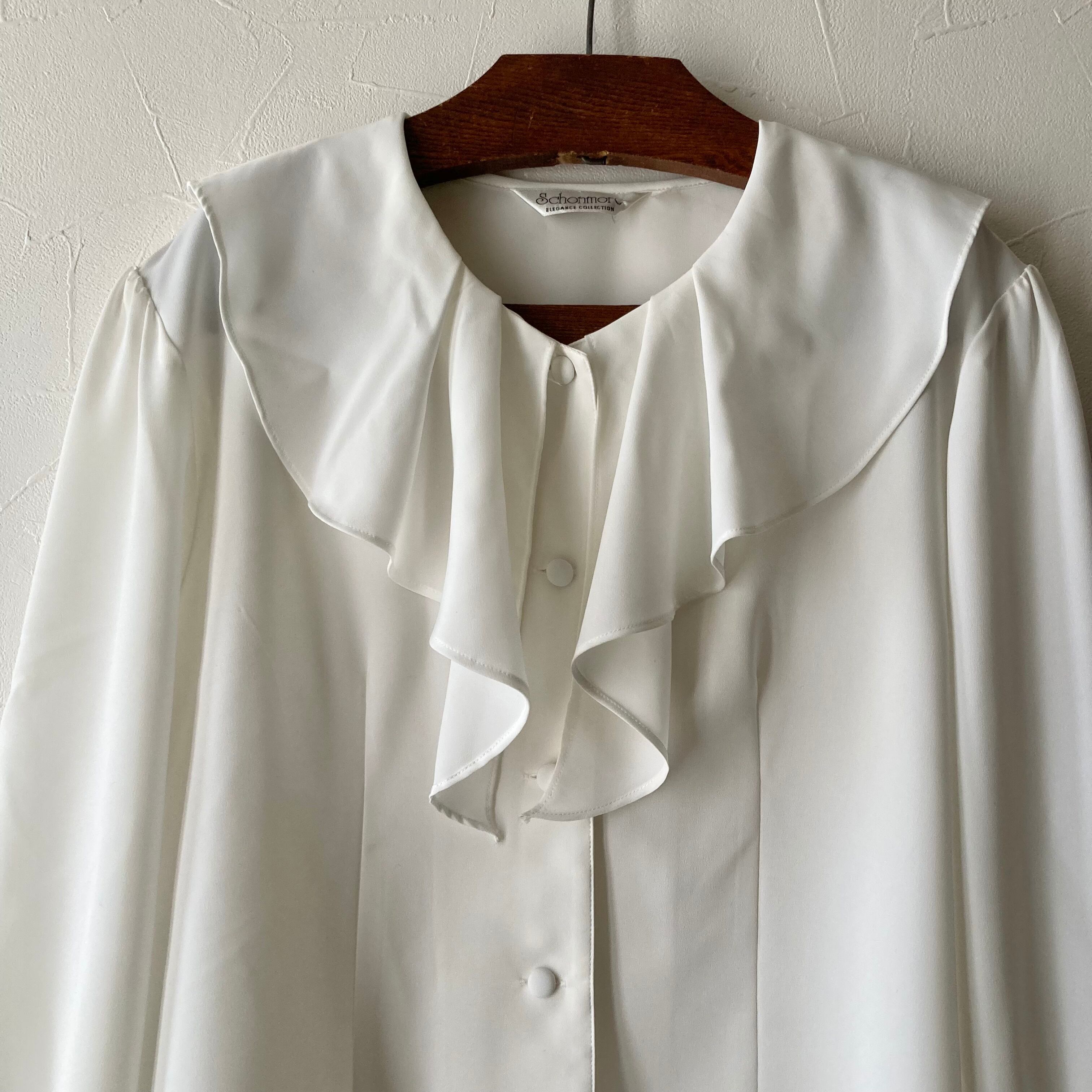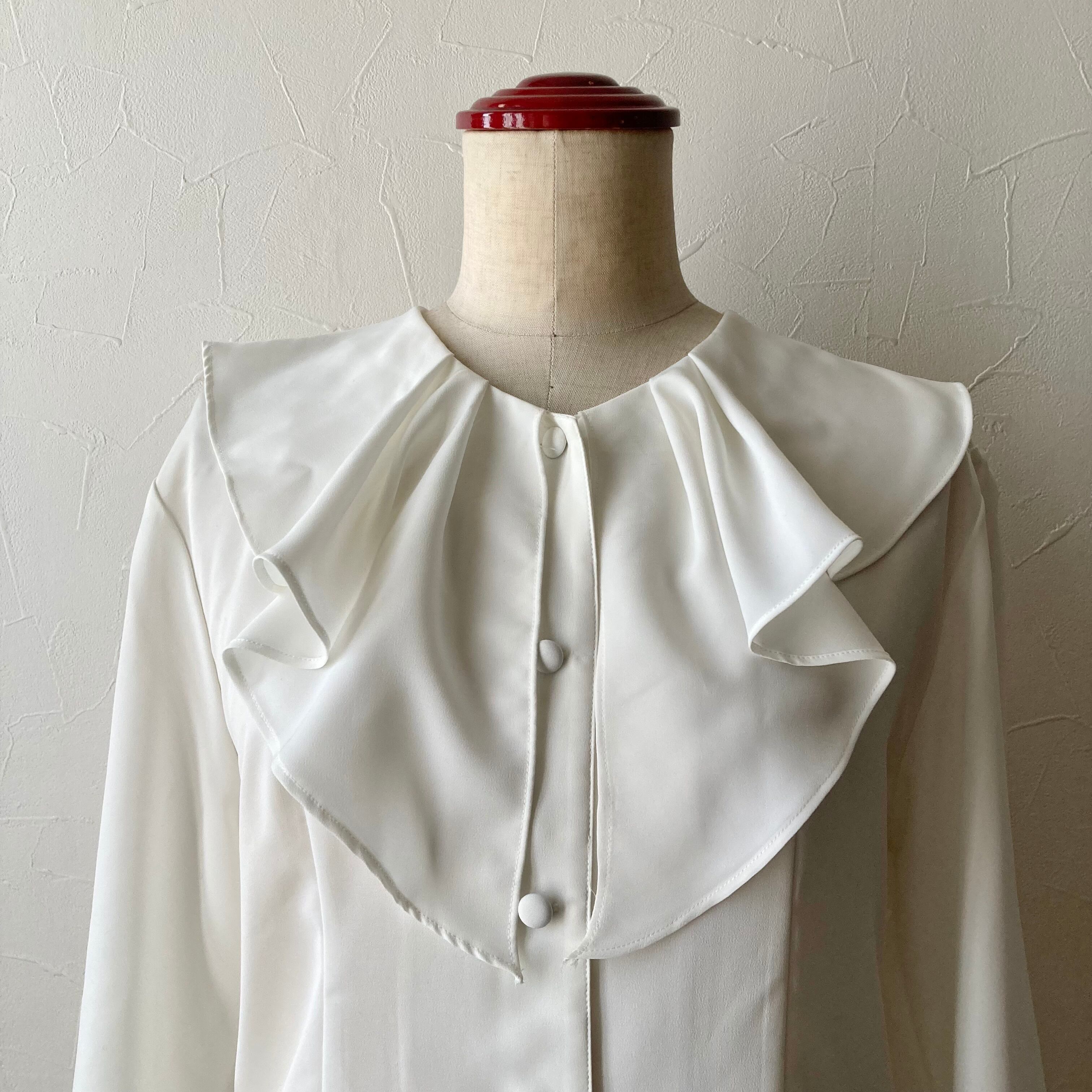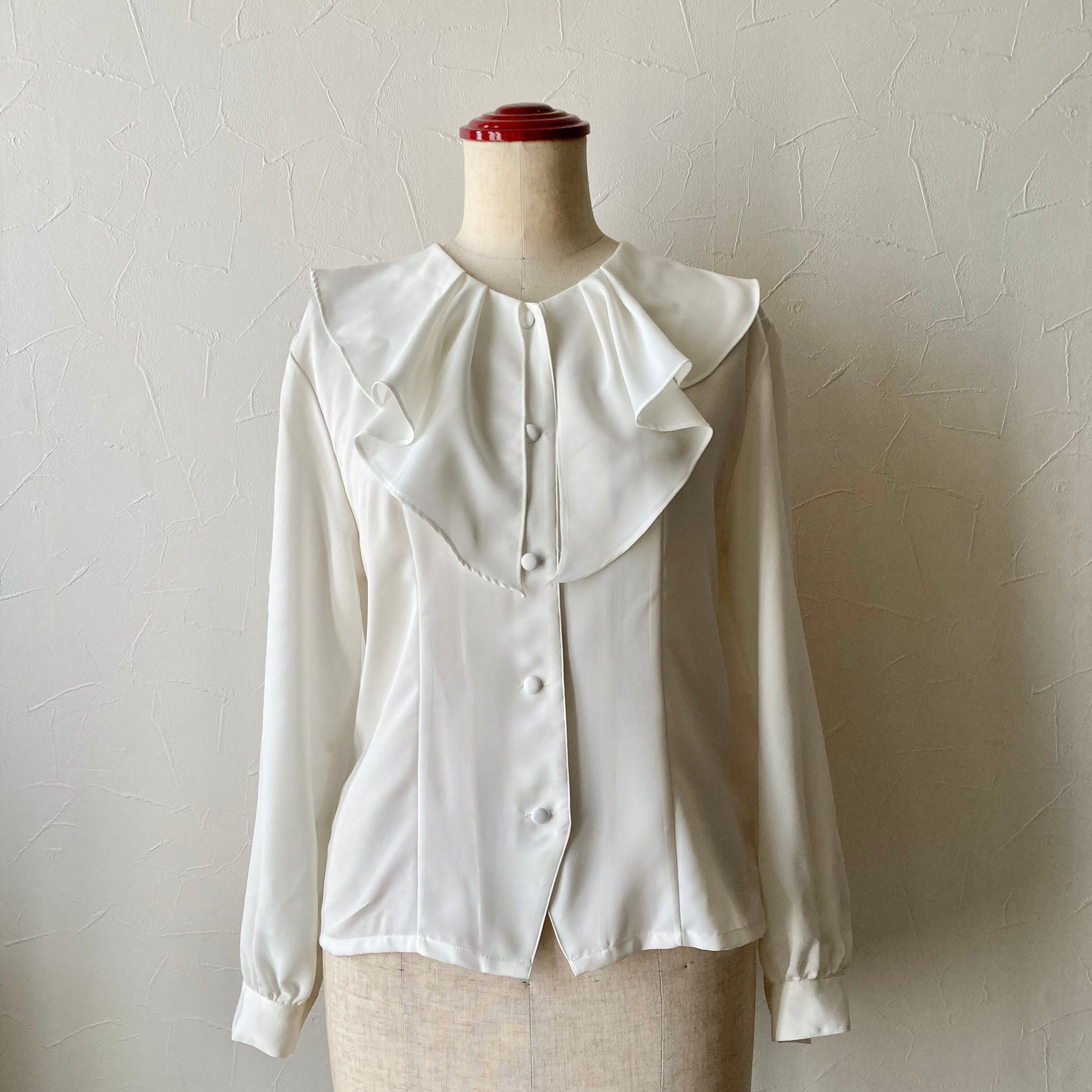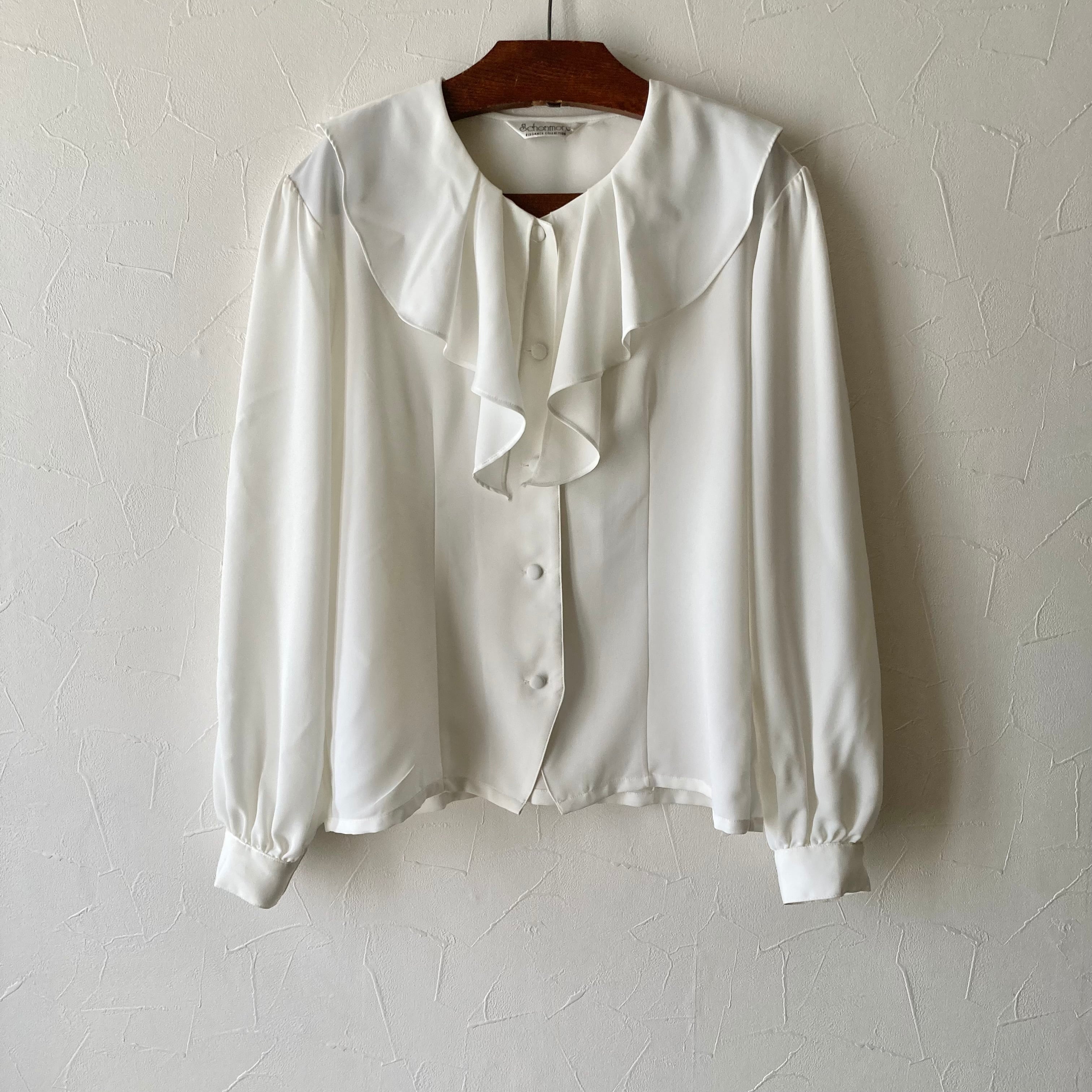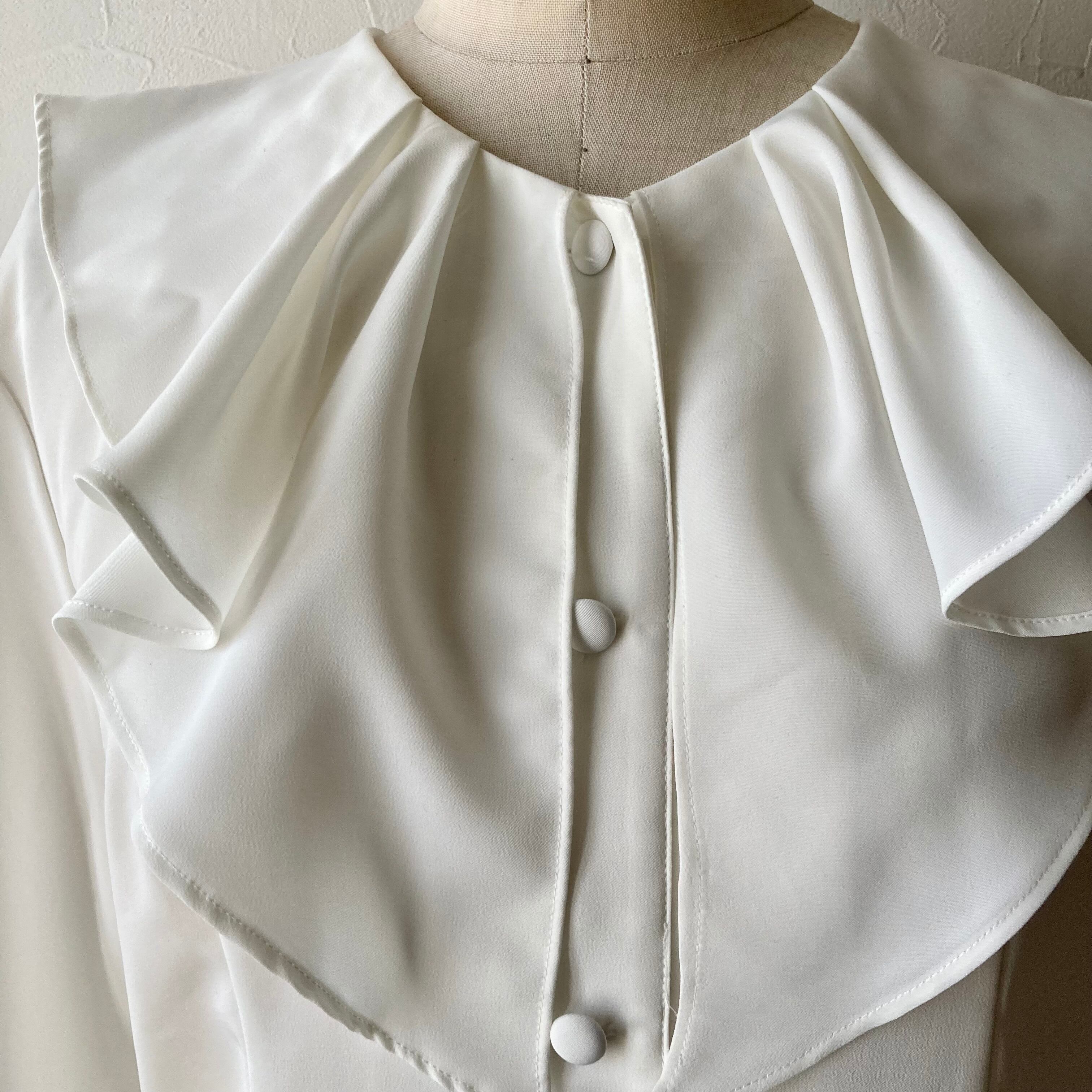 ひらひら襟ホワイトブラウス 古着 used vintage レトロ