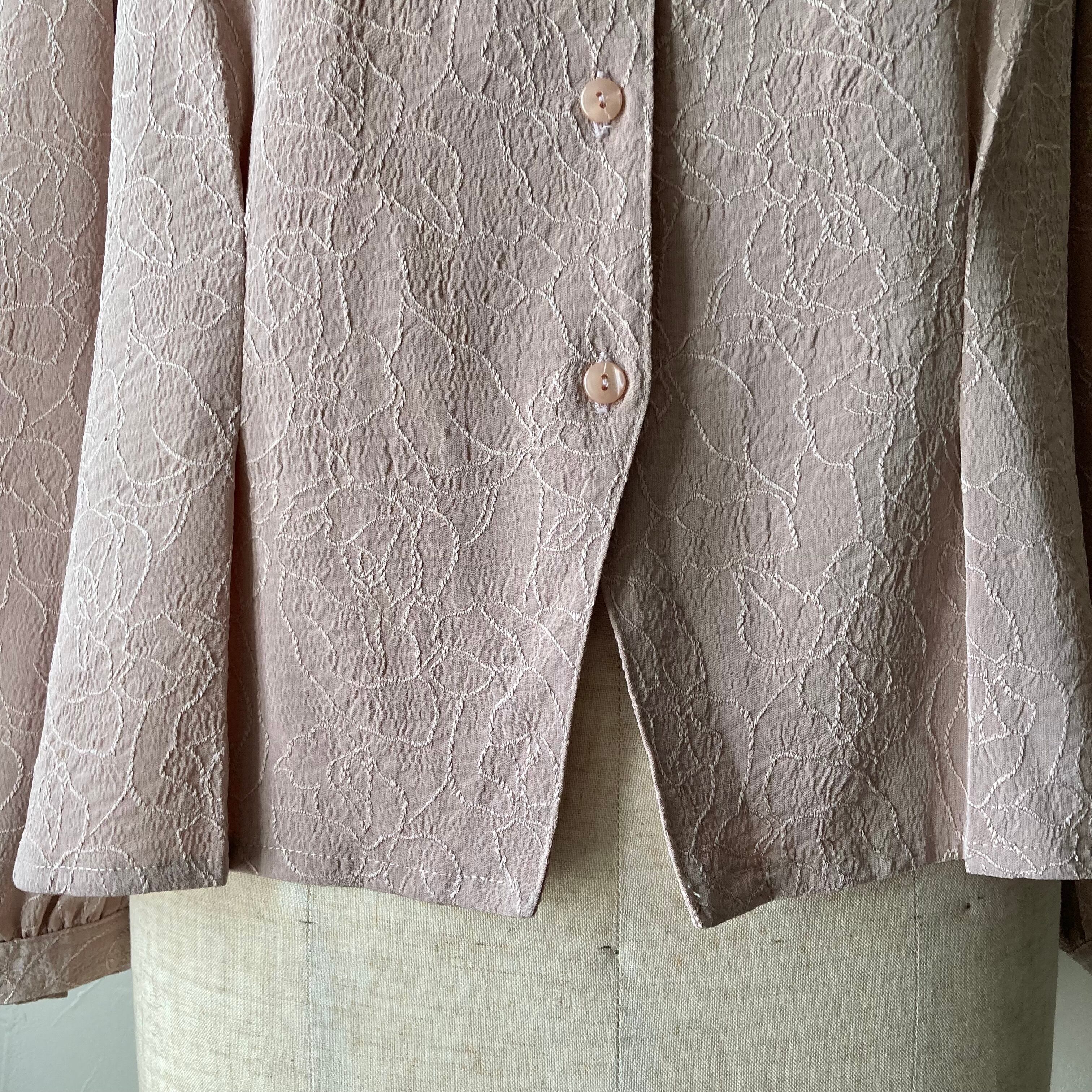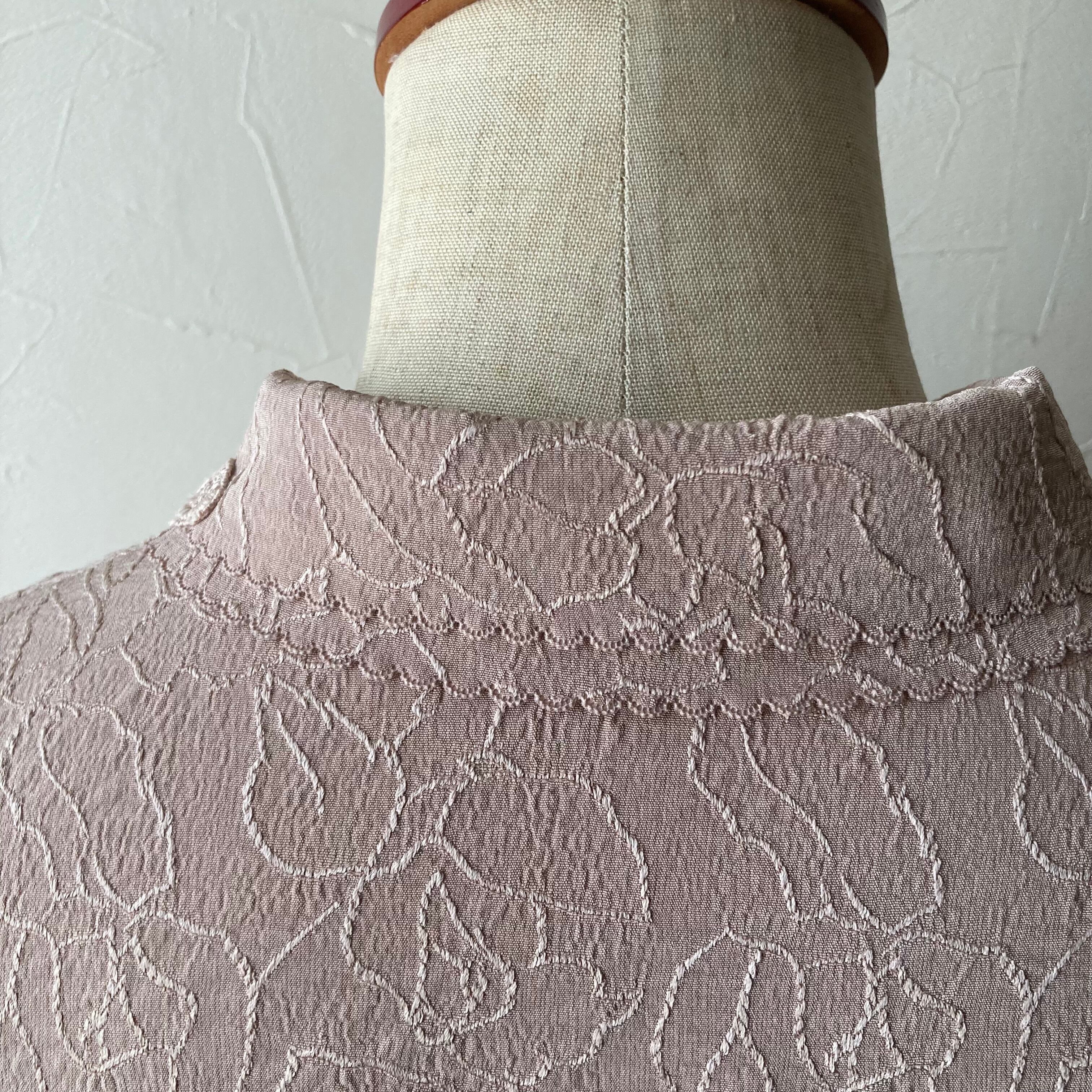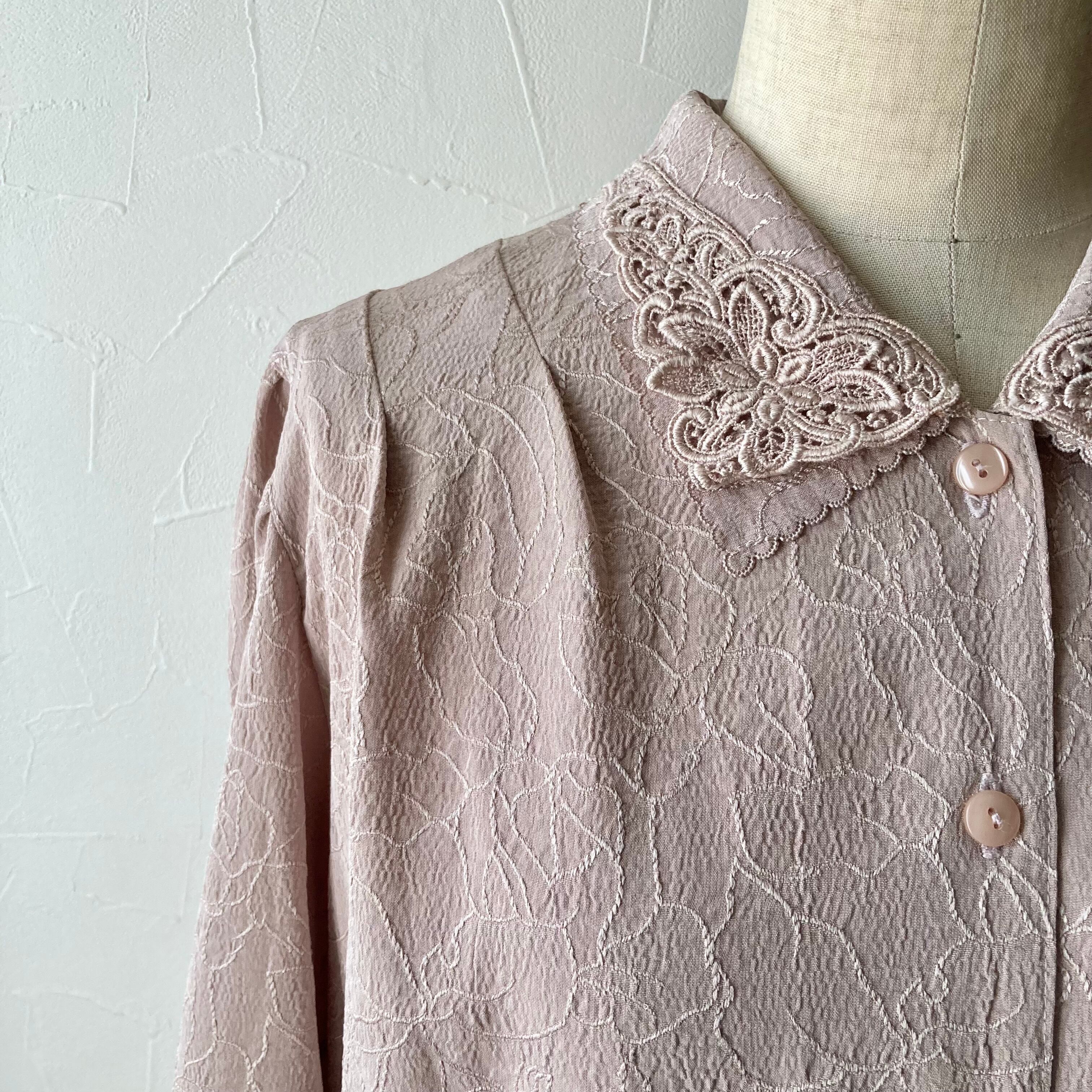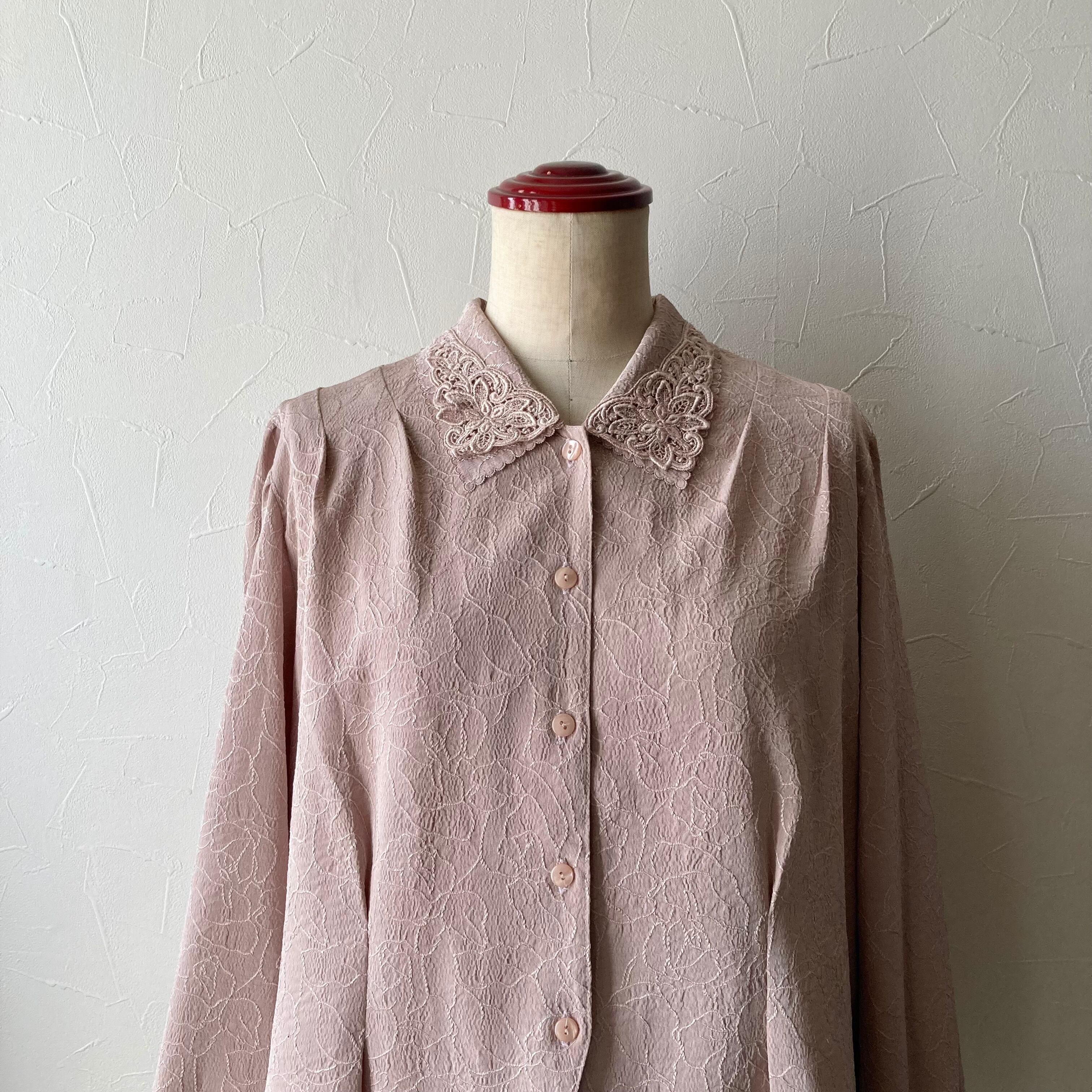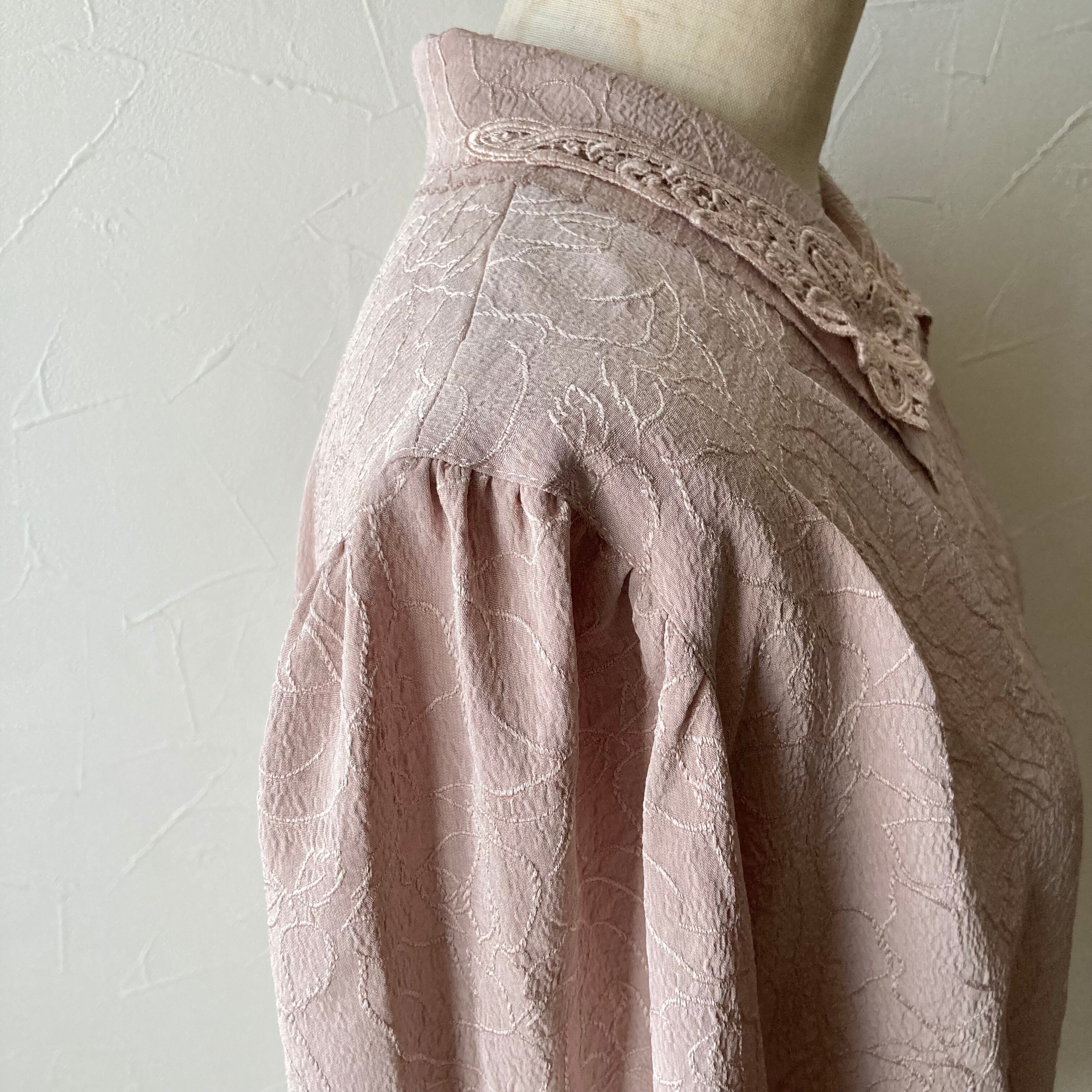 くすんだ色味とレース二重襟、肩にはギャザーが沢山入った可愛いシルエットのレトロブラウスです。