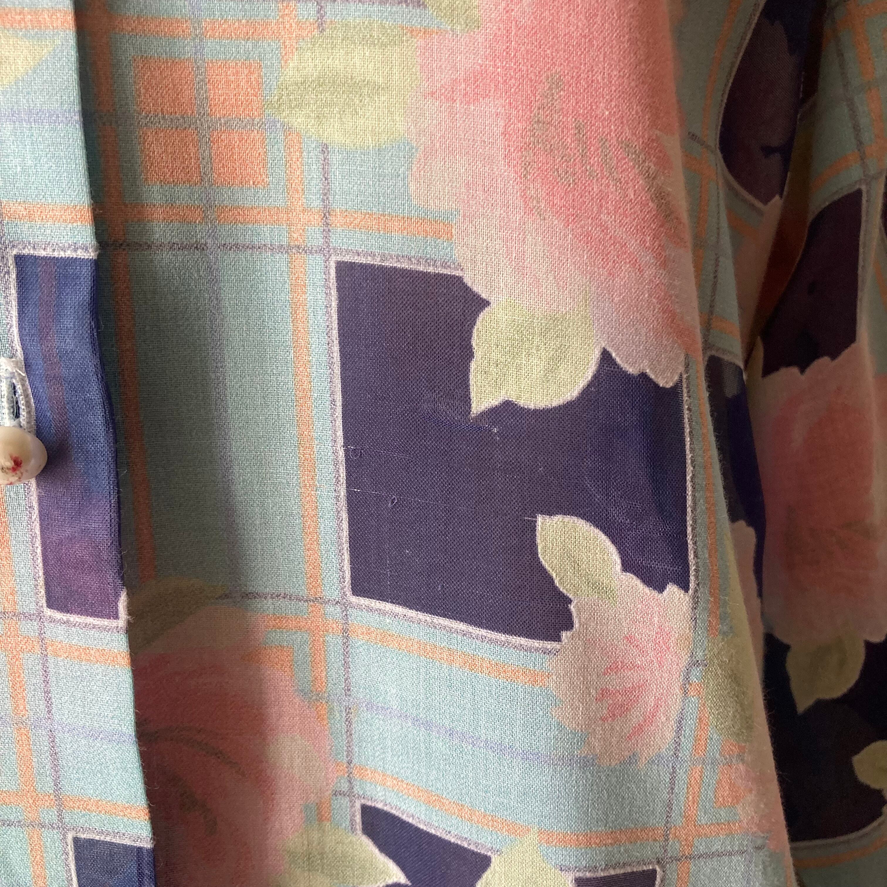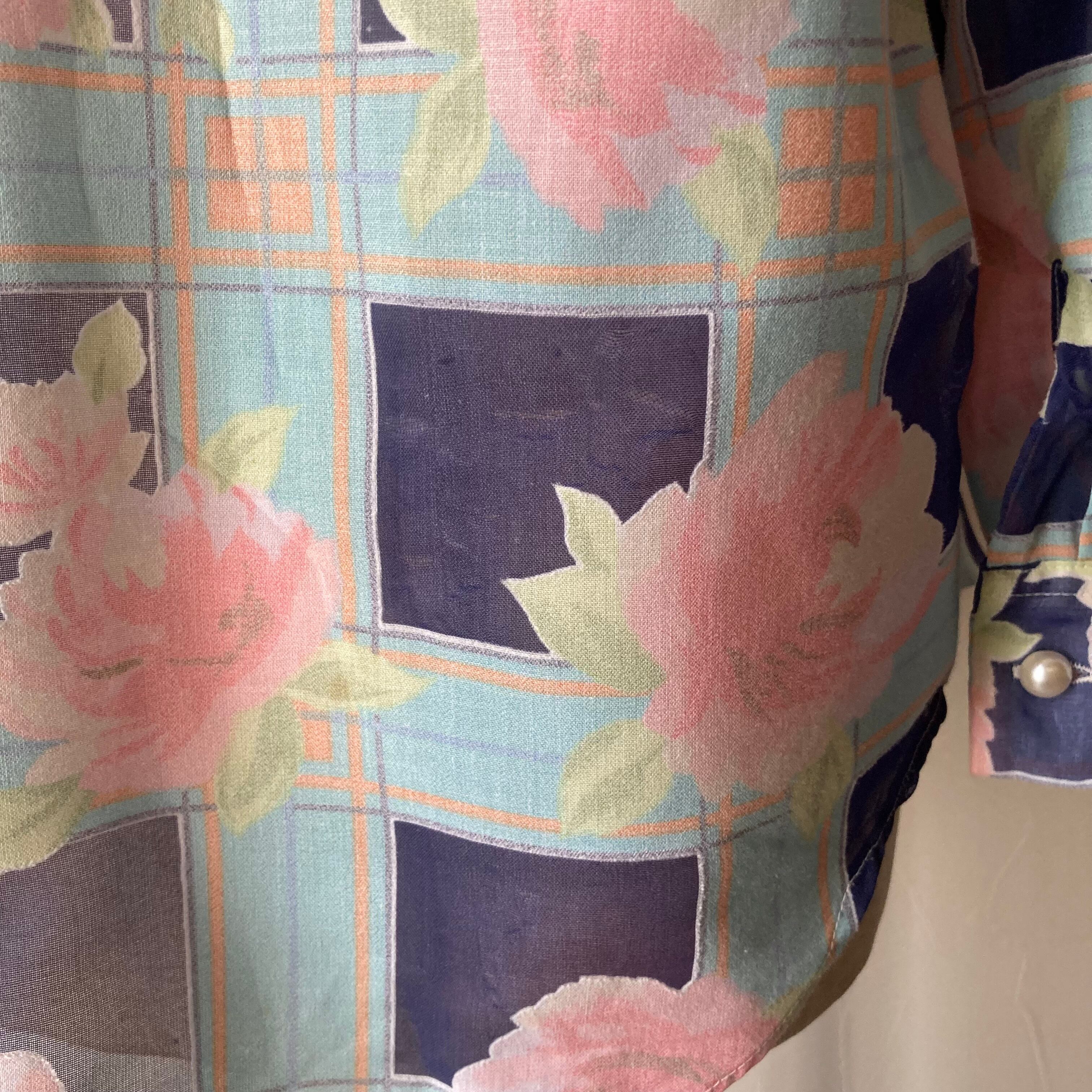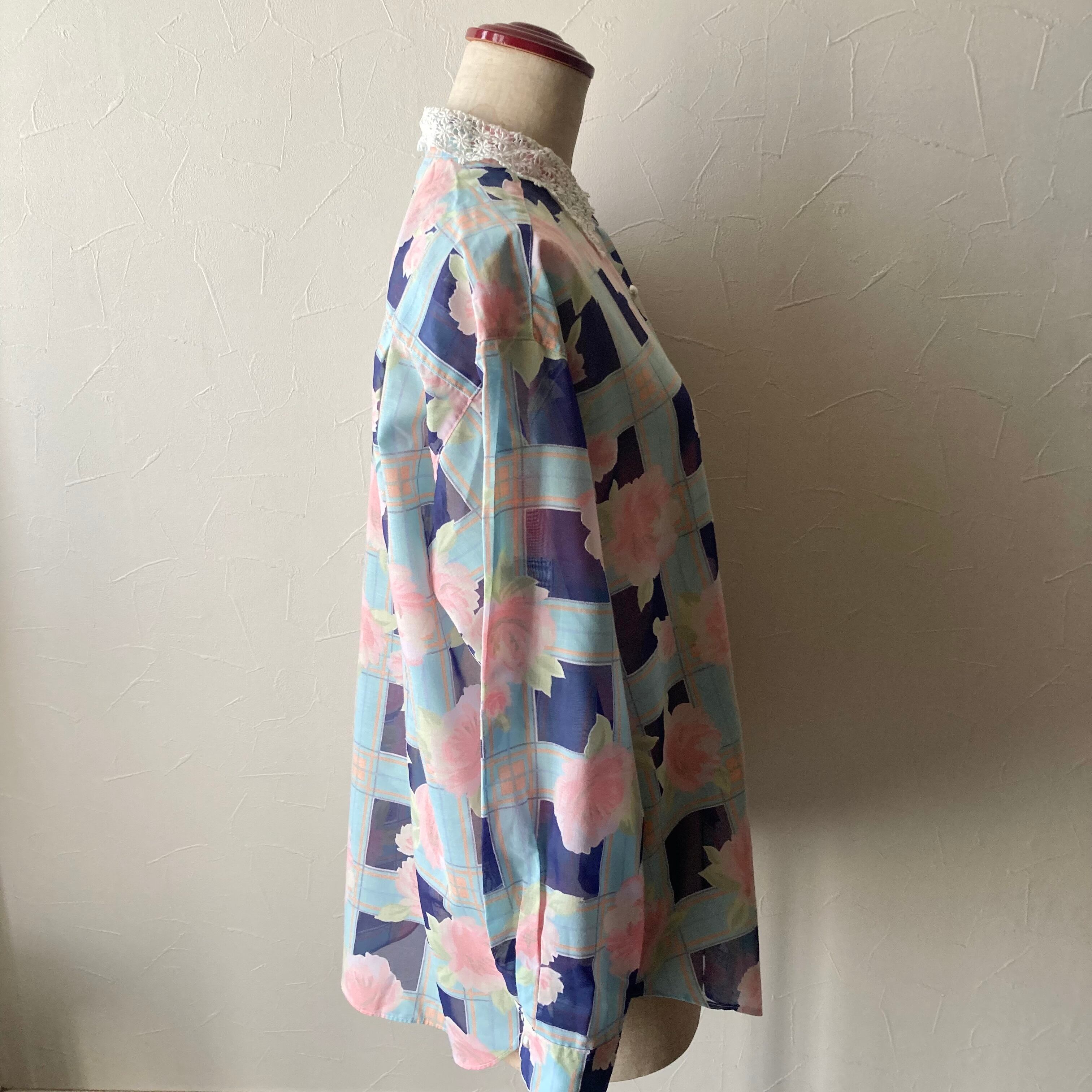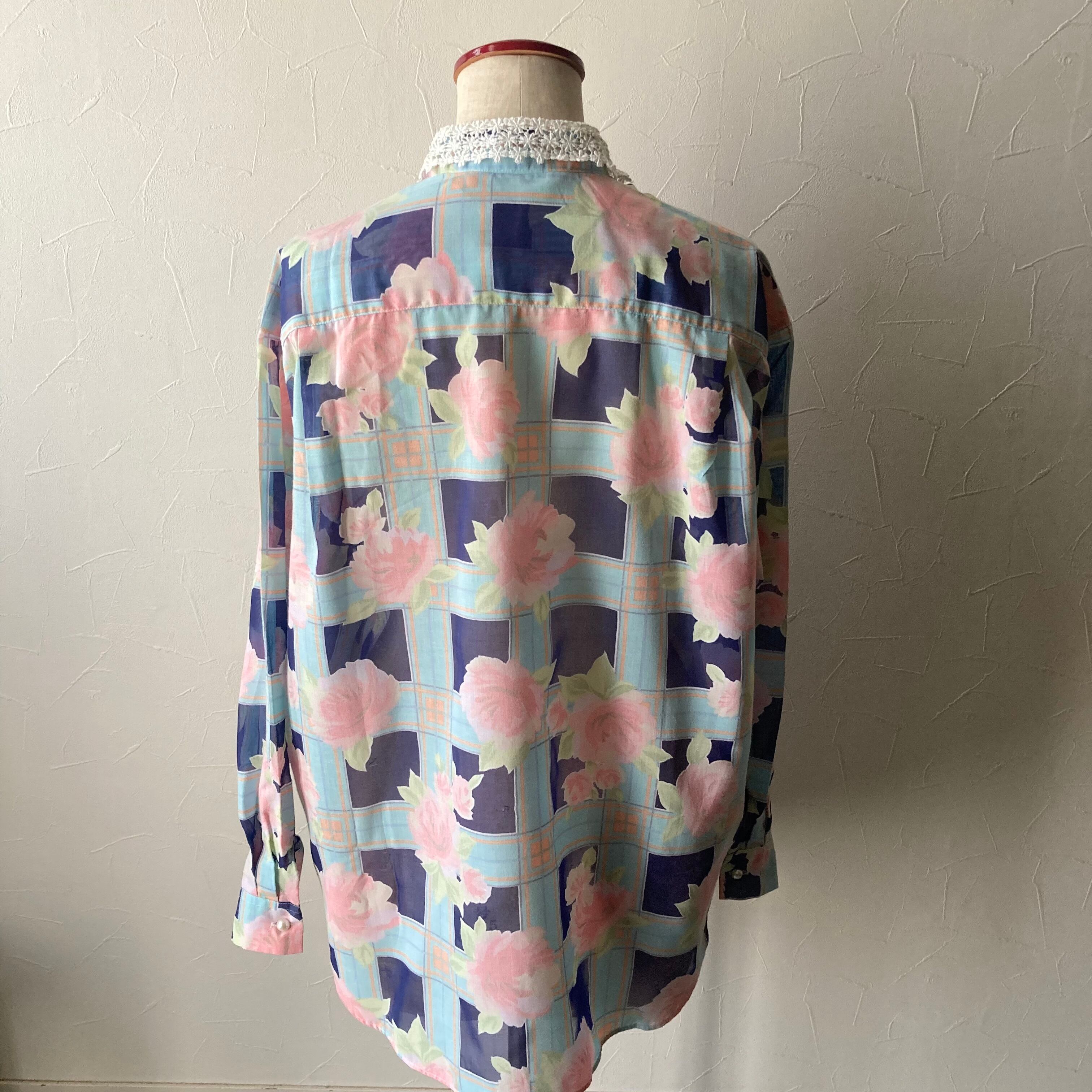 花レース襟コットン混柄ブラウス 古着 used vintage レトロ