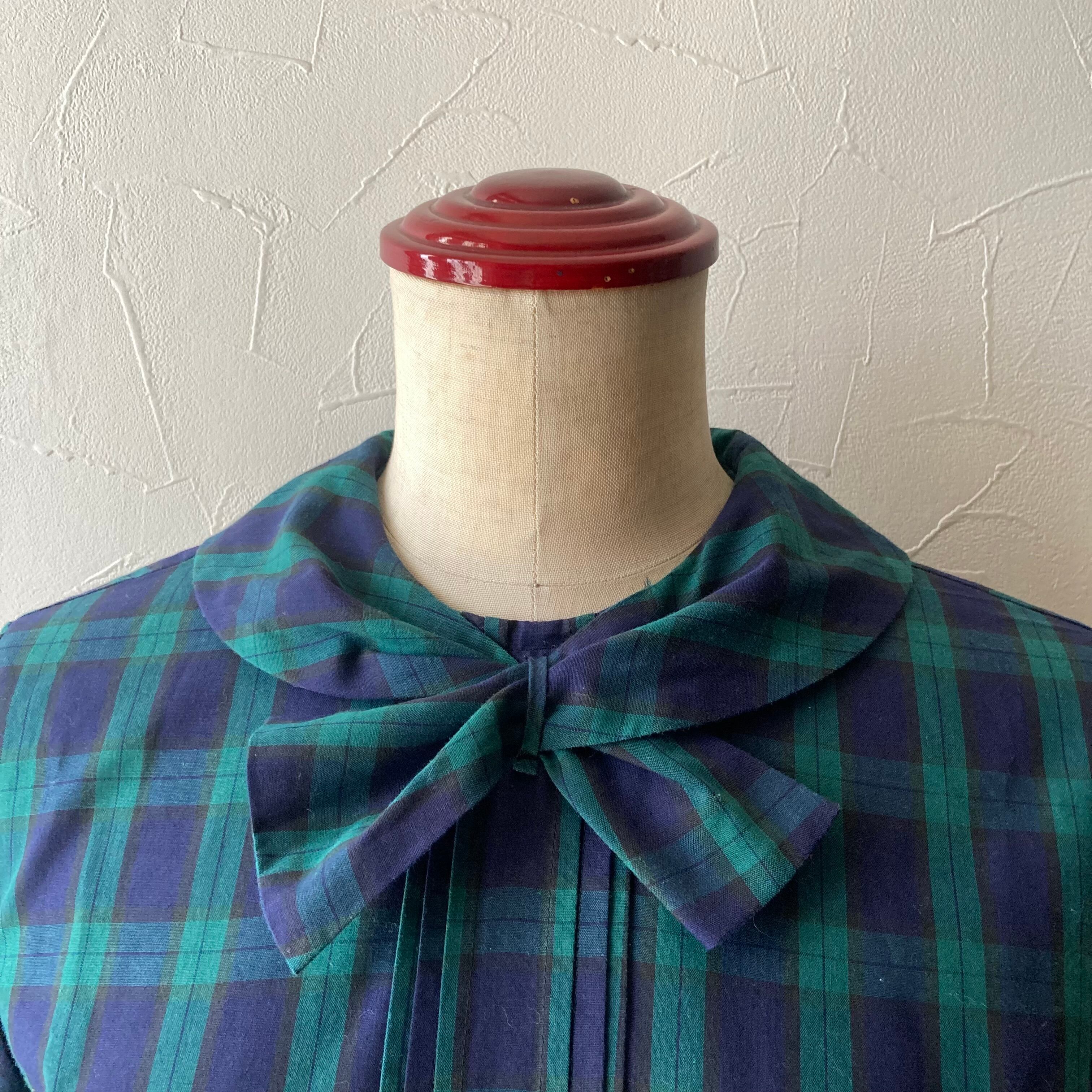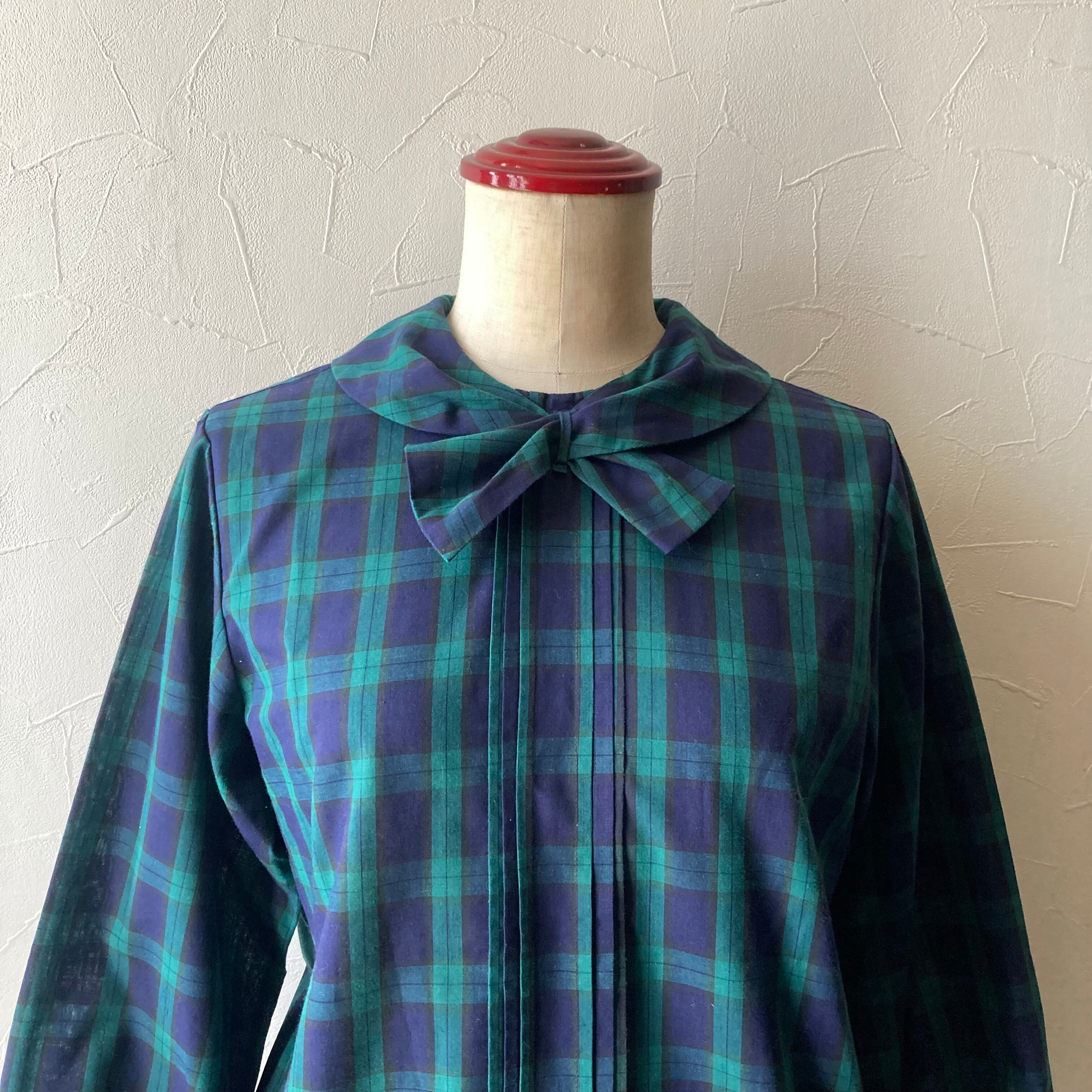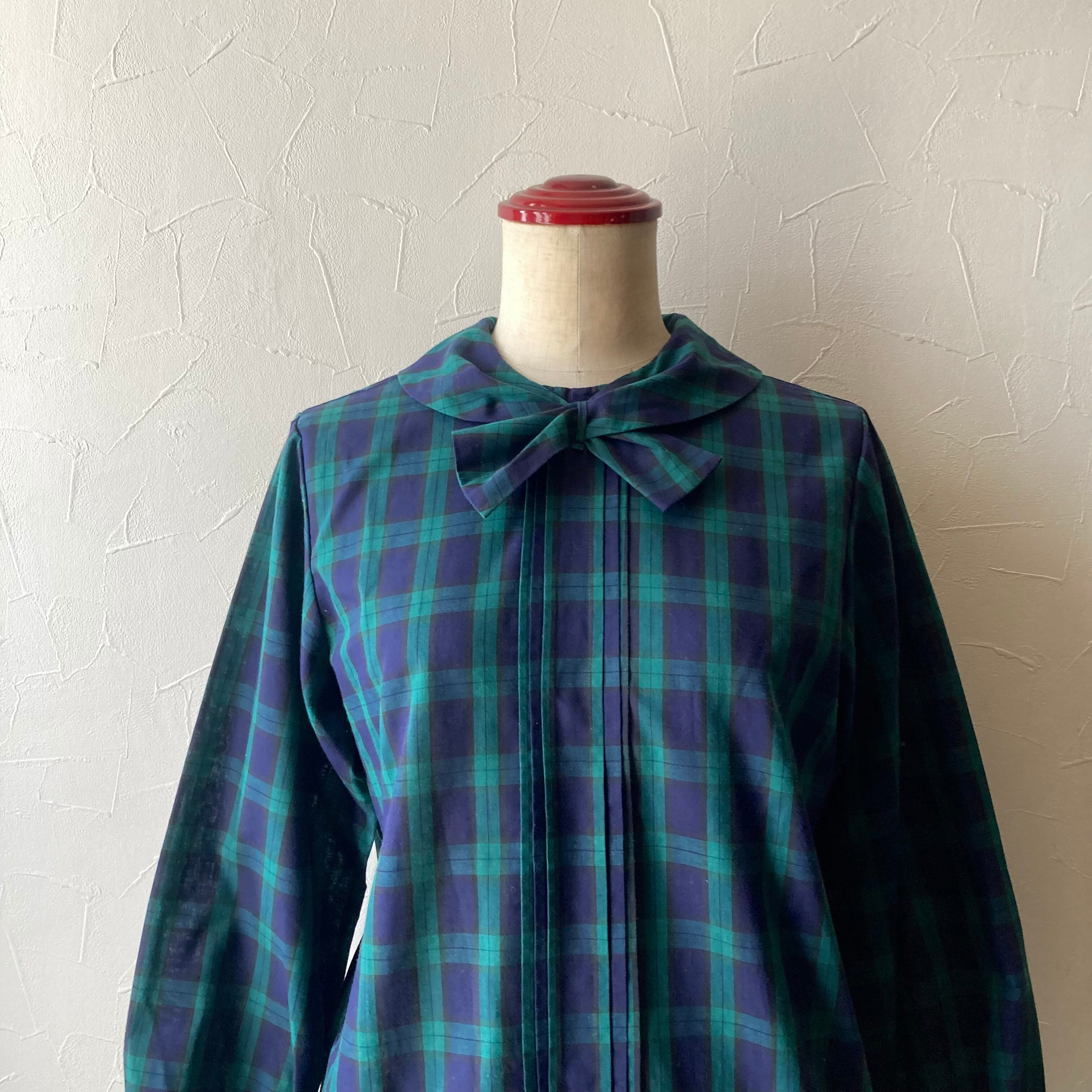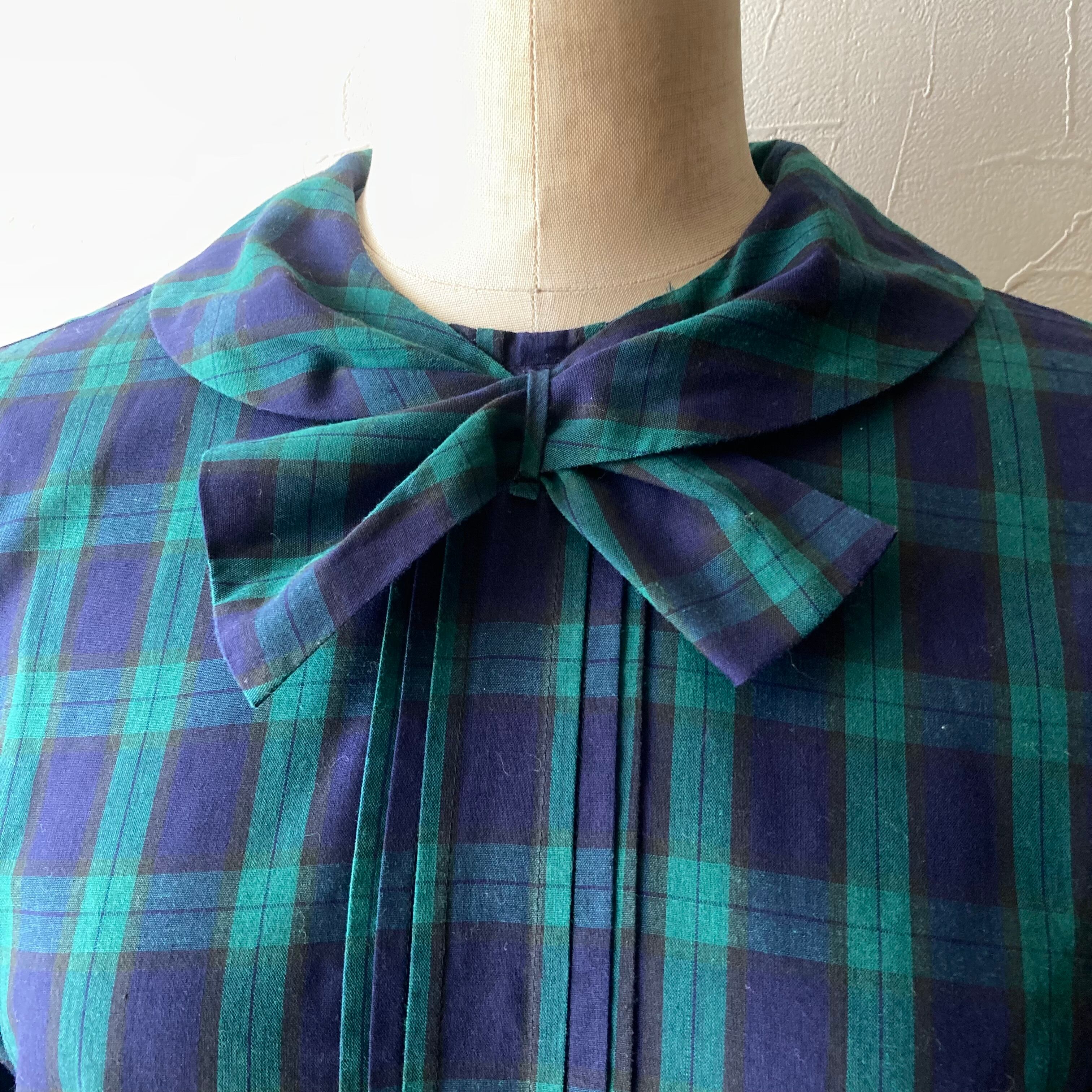 タータンチェックリボンブラウス 古着 used vintage レトロ