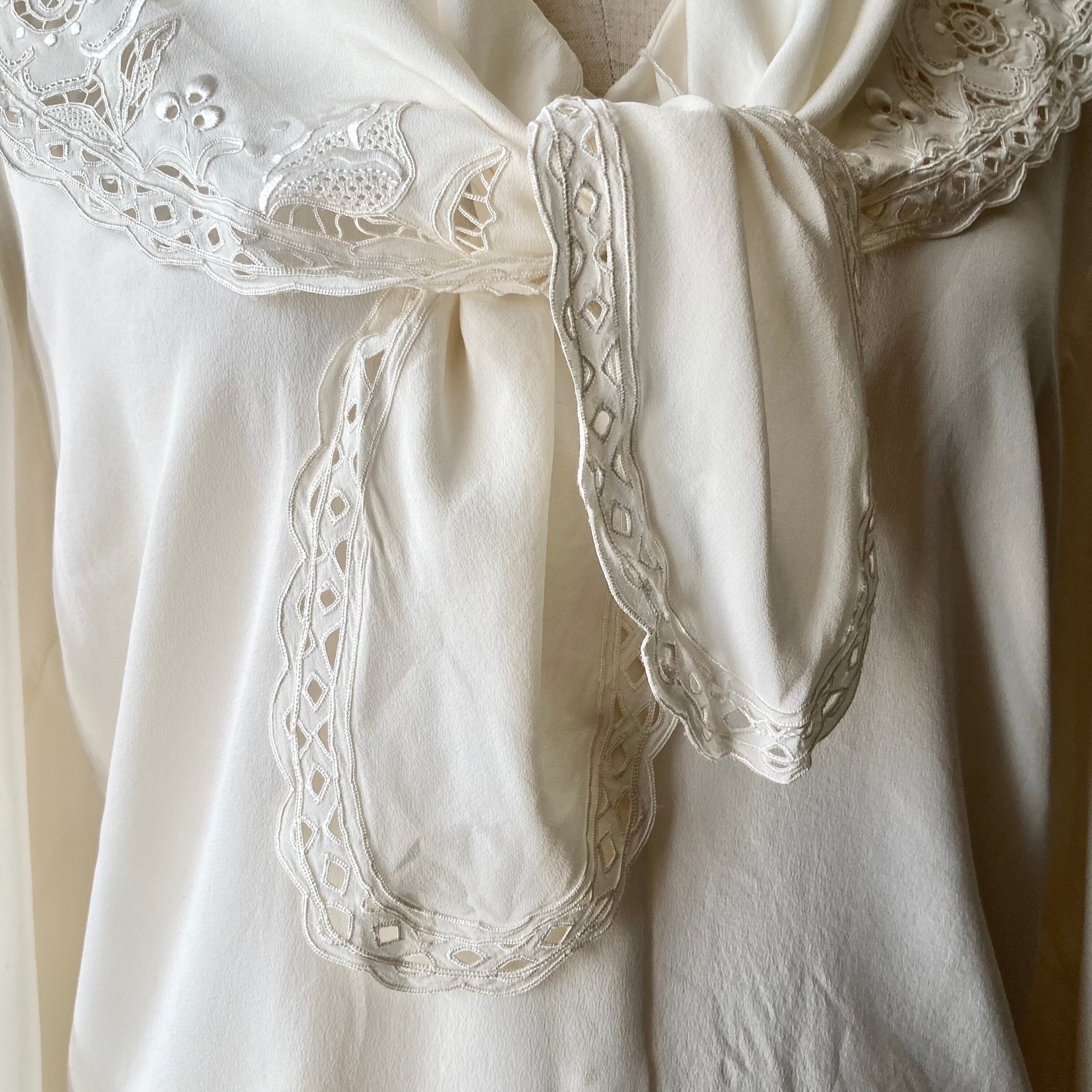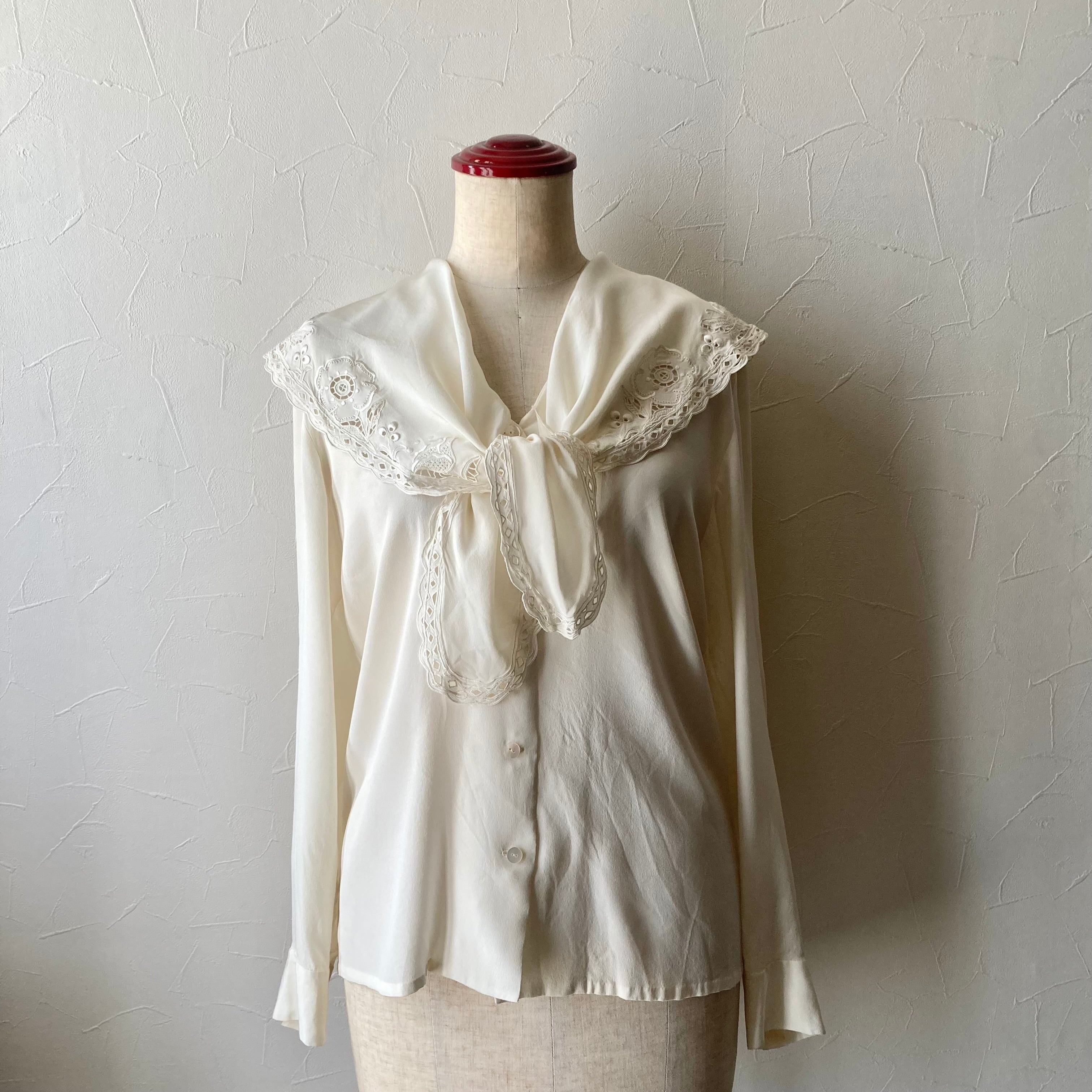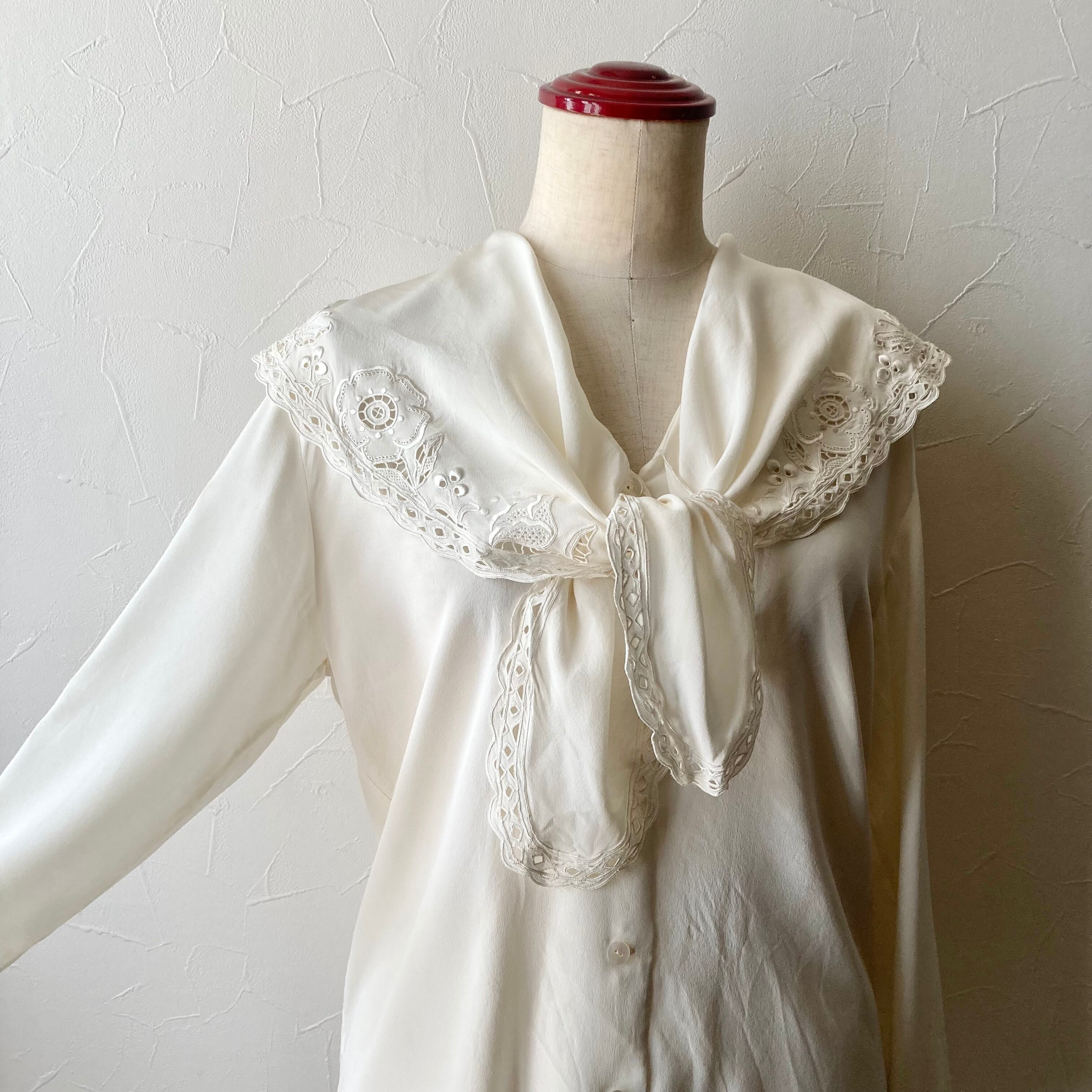 HANAE MORI カットワーク刺繍襟ブラウス 古着 used vintage レトロ