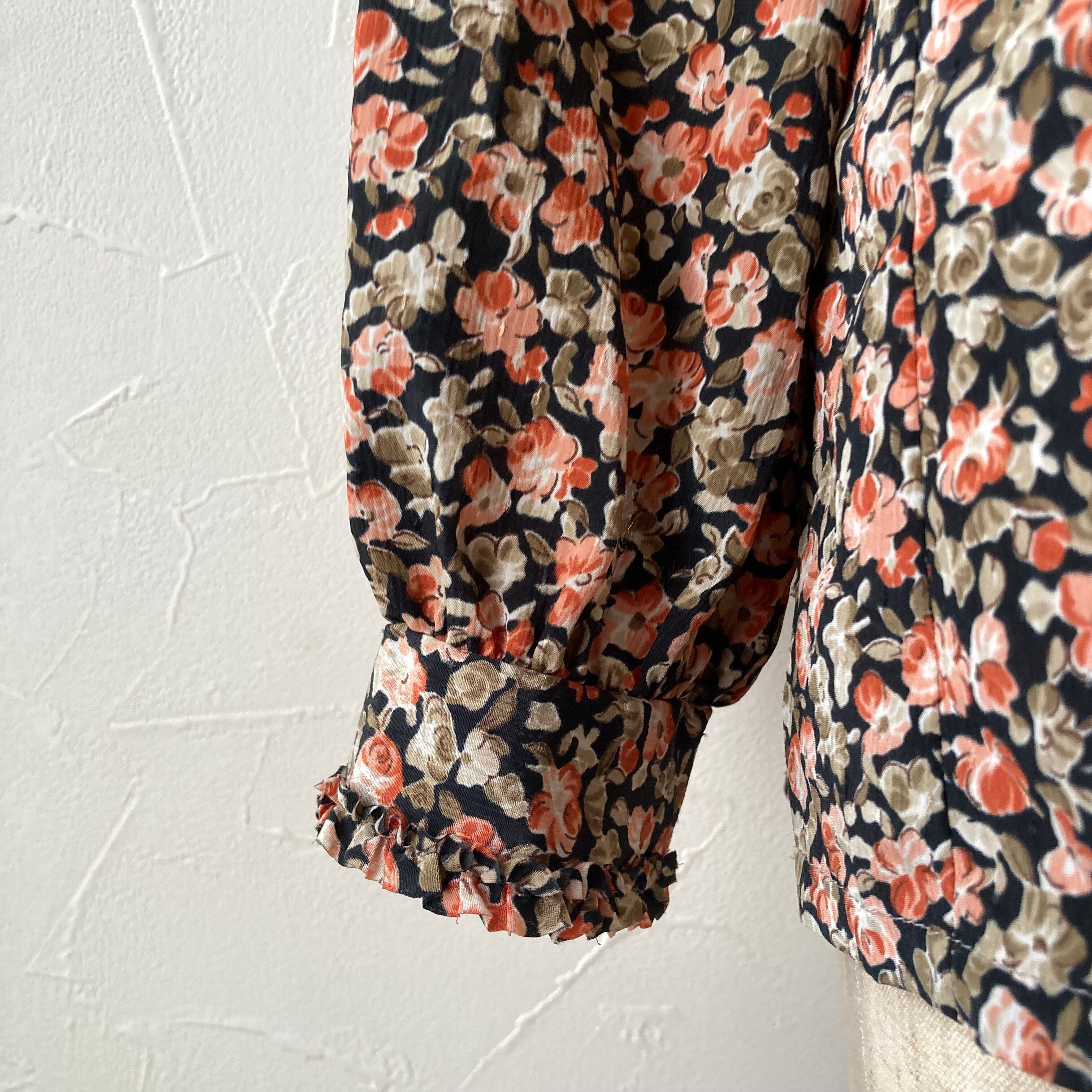 クシュクシュフリル花柄ブラウス 古着 used vintage レトロ