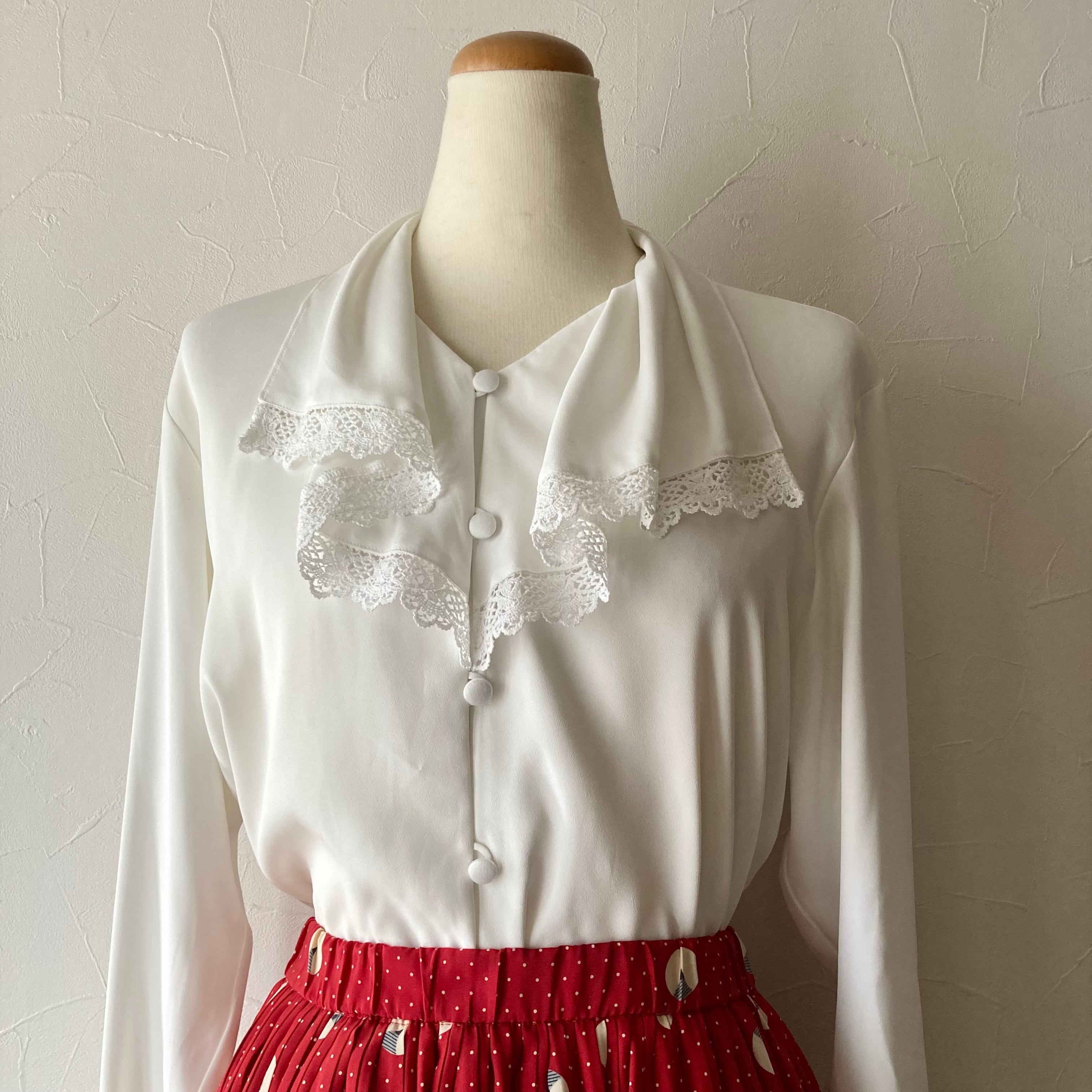 ひらひらレース付襟ブラウス 古着 used vintage レトロ