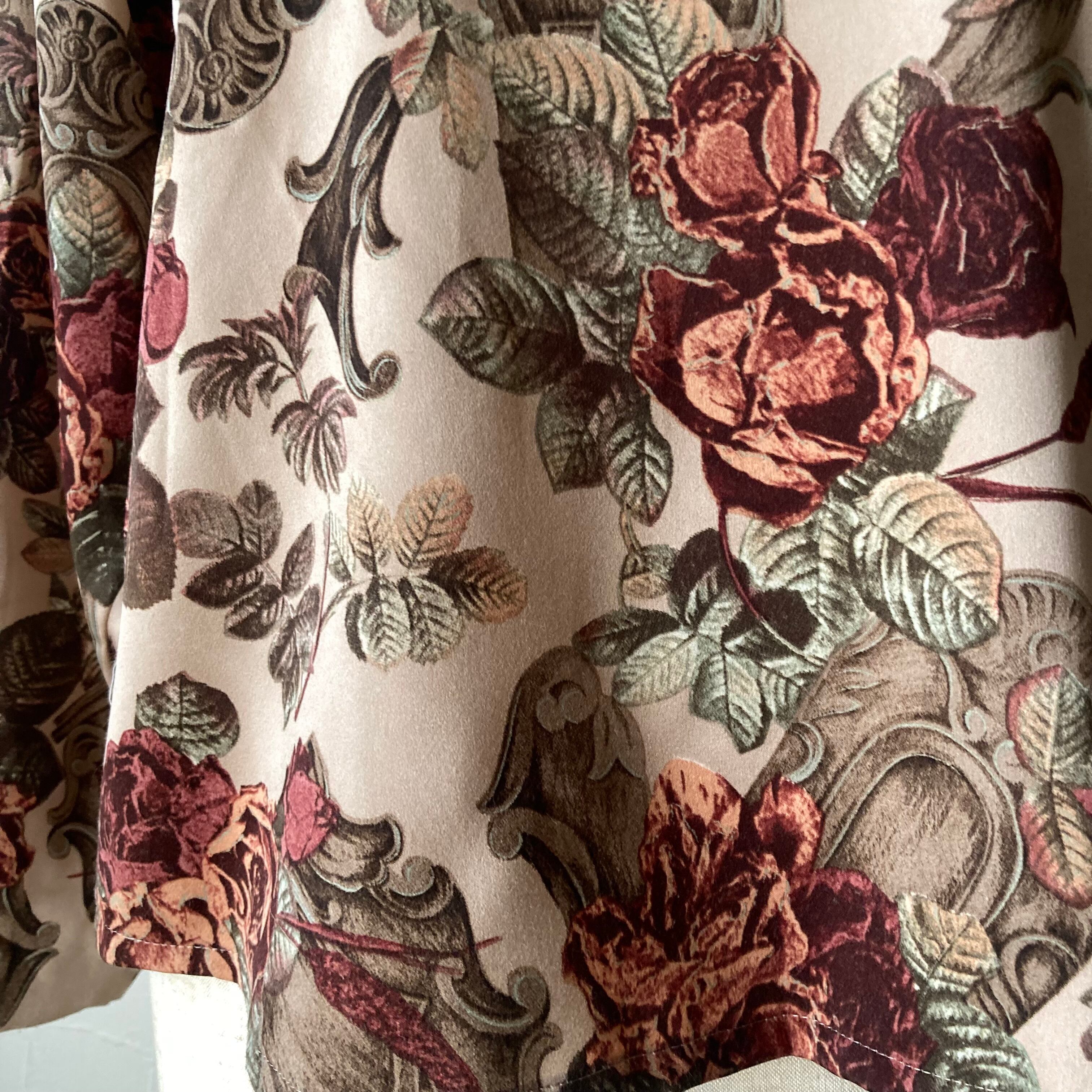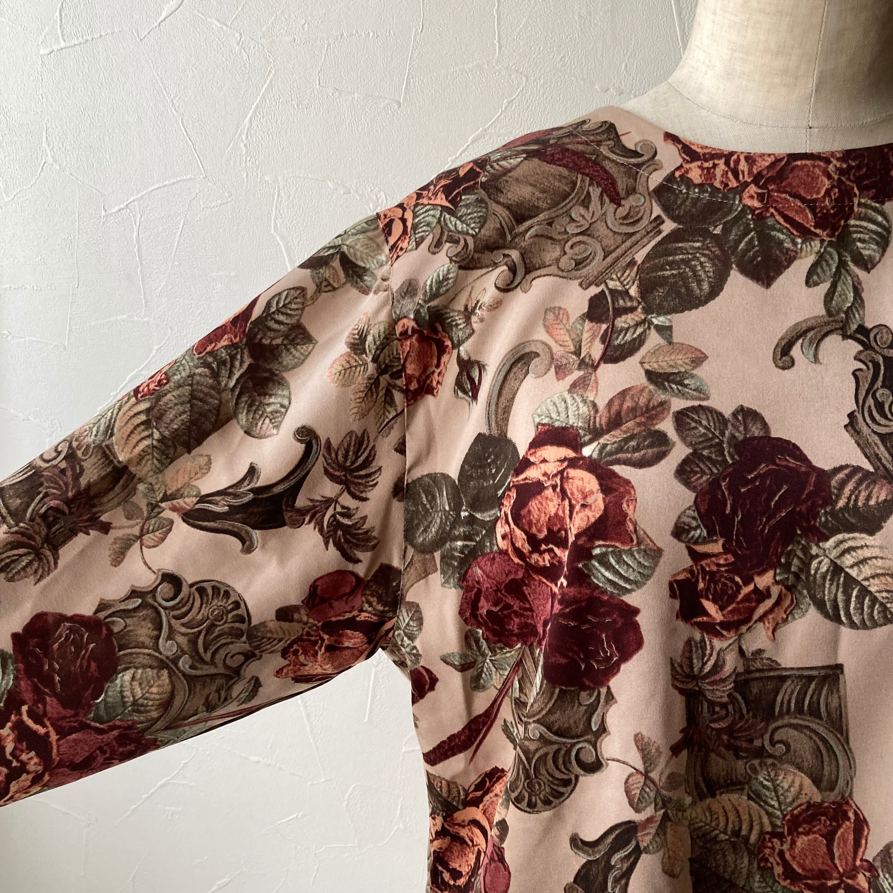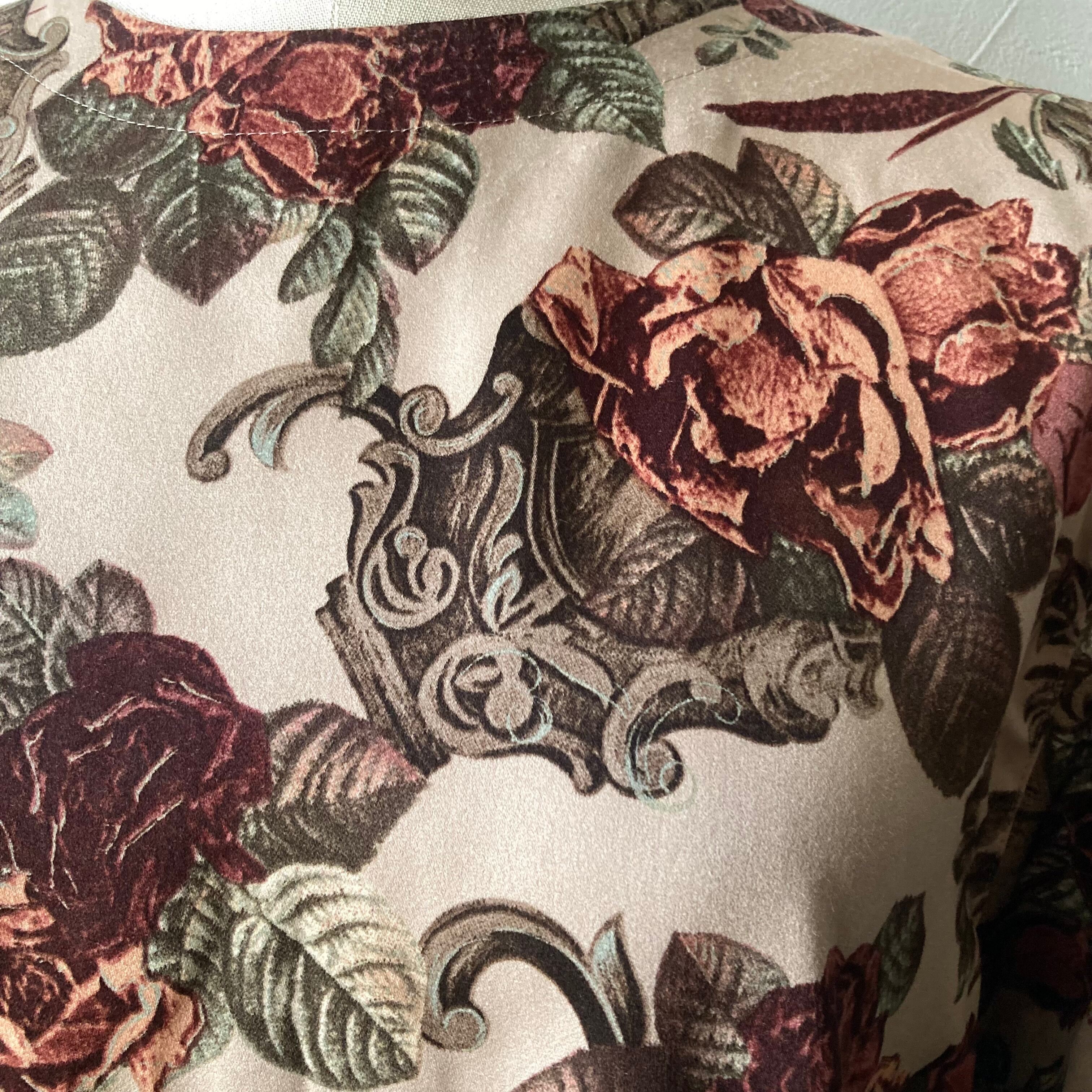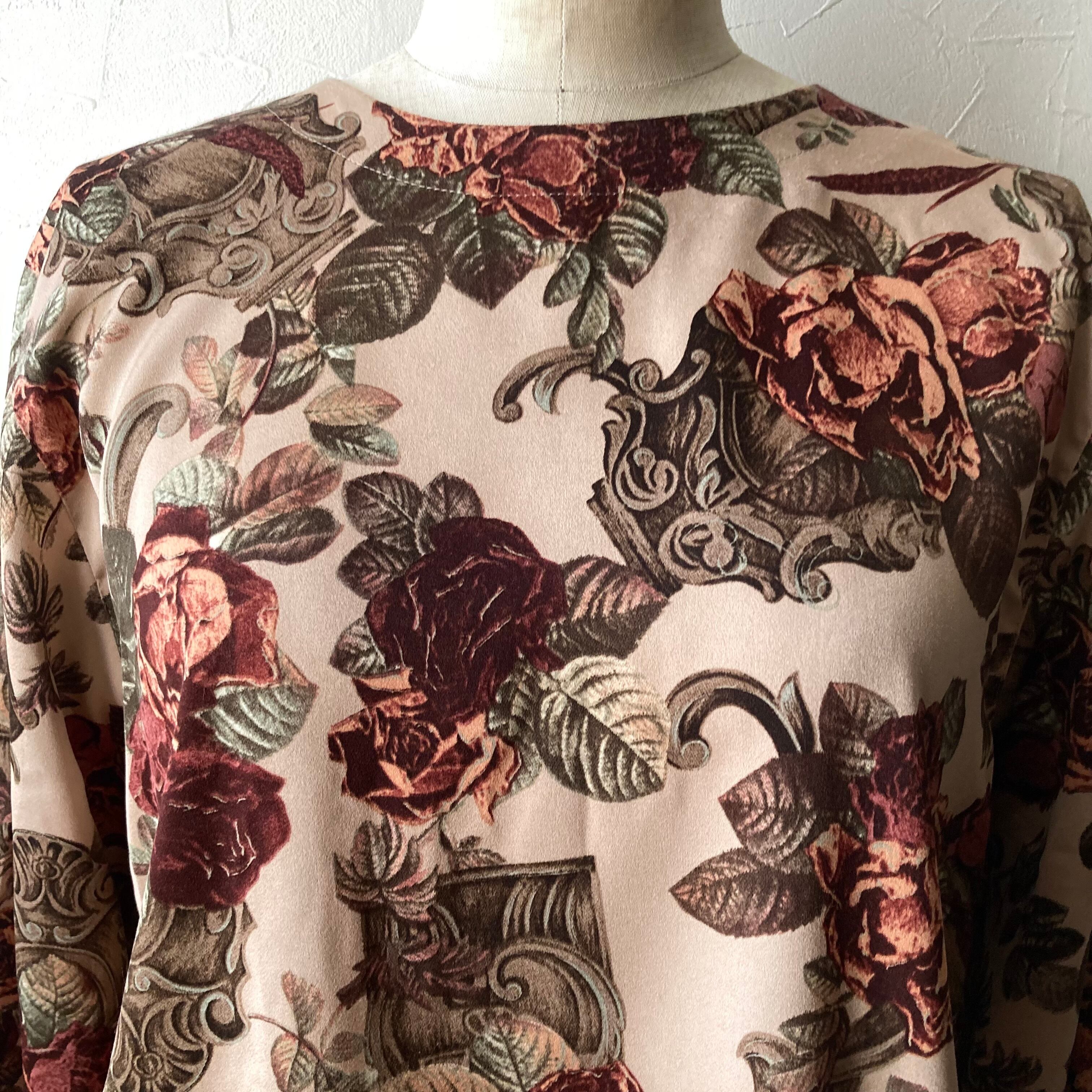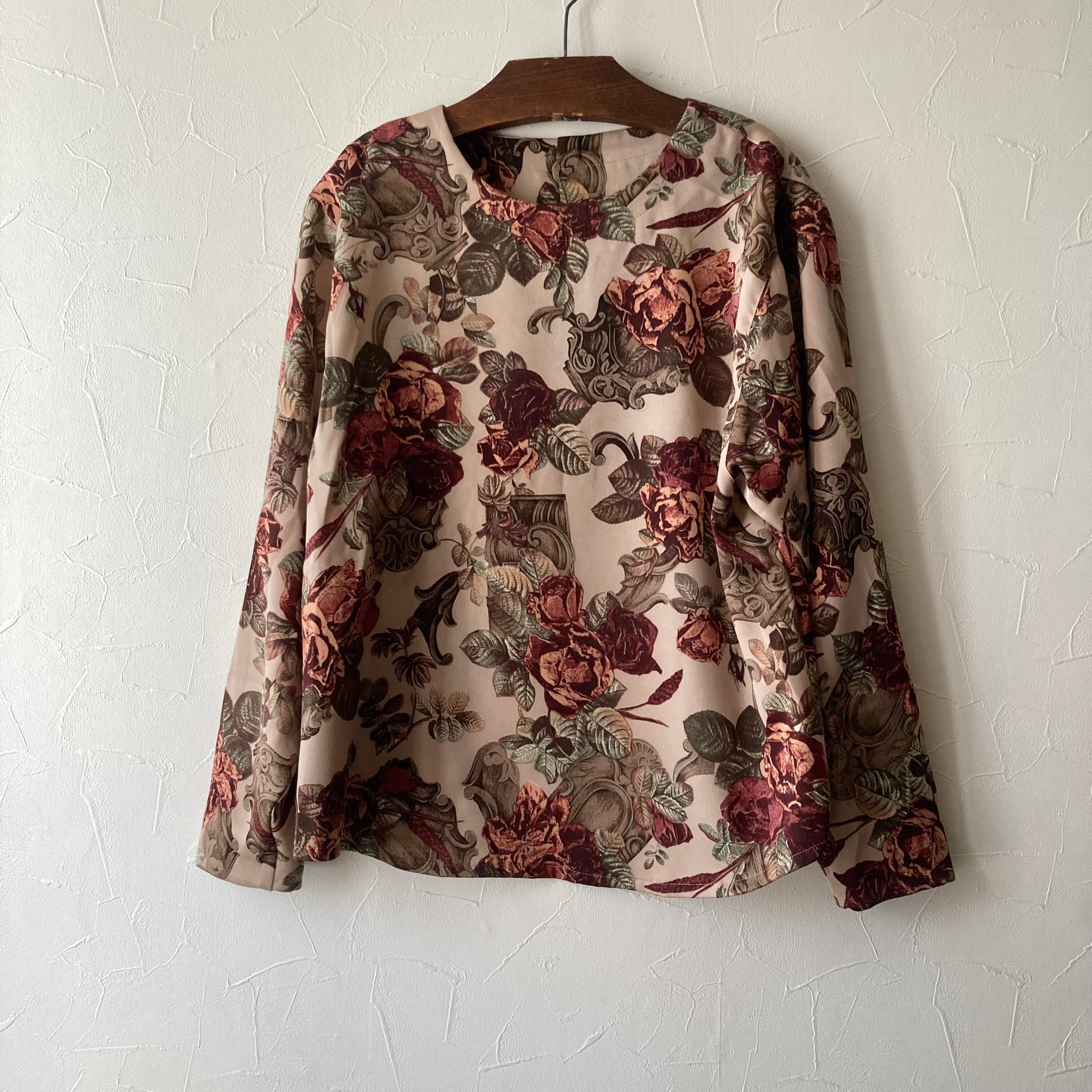 エレガント花柄ノーカラーブラウス 古着 used vintage レトロ
