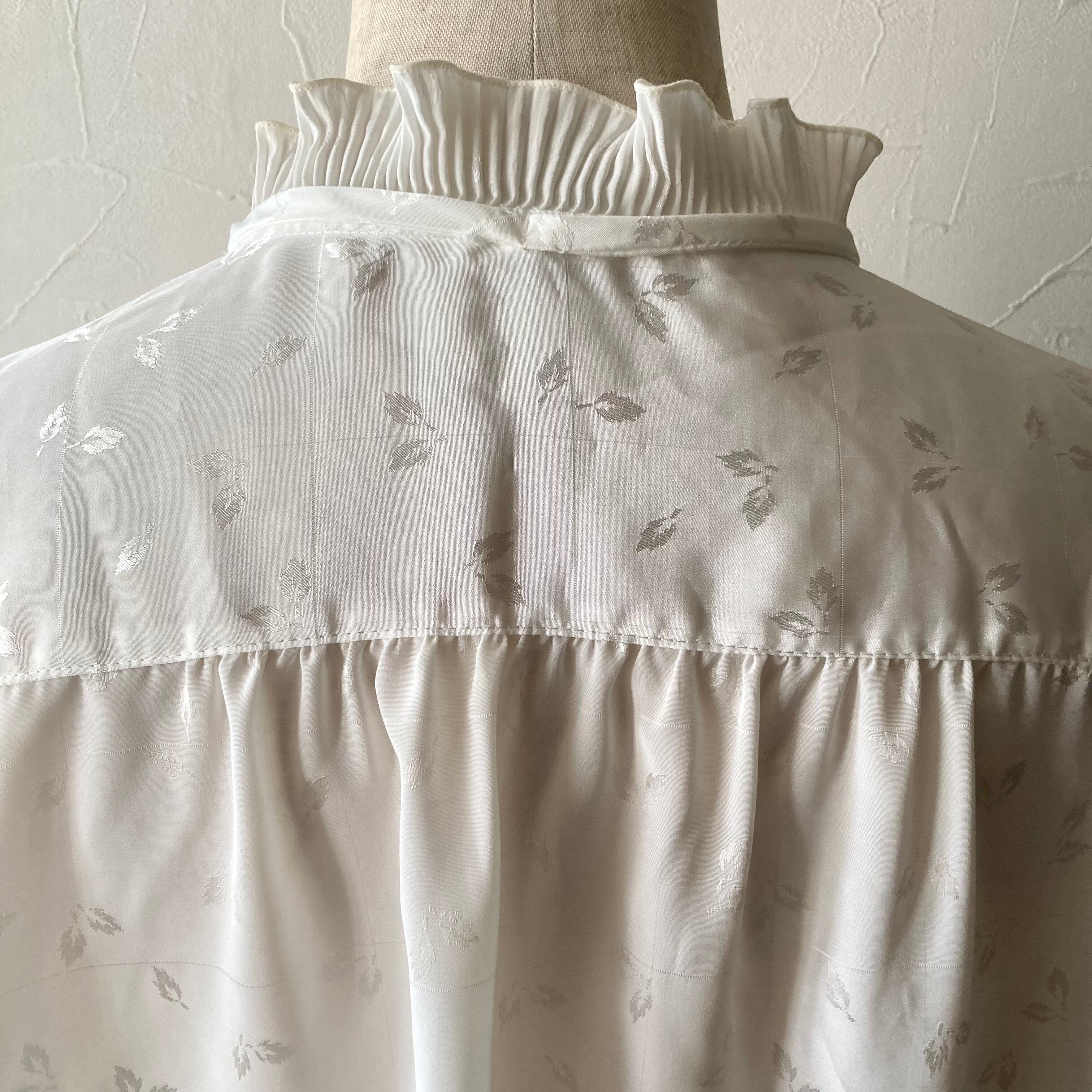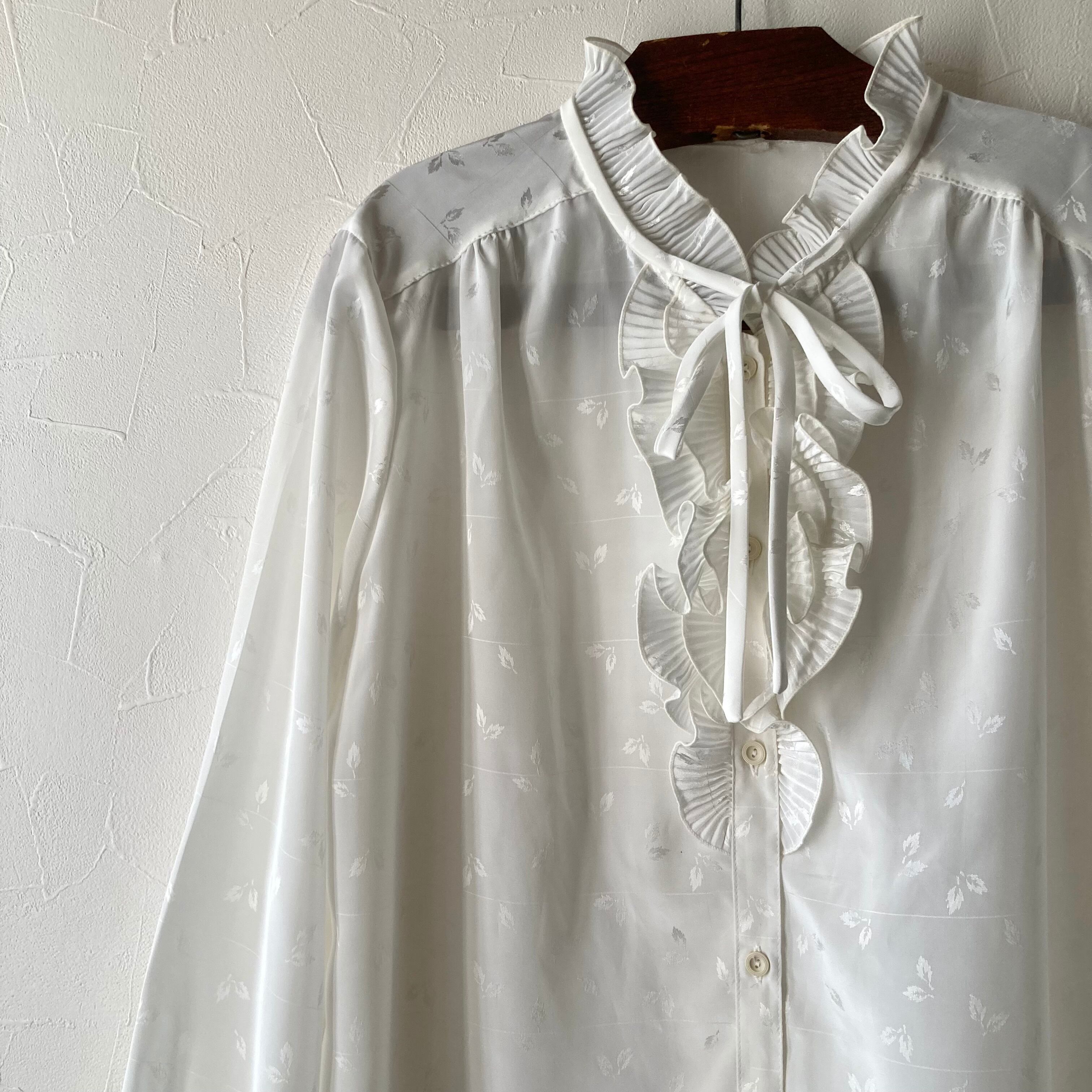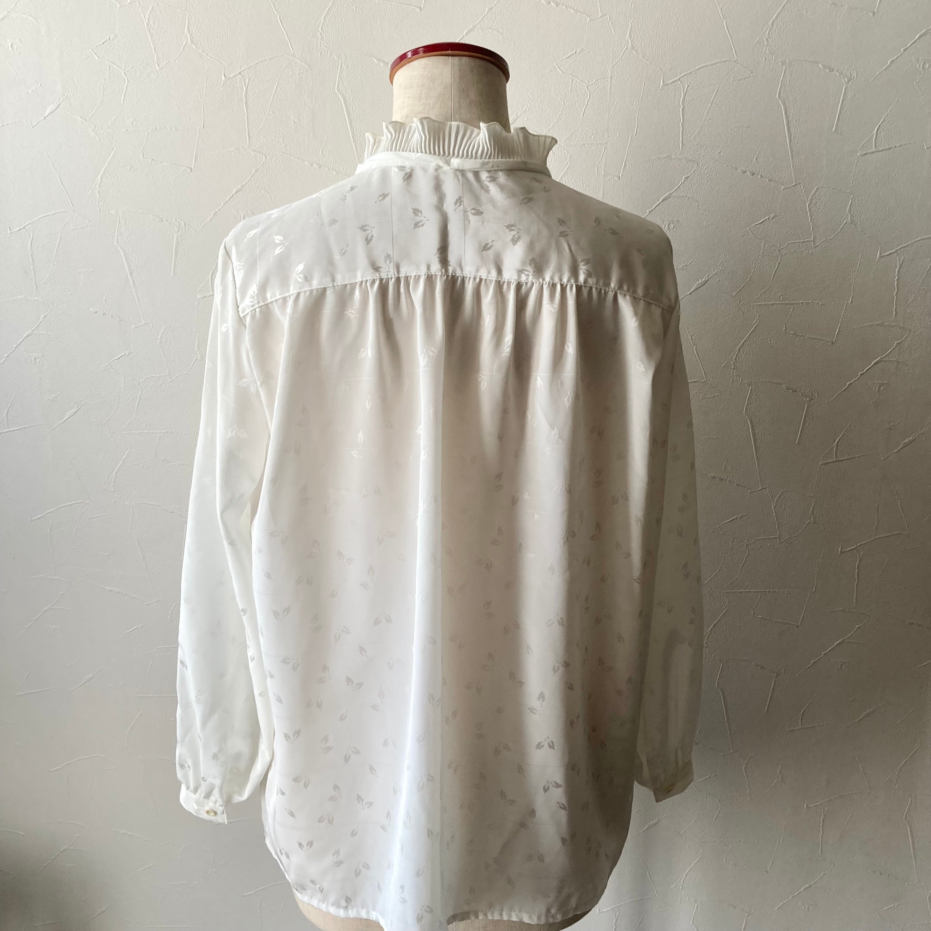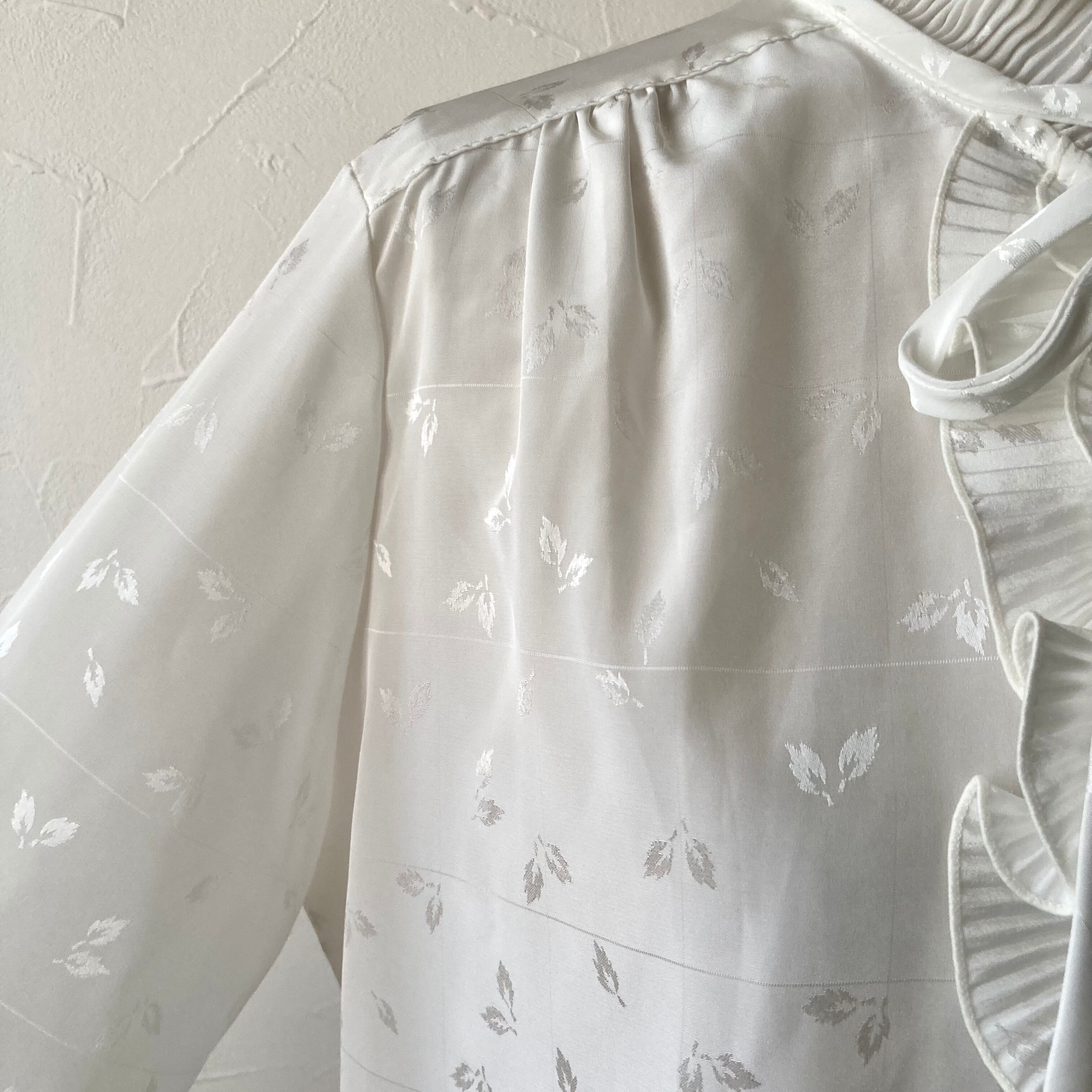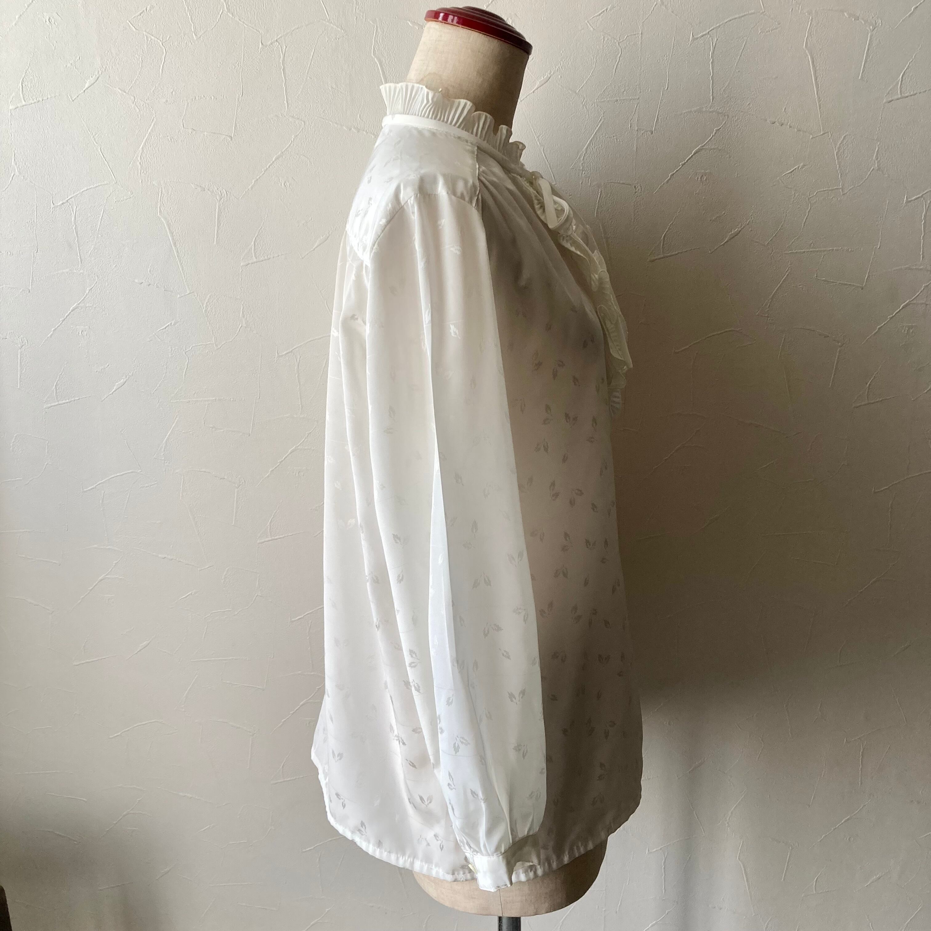 リーフフリルリボンホワイトブラウス 古着 used vintage レトロ