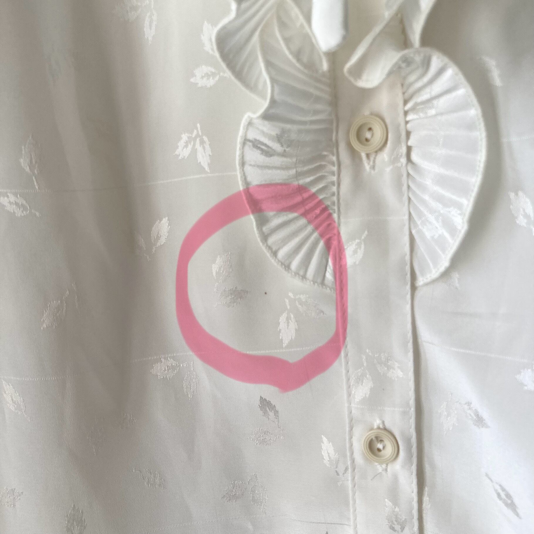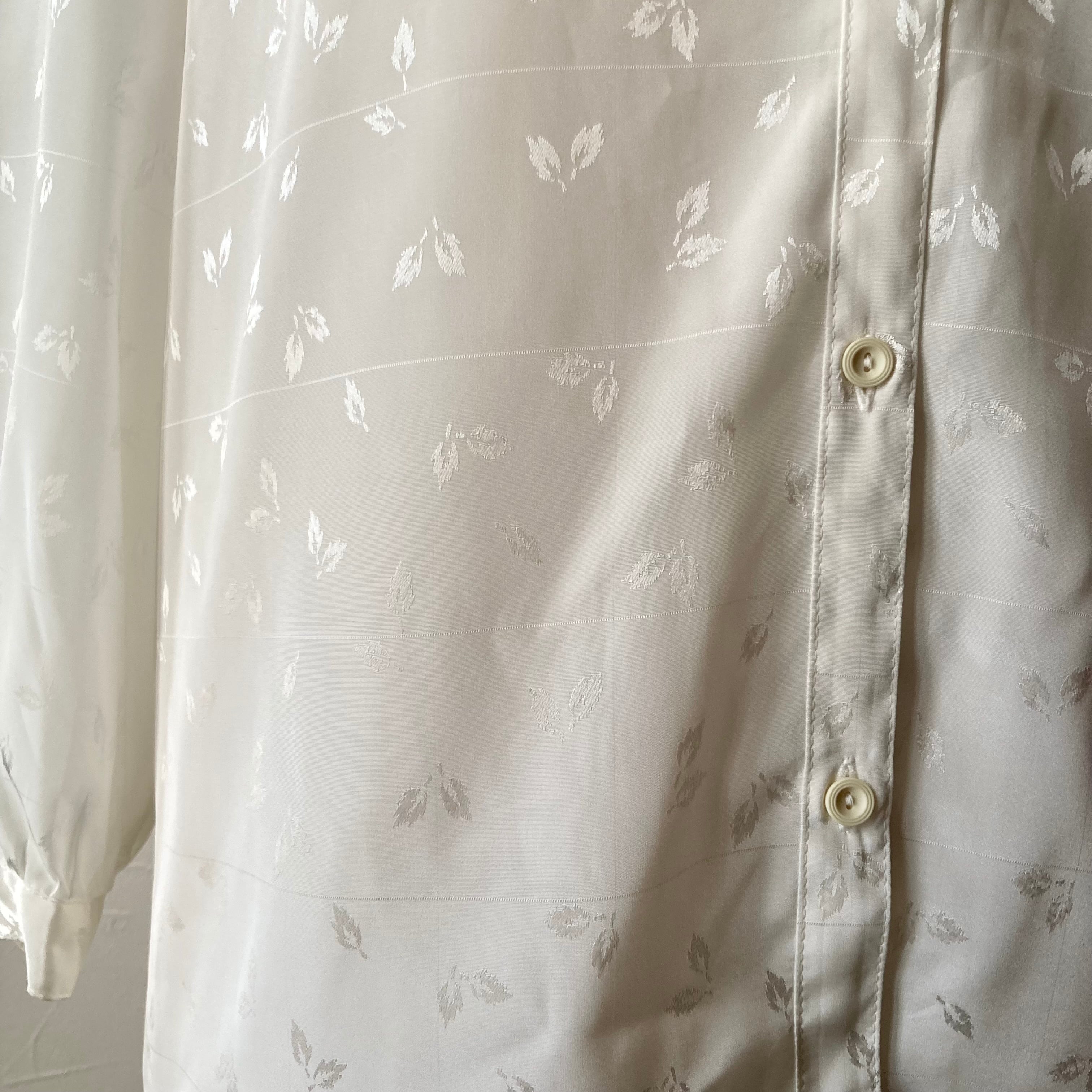 リーフ柄が入ったホワイトカラーのブラウス。