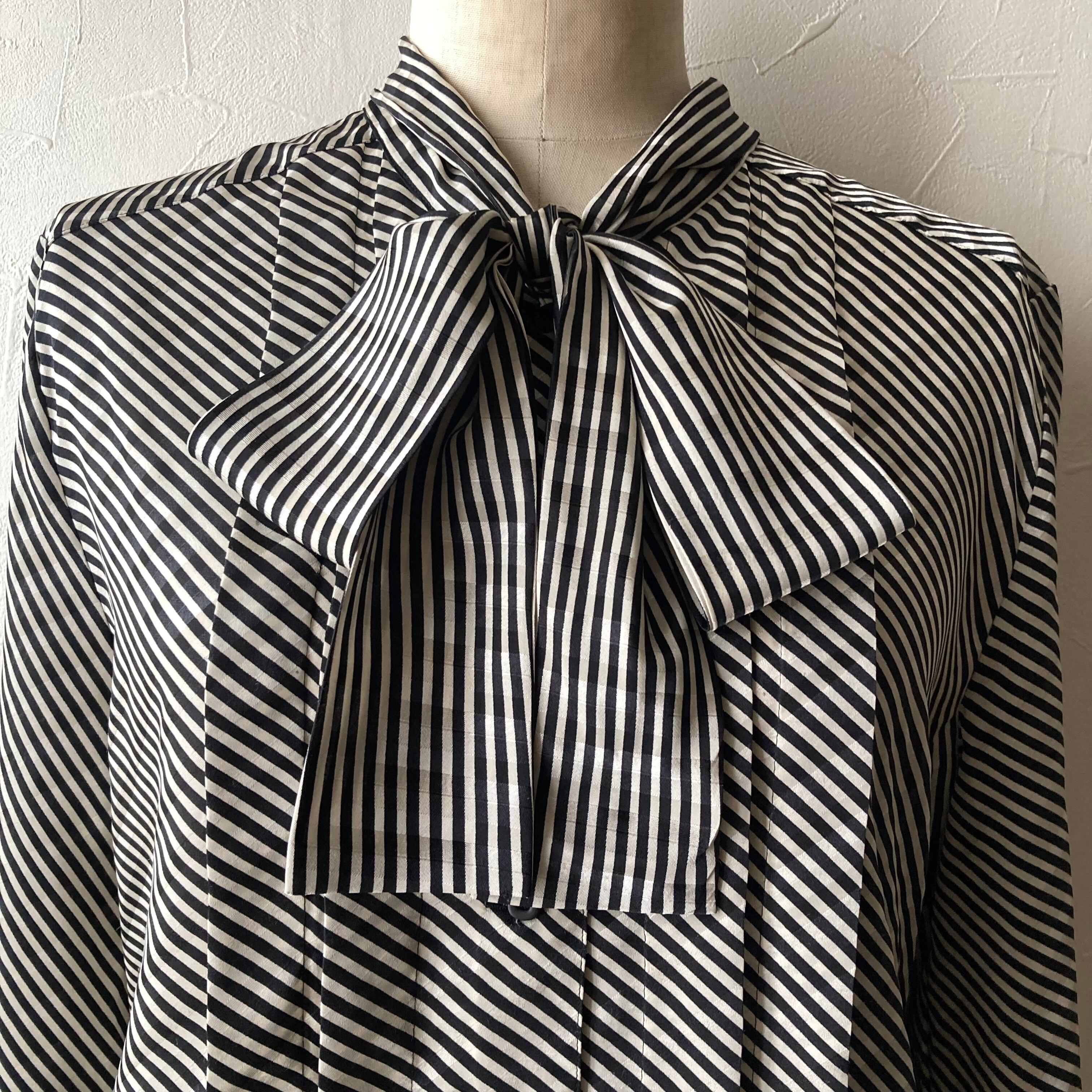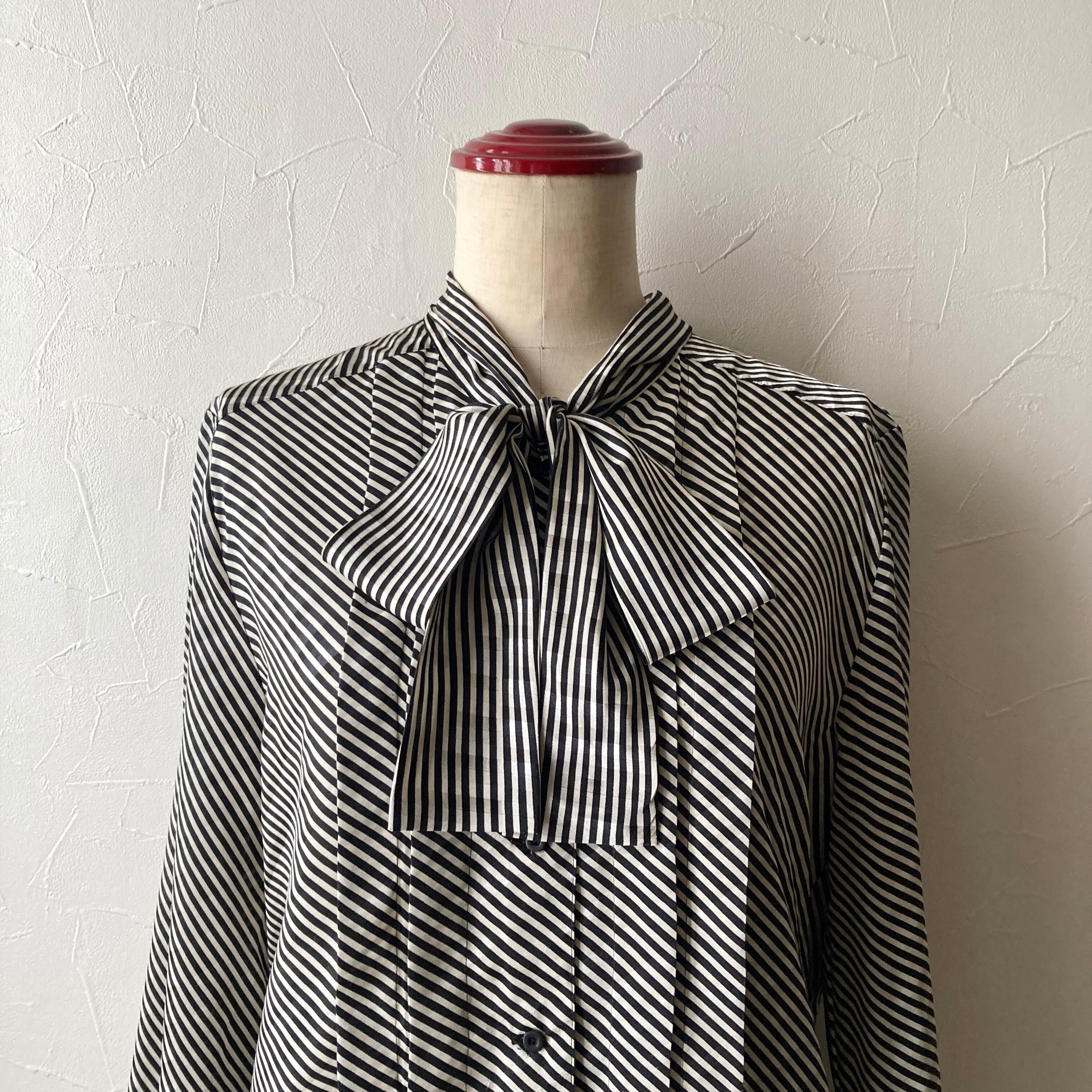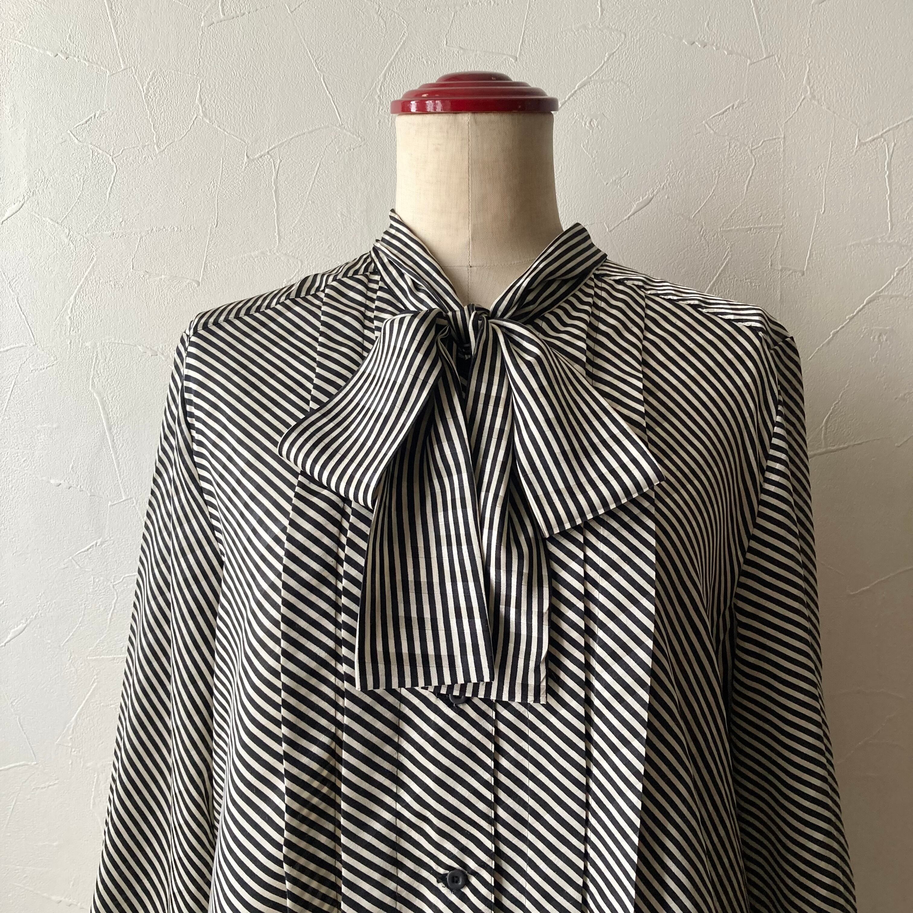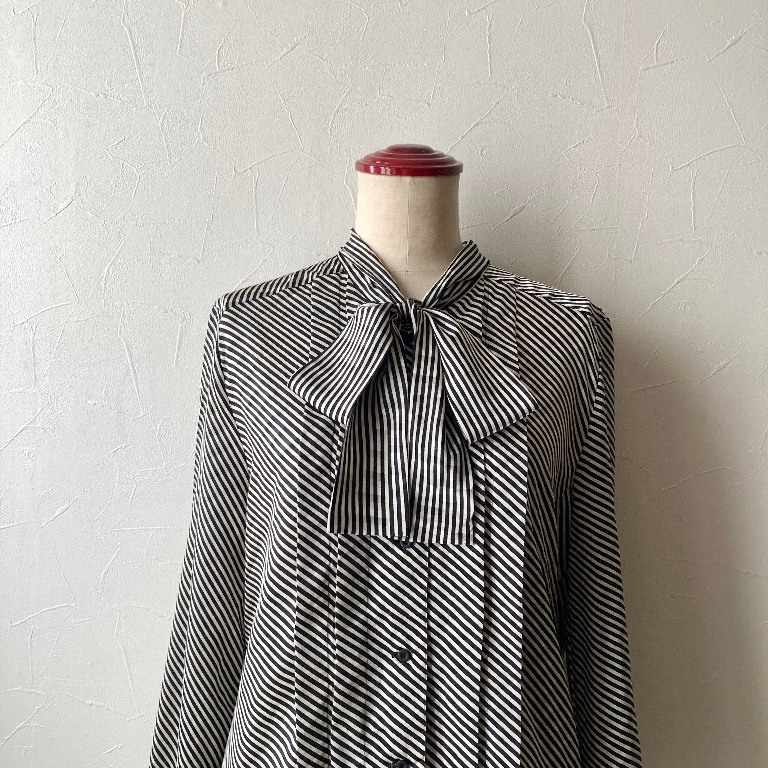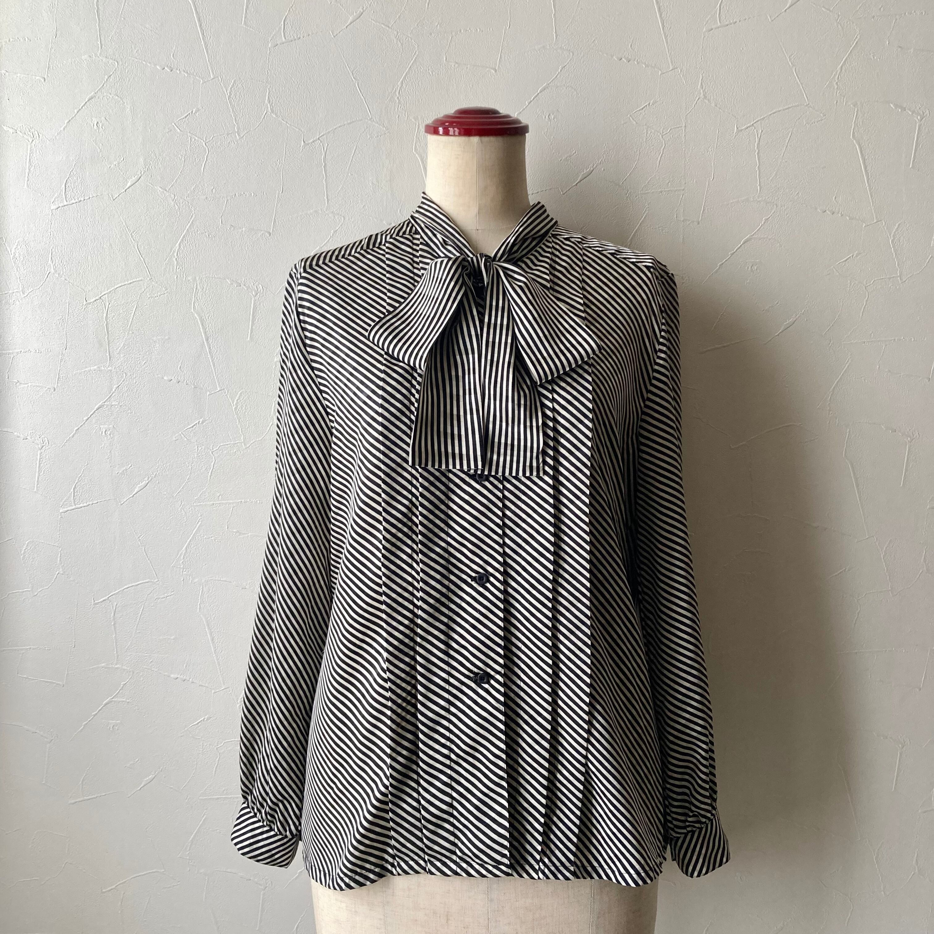 ななめストライプリボンブラウス 古着 used vintage レトロ