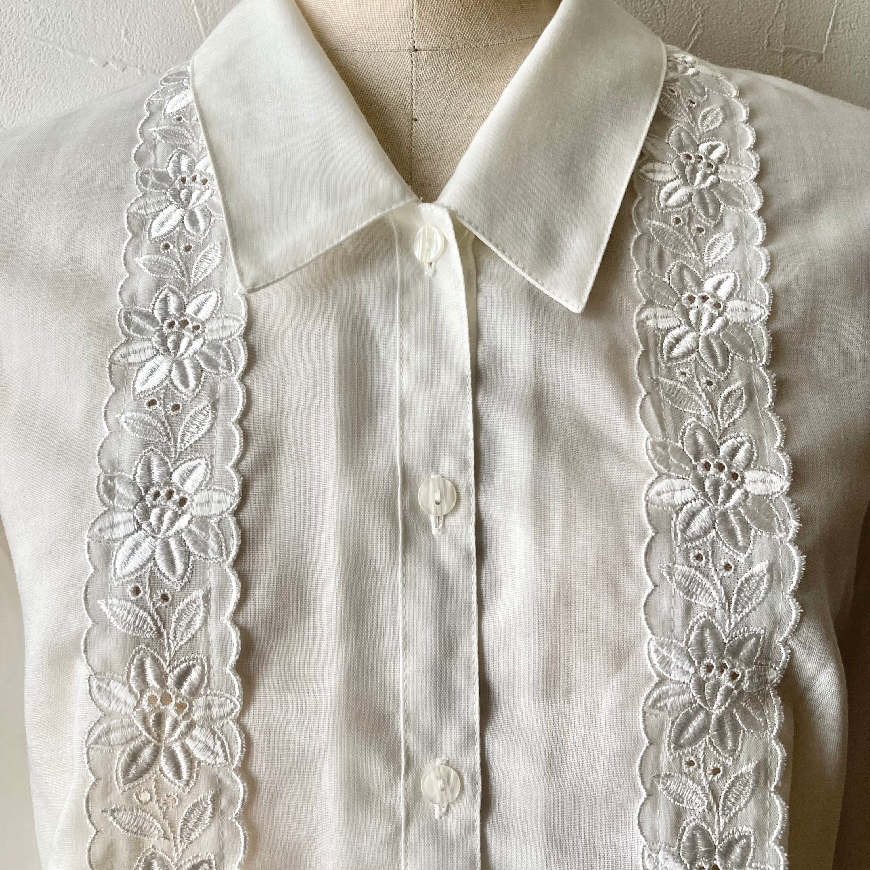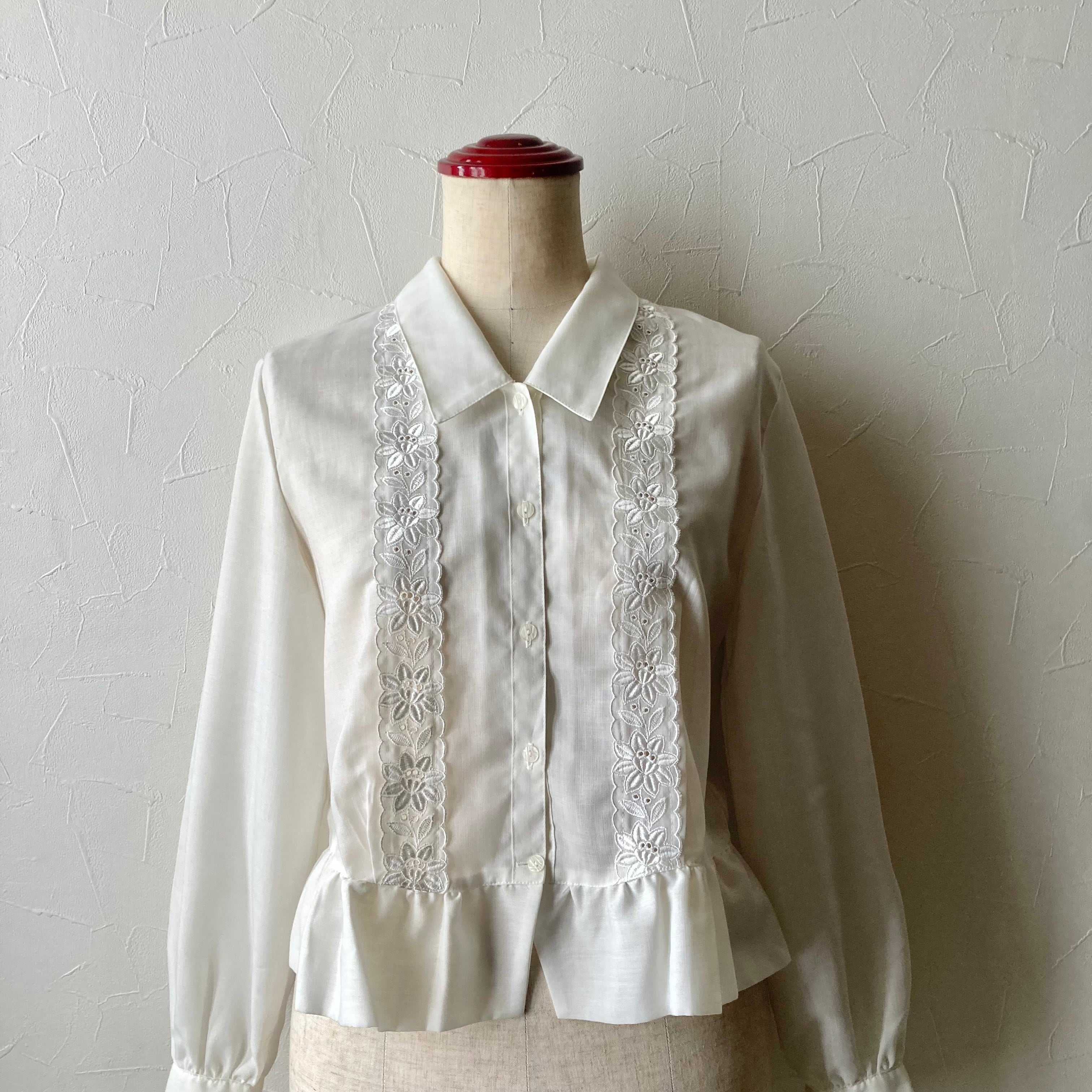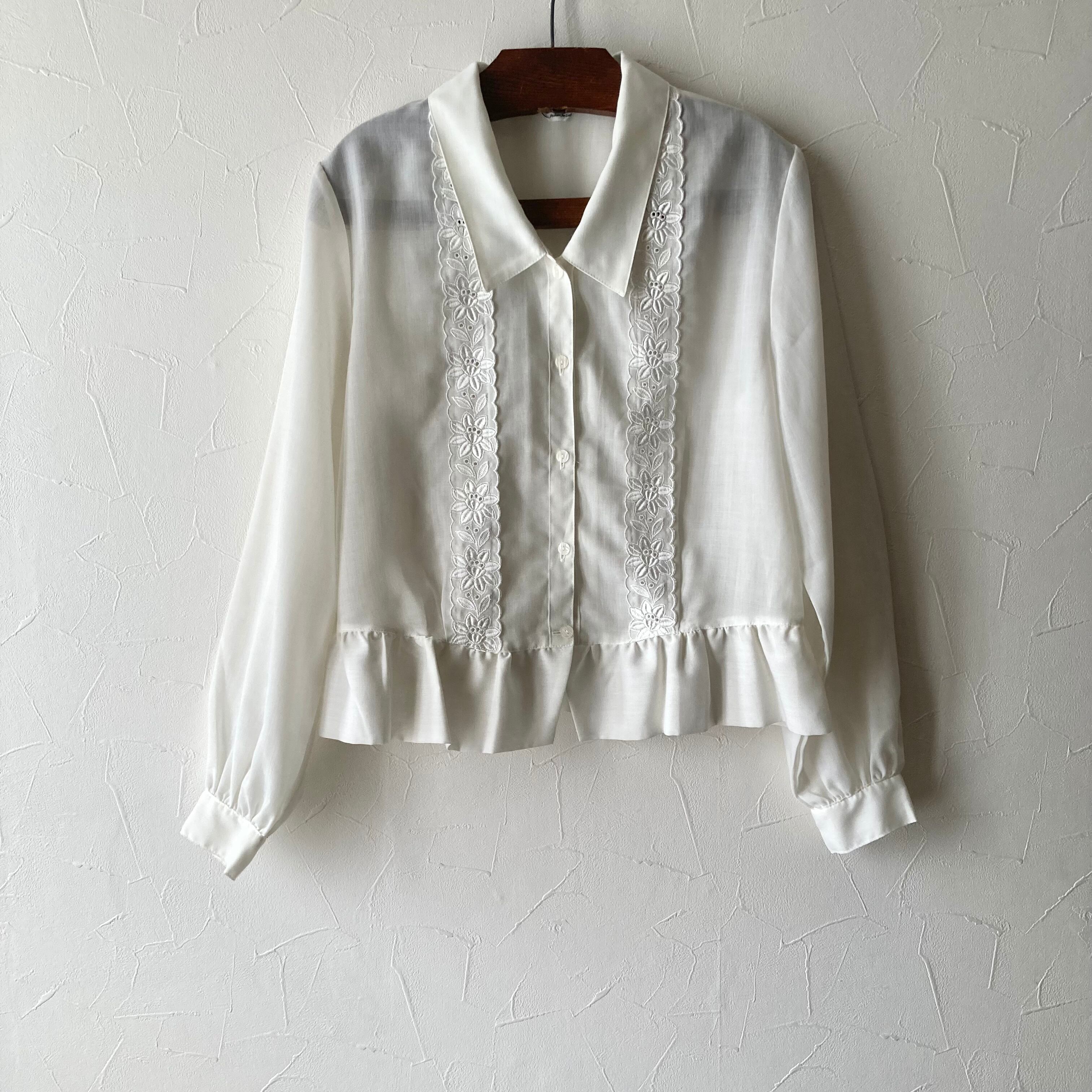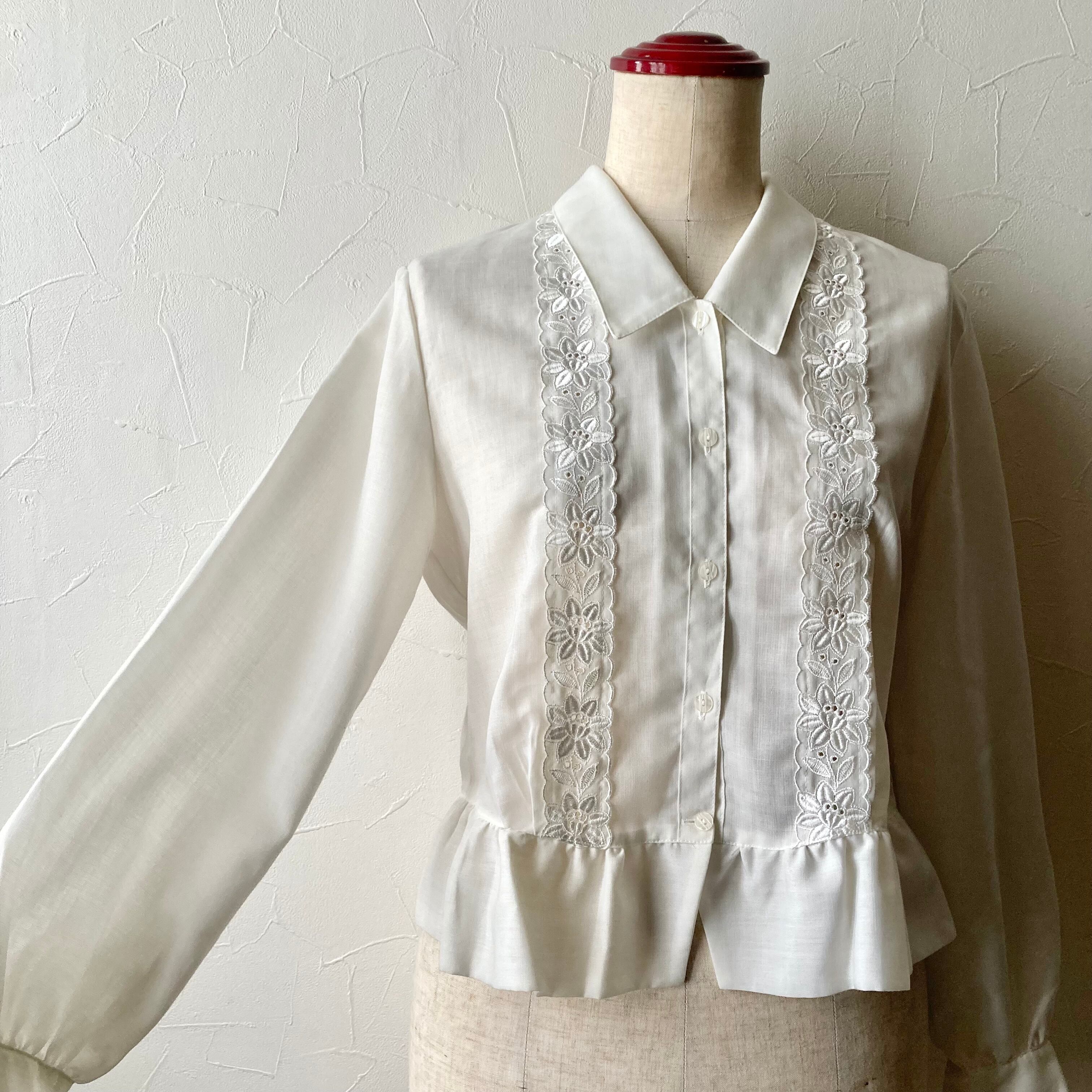 花レース刺繍デザインブラウス 古着 used vintage レトロ