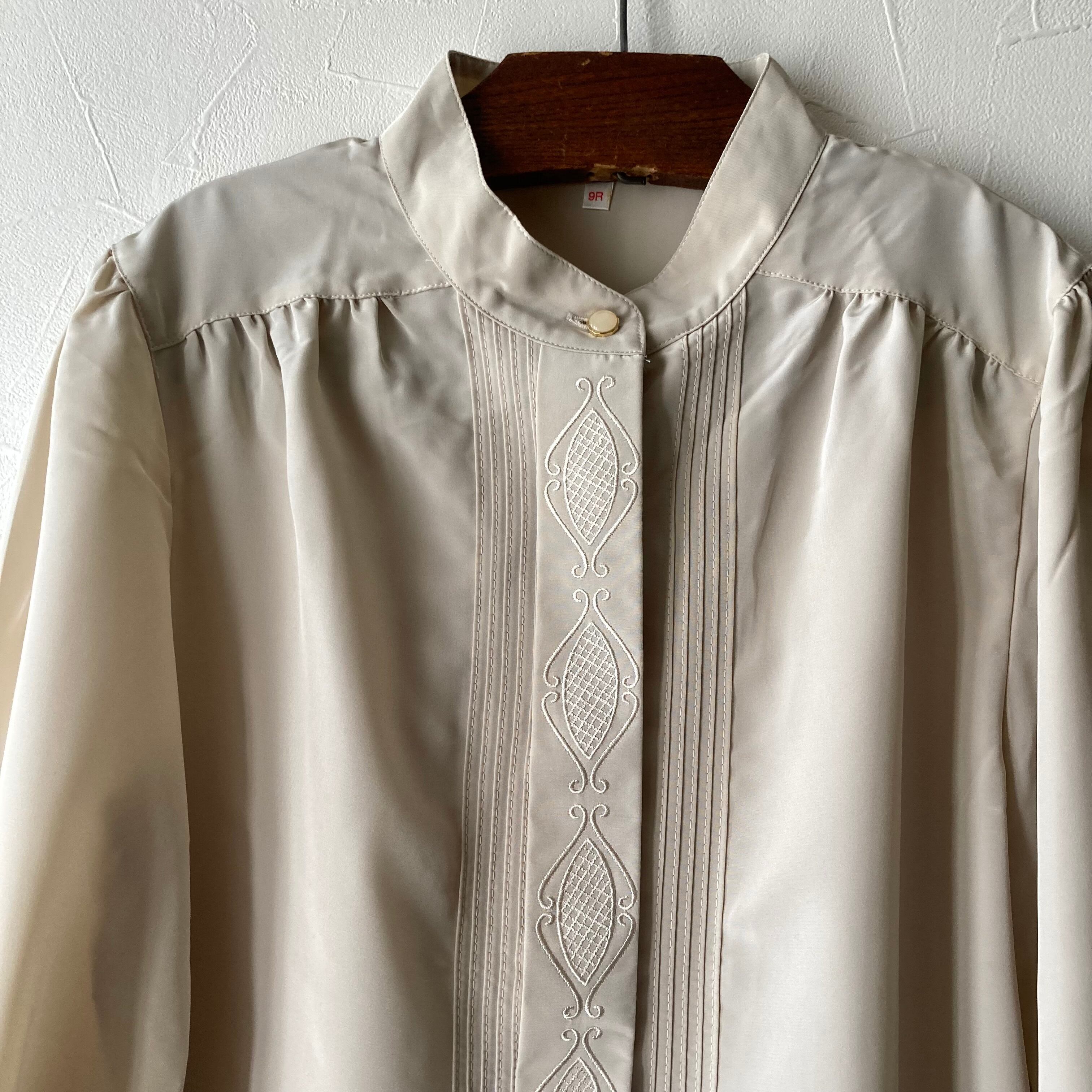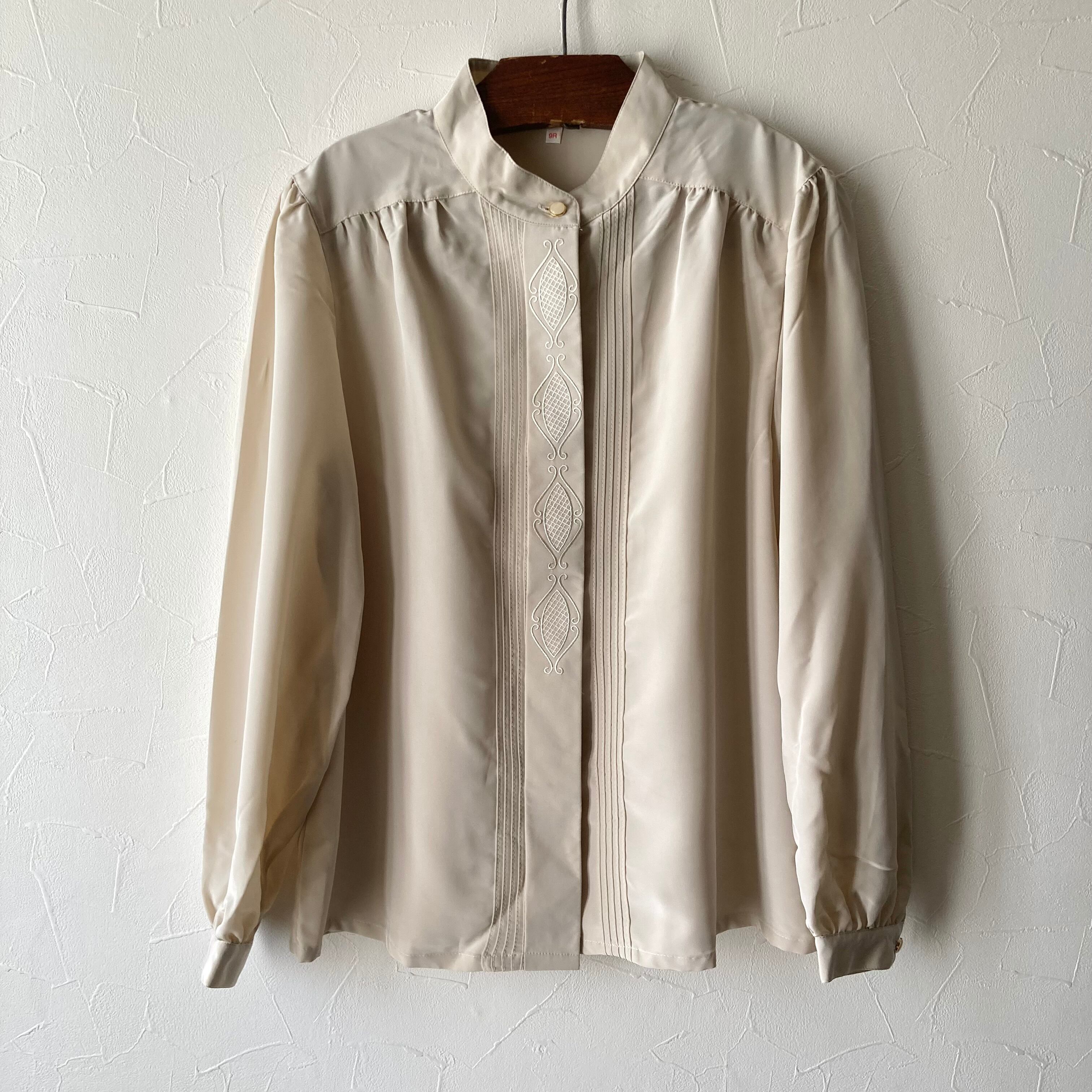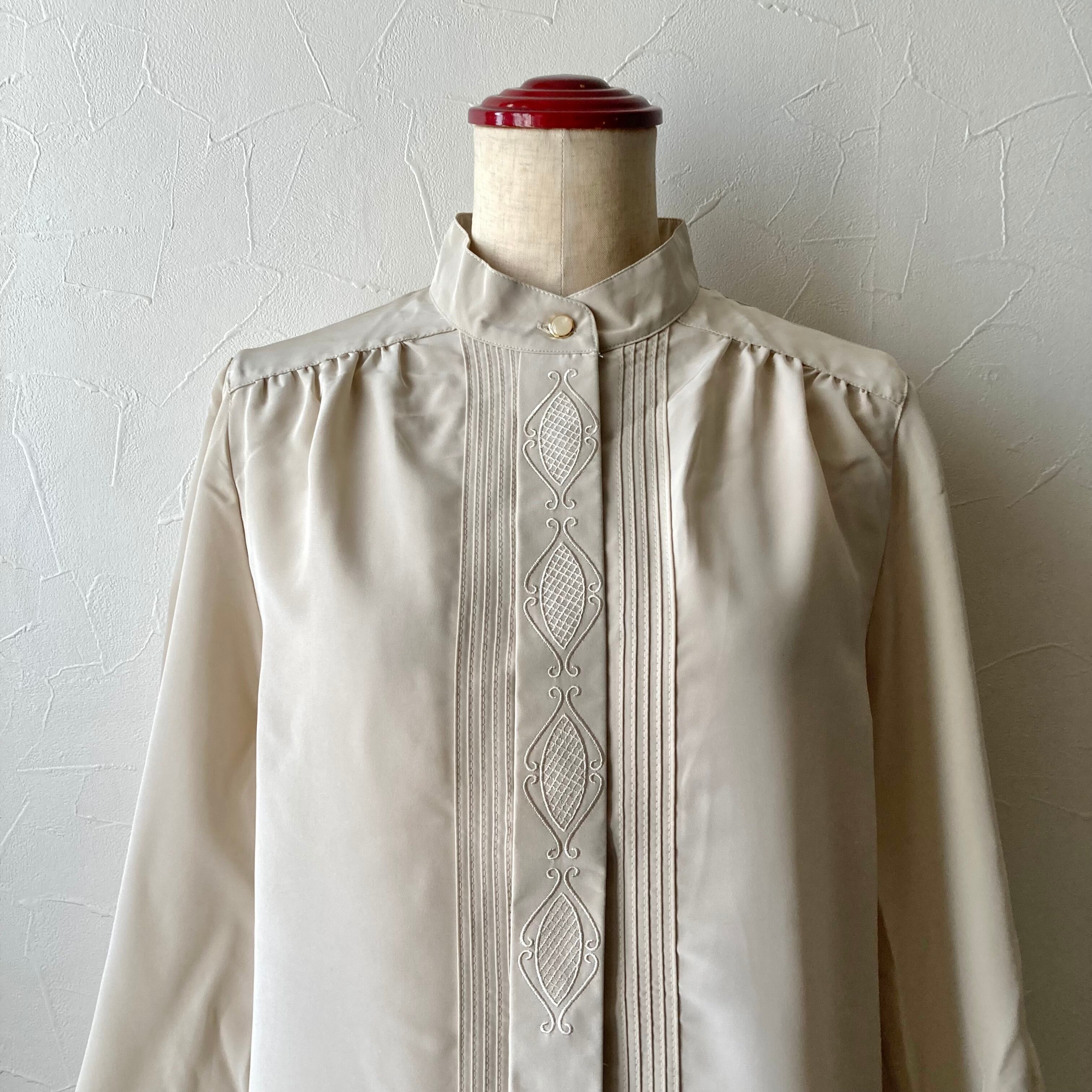レトロな刺繍が素敵な後ろボタンのブラウス。