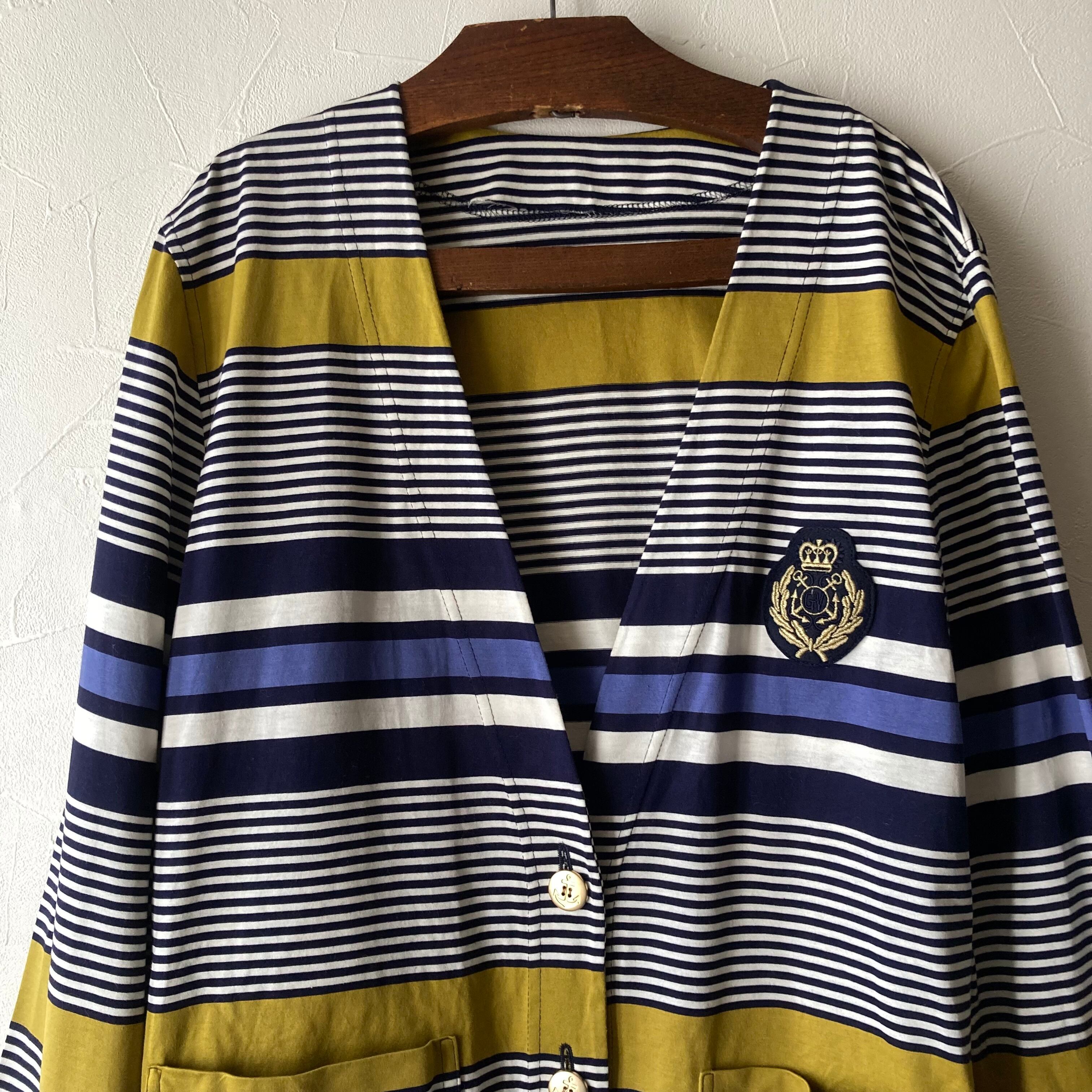 マルチカラーボーダーコットンカーディガン 古着 used vintage レトロ