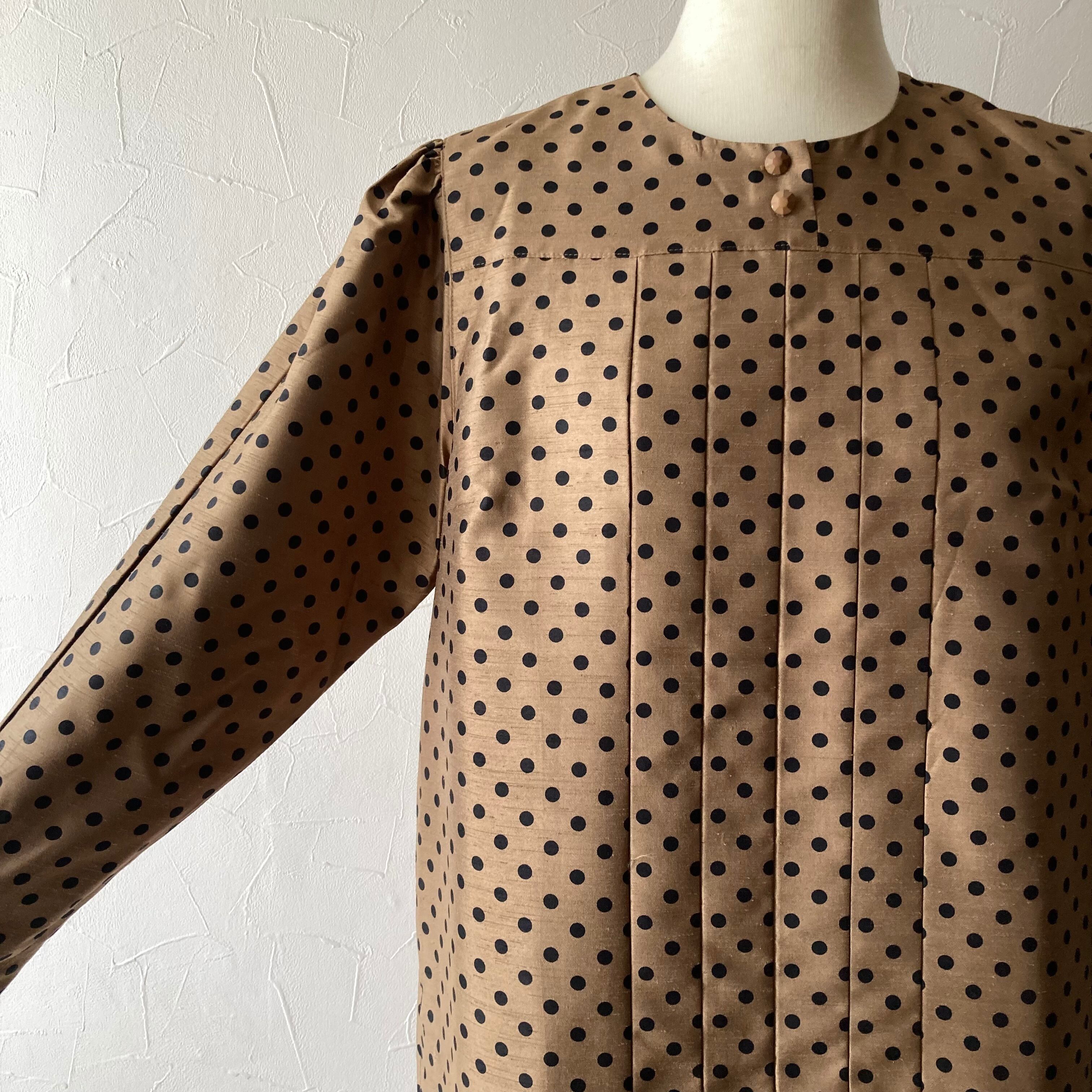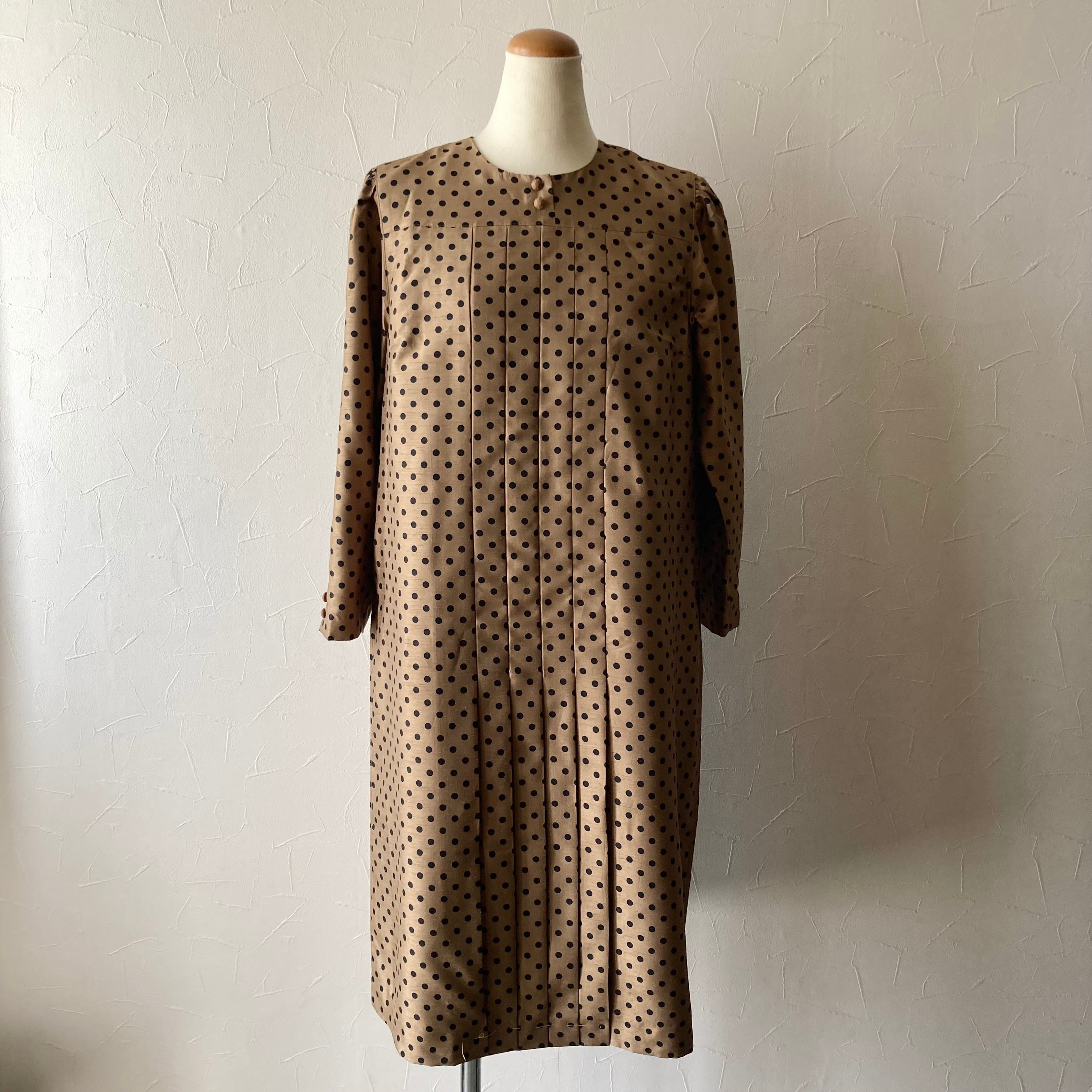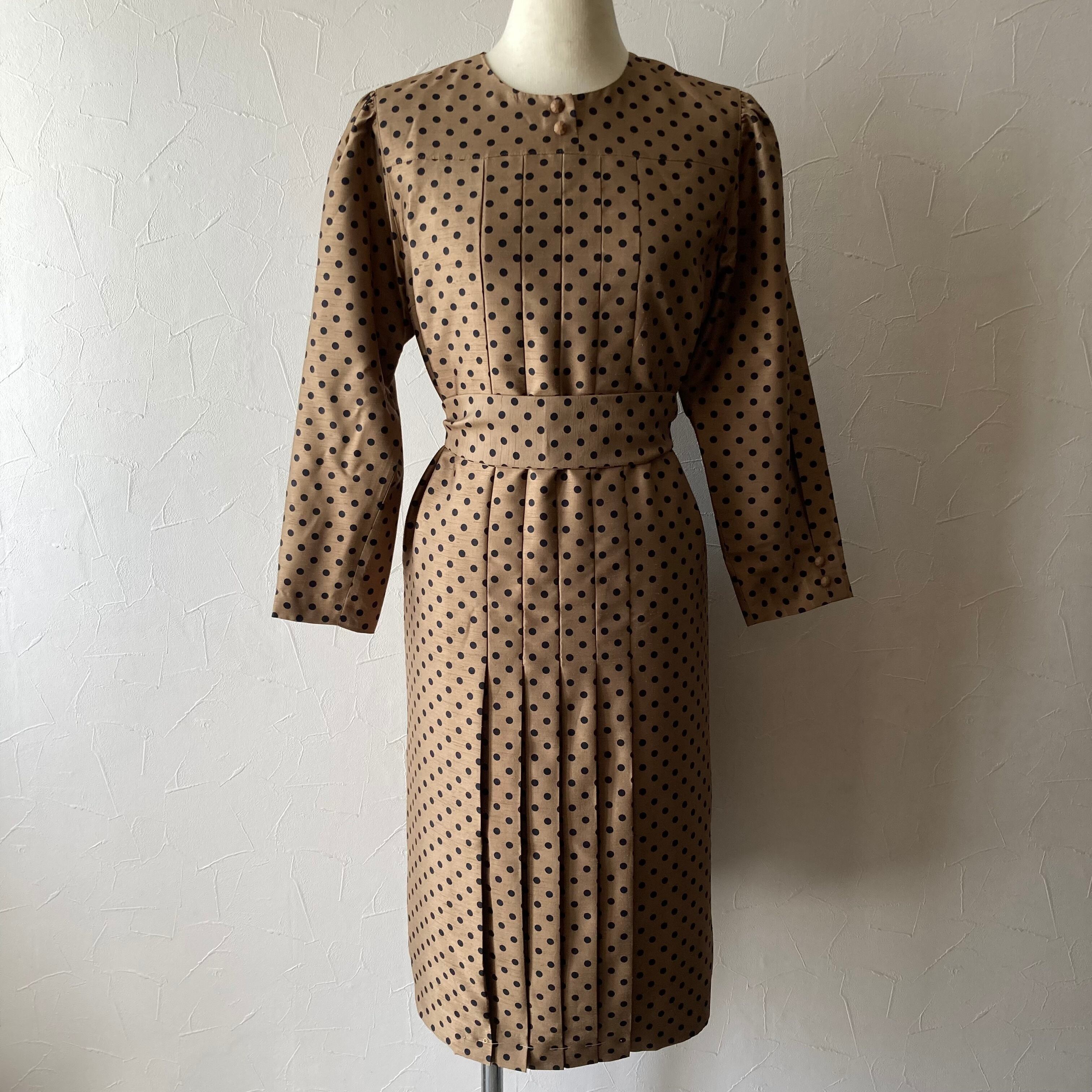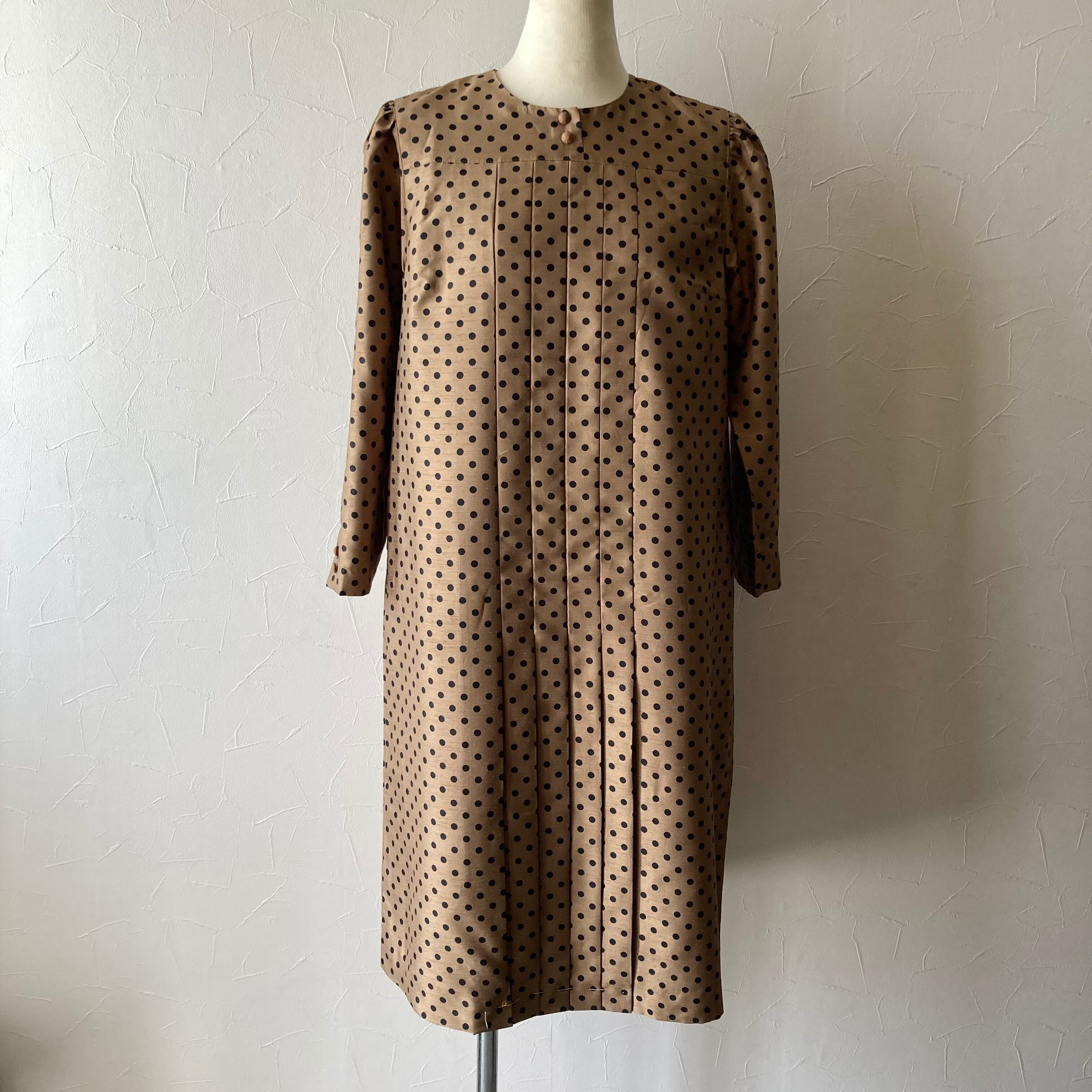ライトブラウンドットプリーツワンピース 古着 used vintage レトロ