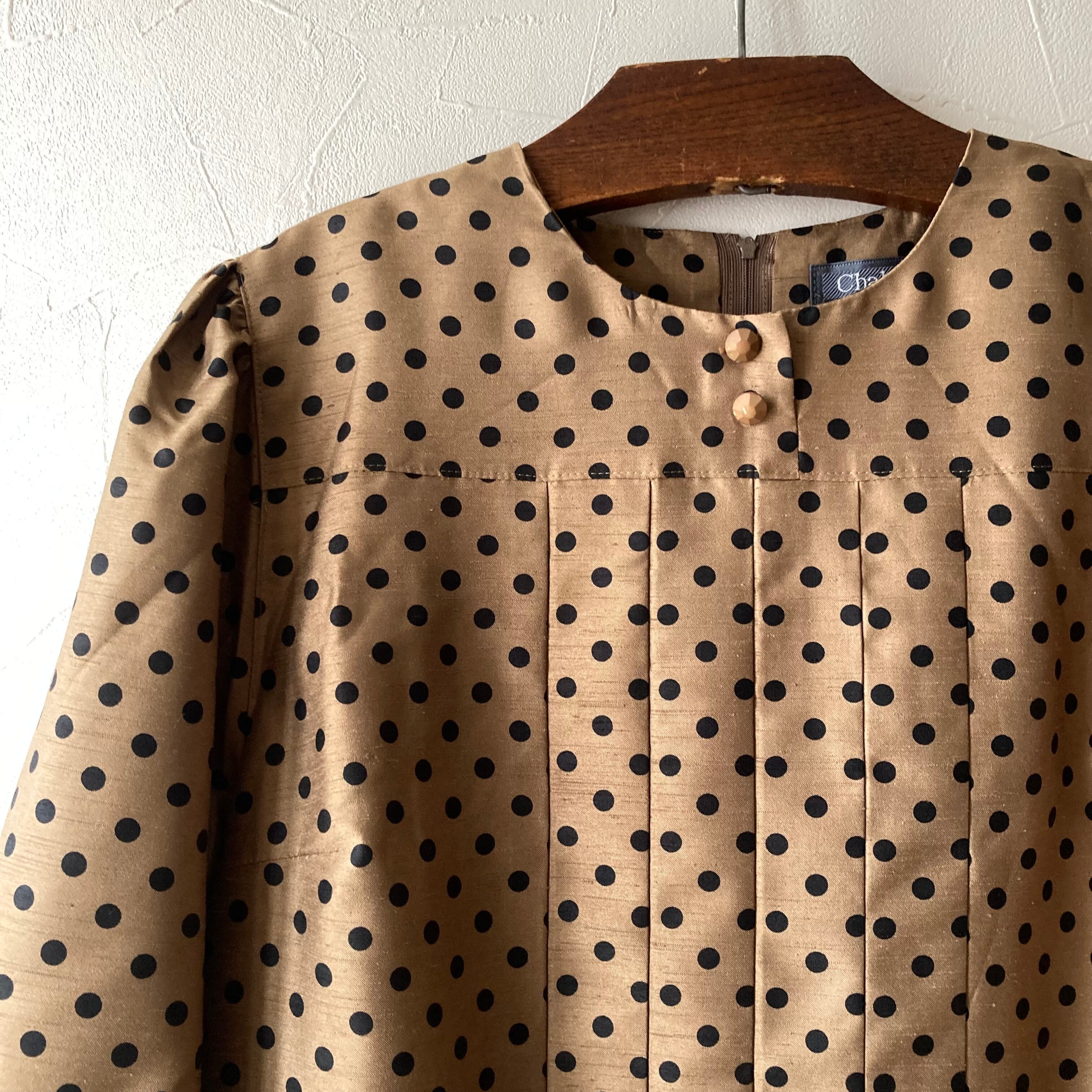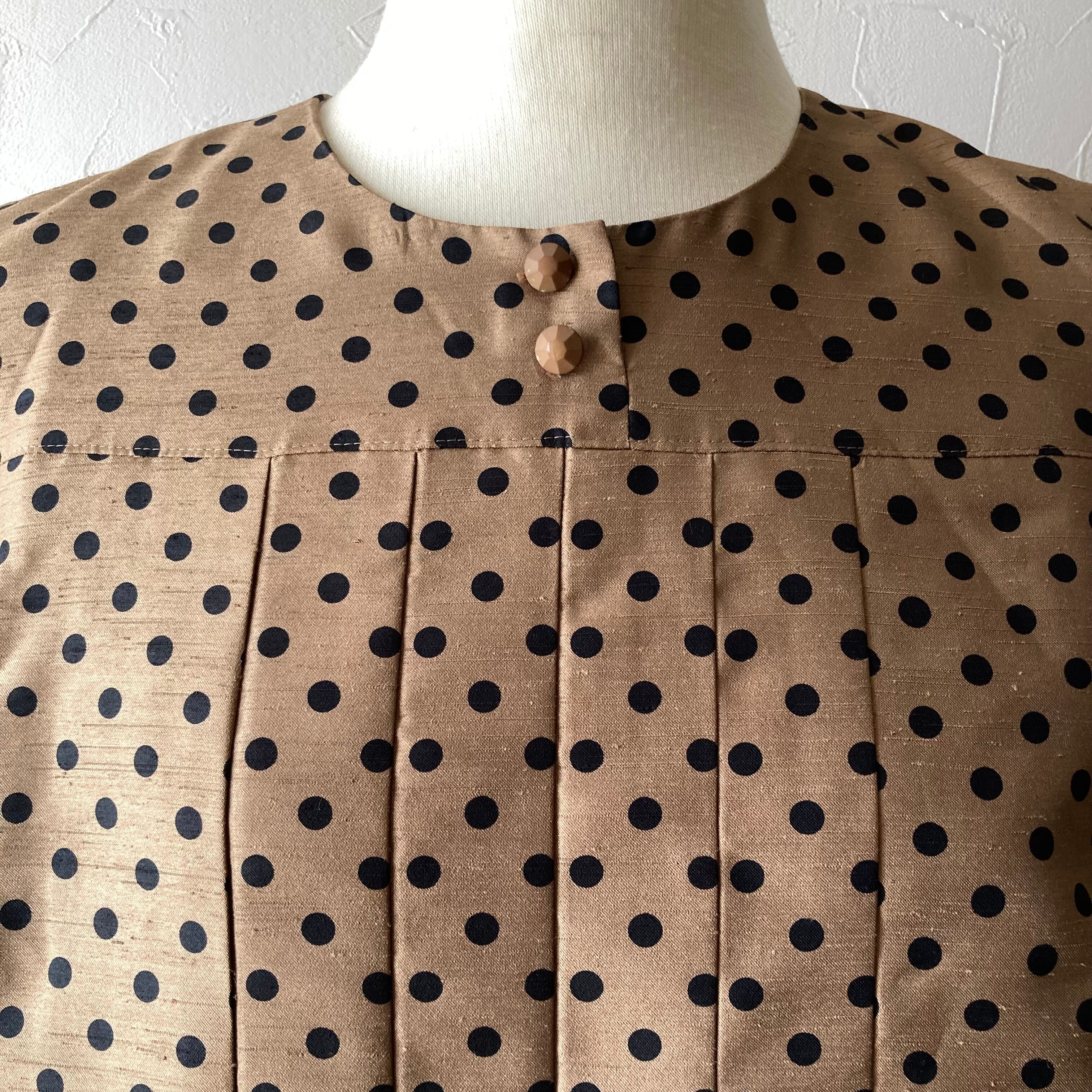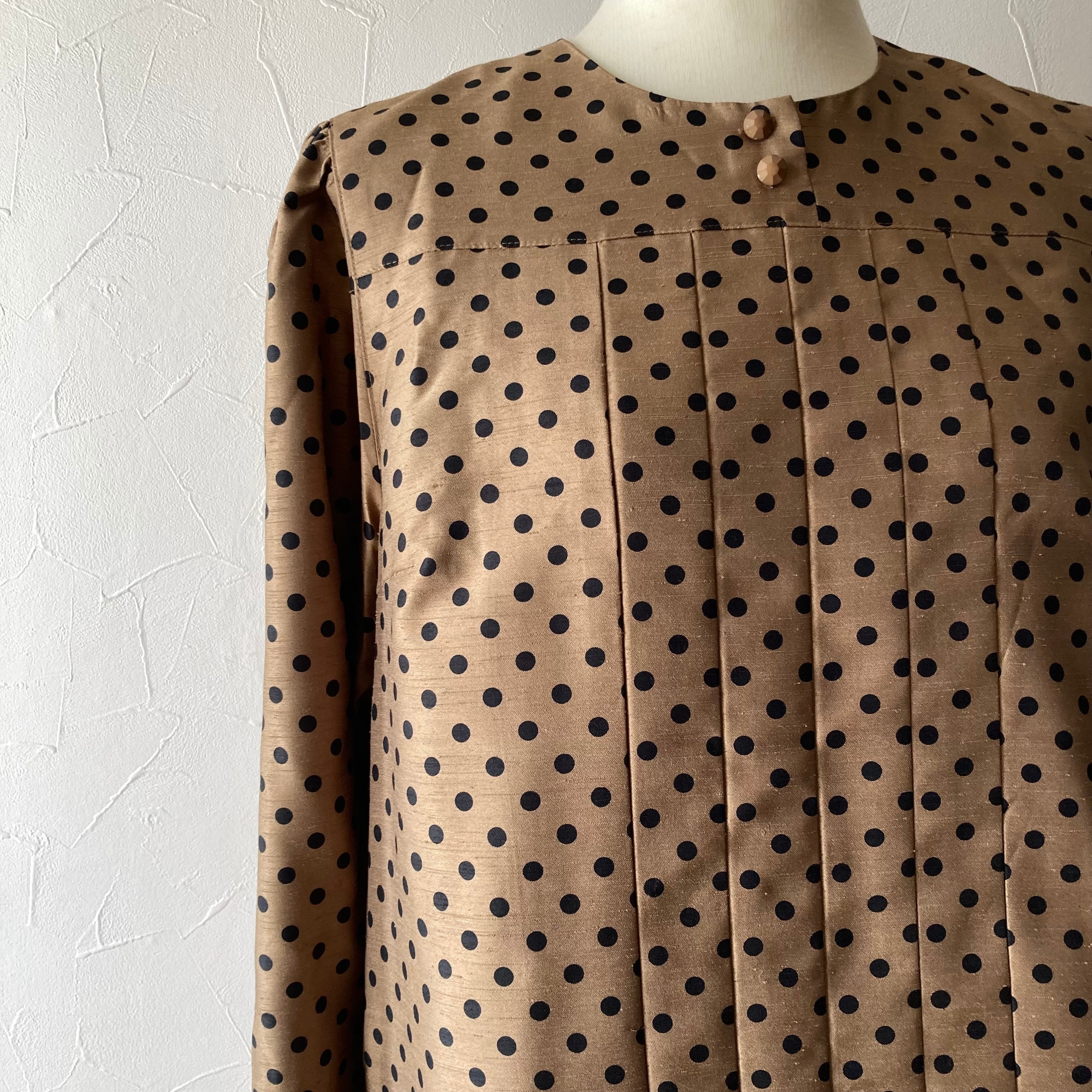 ライトブラウンドットプリーツワンピース 古着 used vintage レトロ