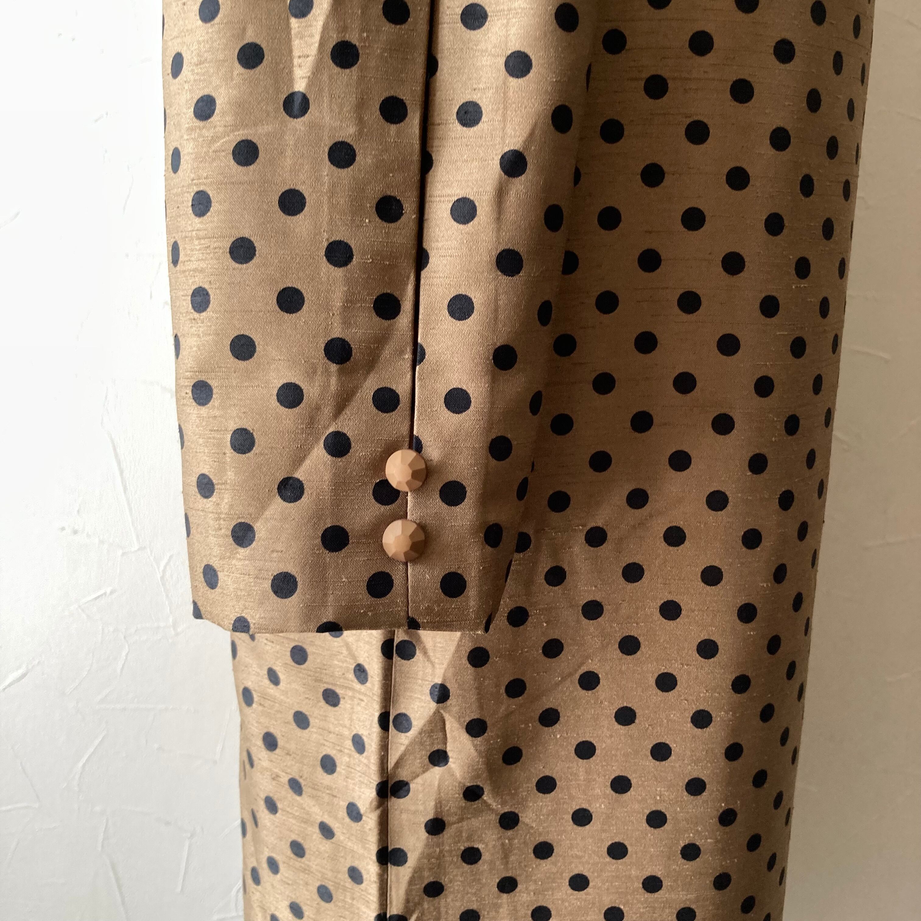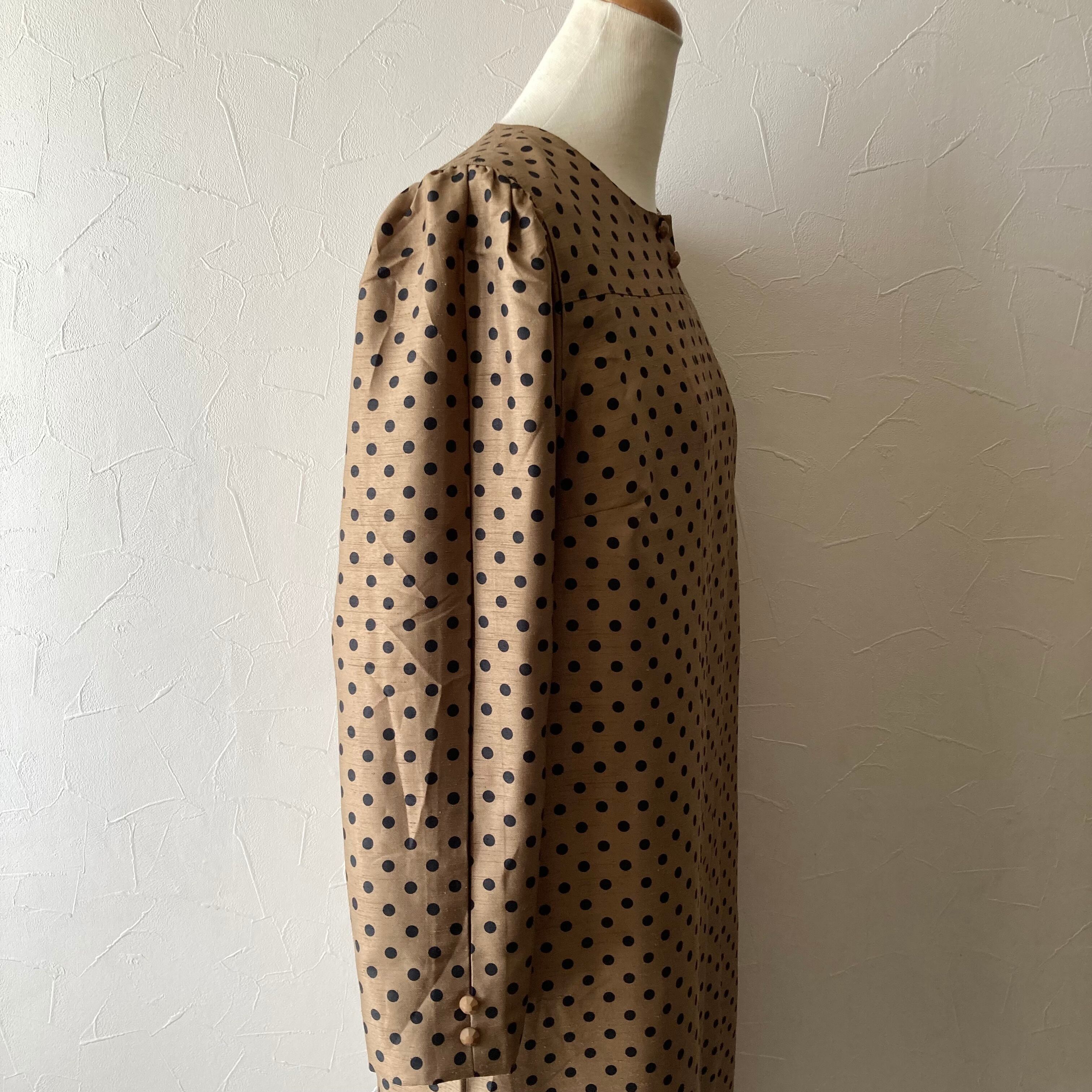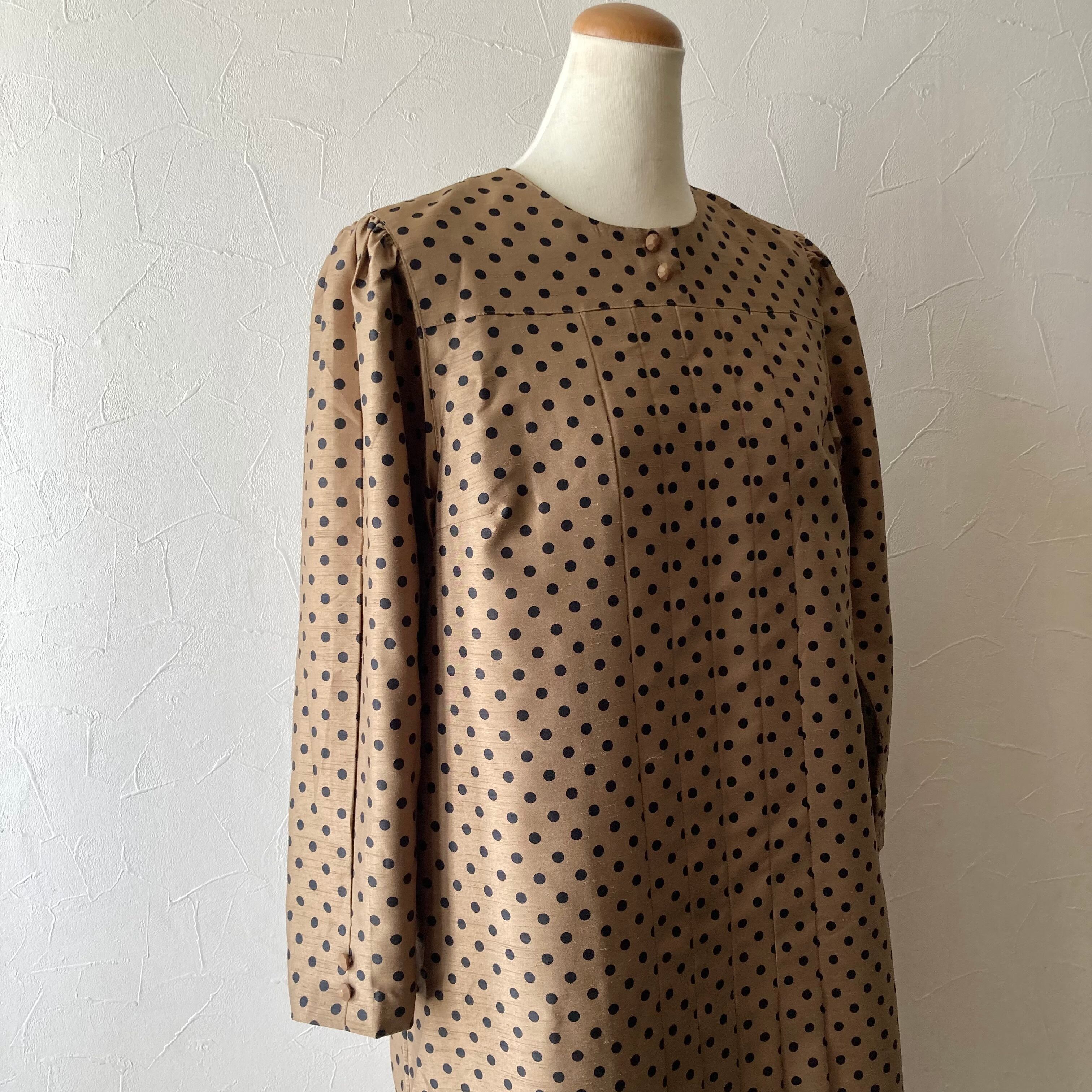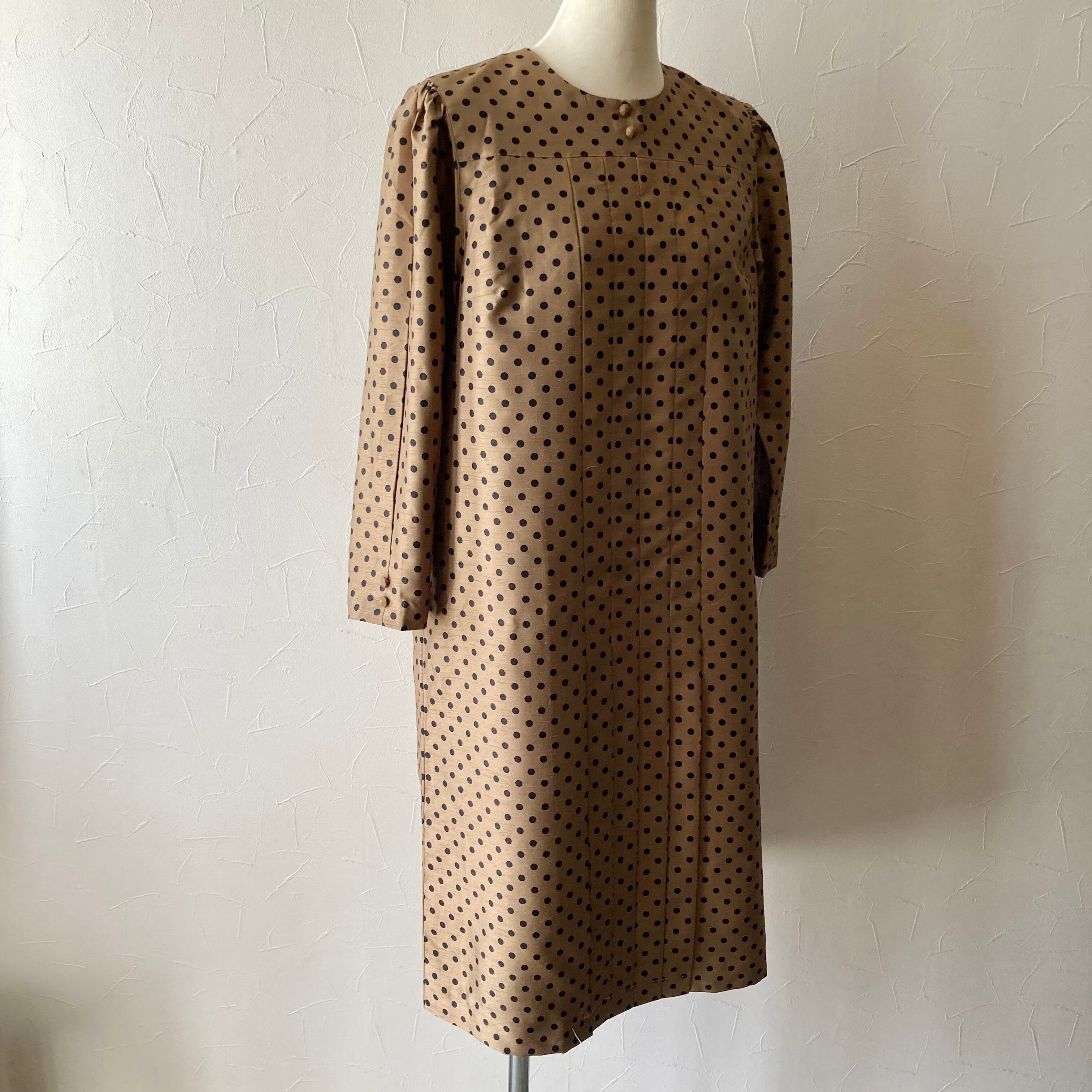 ライトブラウンドットプリーツワンピース 古着 used vintage レトロ